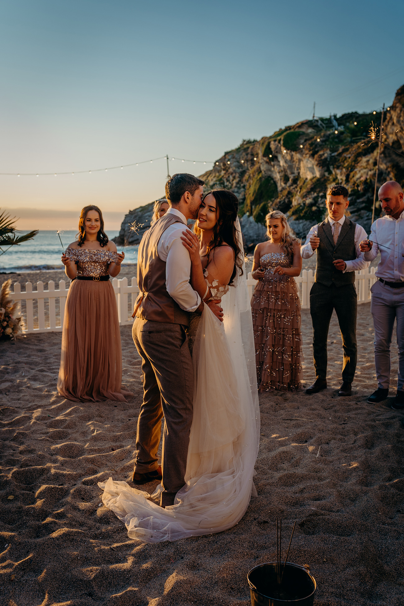 Surrounded by their family and friends holding sparklers, the newlyweds kick-started the evening revelry with a first dance on the beach as the sun began to set, after which live band The Big Strut kept the dancefloor packed throughout the evening. “Dancing the night away to live music whilst looking out to the most beautiful sunset over the ocean was unforgettable. We loved every minute of the wedding day, from start to finish, and are beyond grateful to all those that made it happen!” reflects Daisy-Mae.