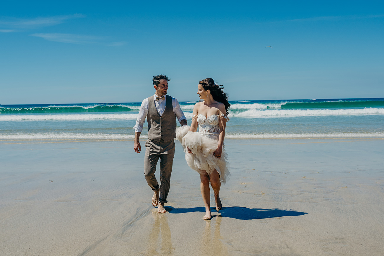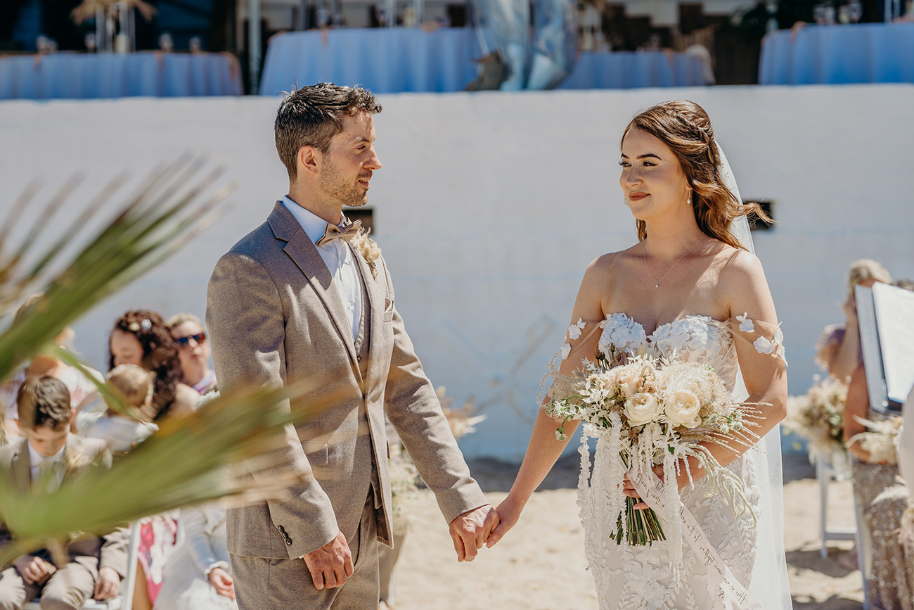 Exchanging their own vows on the sand while looking out to sea made for a standout moment for the couple. “We really enjoyed having our ceremony on the sand,” she reflects. “Being on the beach and hearing the waves calmed our nerves.”