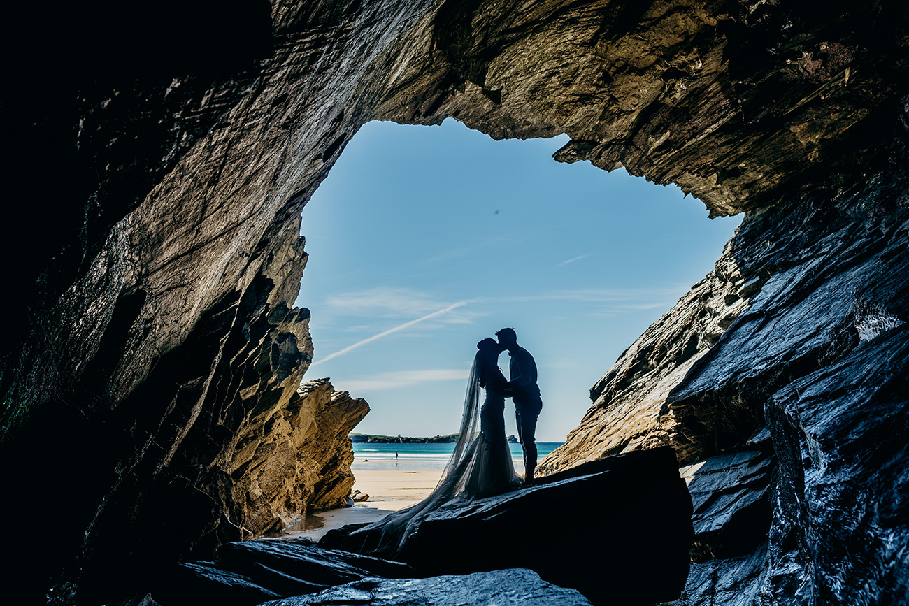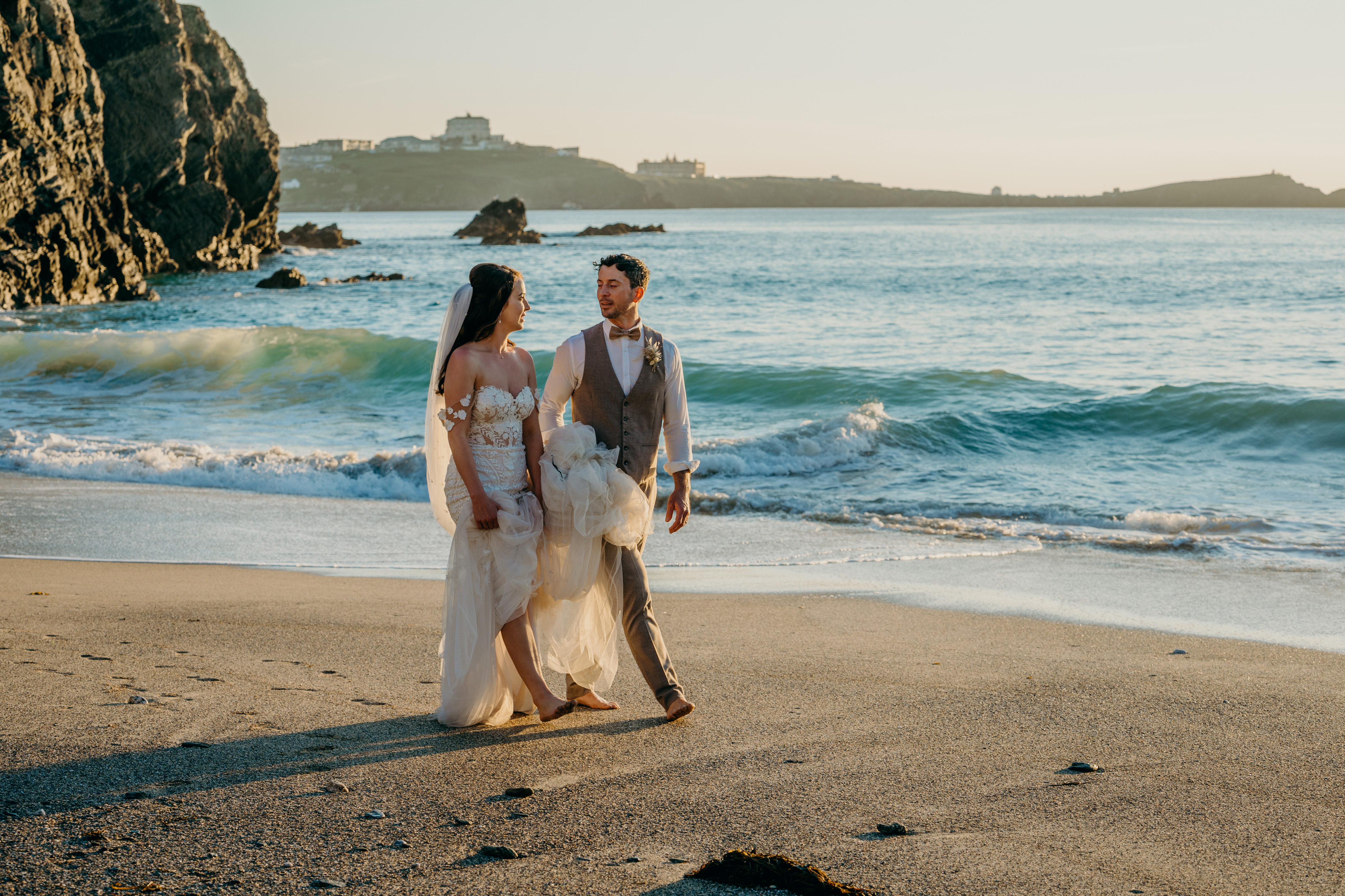 “We matched online and had our first date at the Royal William Yard in Plymouth,” says Daisy-Mae, reflecting on her first encounter with Matthew. The romantic proposal that followed on the clifftops overlooking Hope Cove in Devon paved the way for a wedding in the wildly romantic cove of Lusty Glaze.