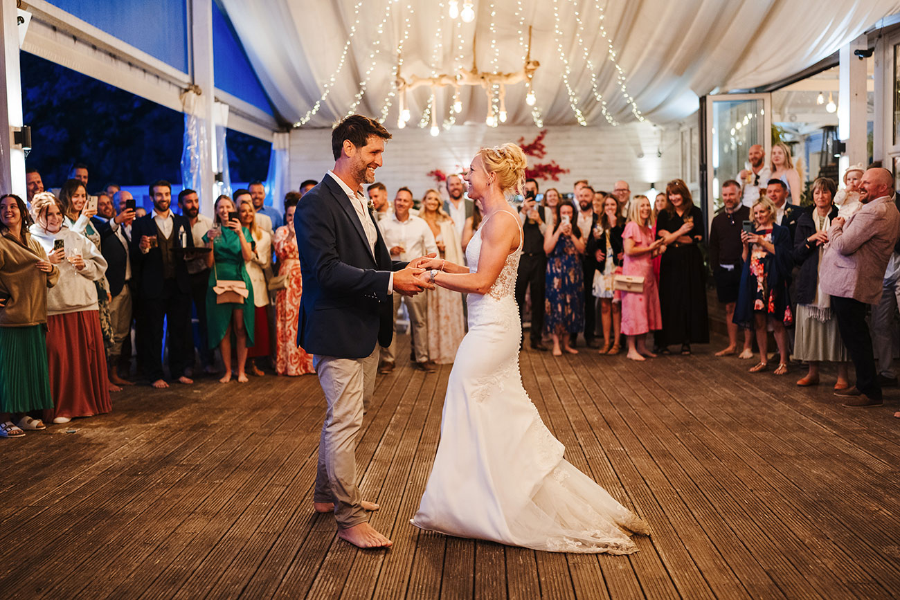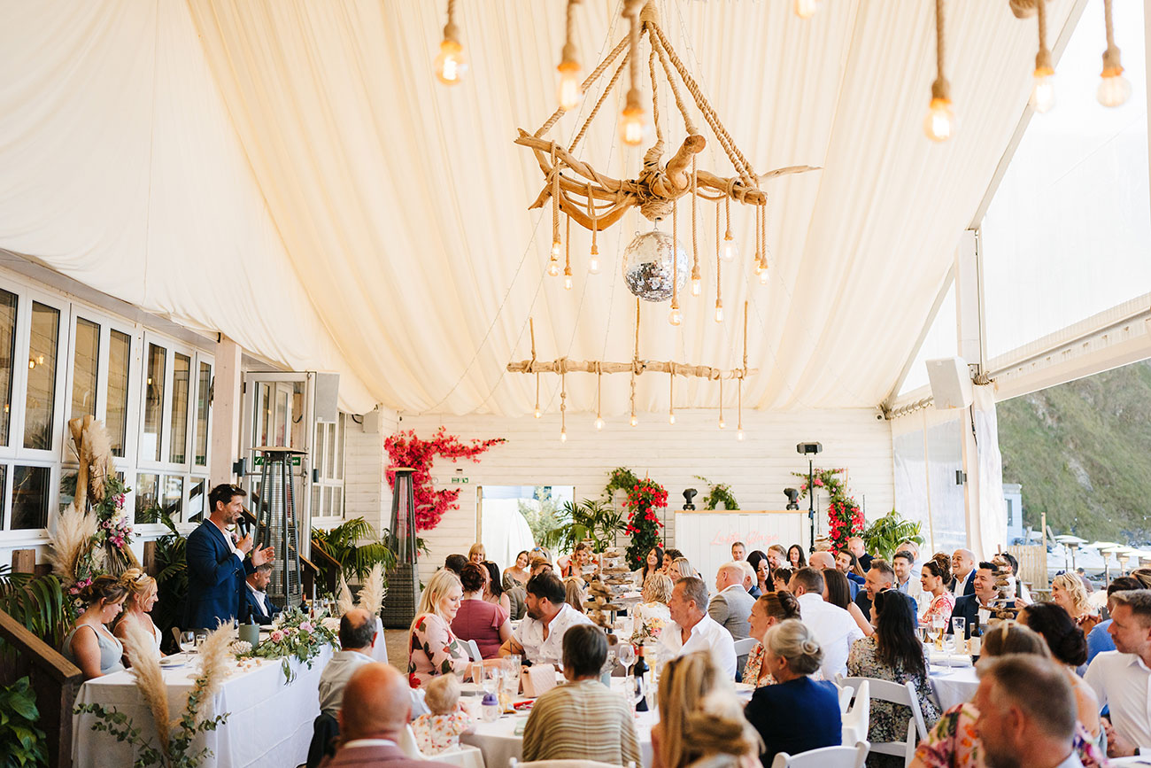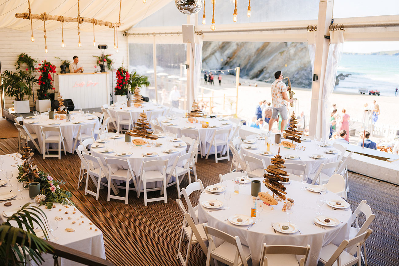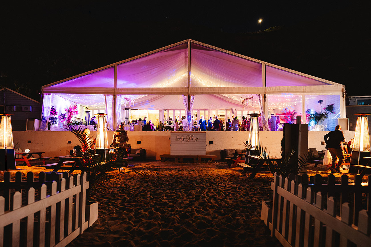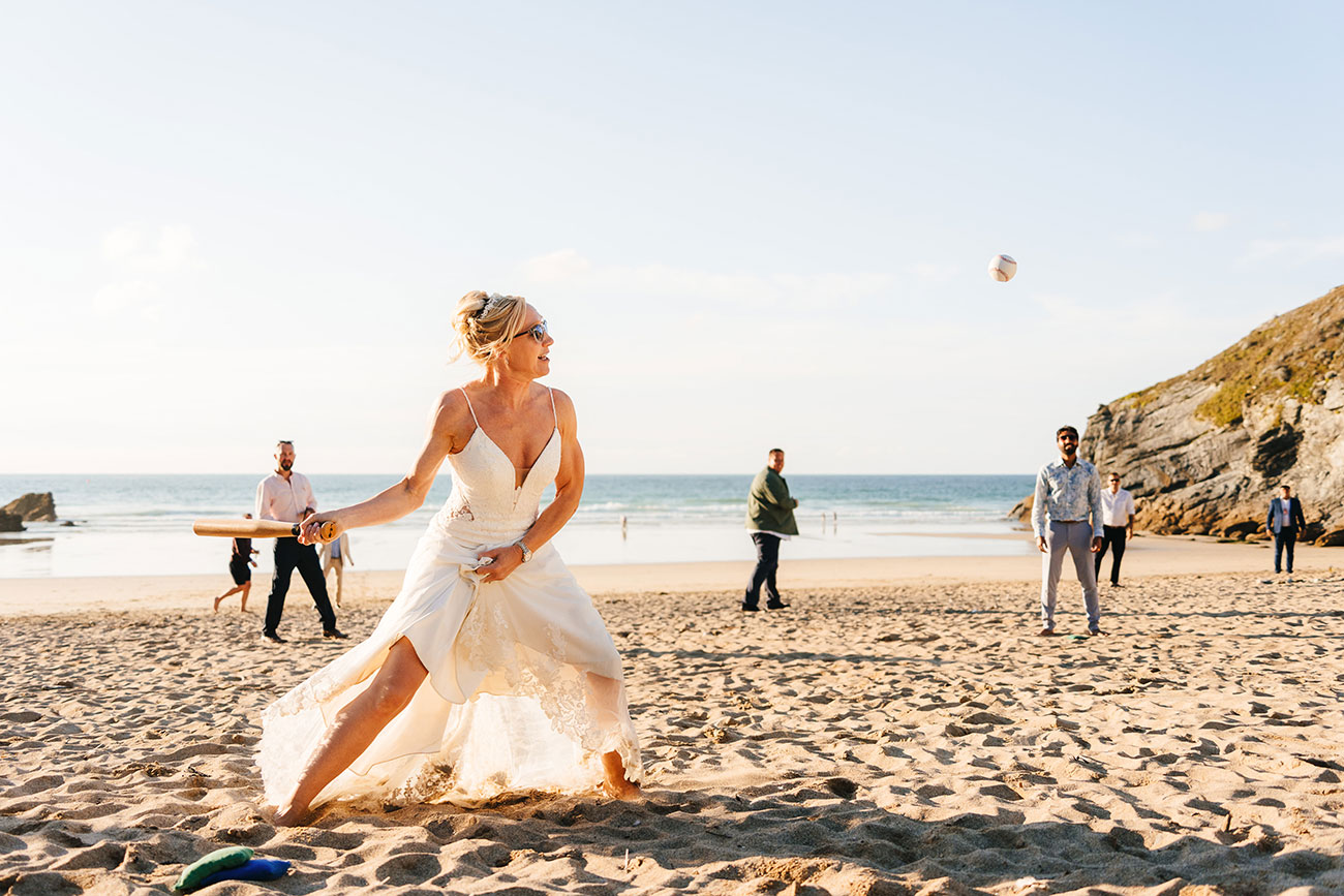 After the speeches, everyone spilled onto the sand in the sunshine, where guests played beer pong and rounders, and some even took a dip in the sea. “I got taken out by one of the guests whilst running to first post during rounders and my wedding dress shoulder strap broke,” says Molly. “It had to be mended by another guest who had an emergency sewing kit on her!”