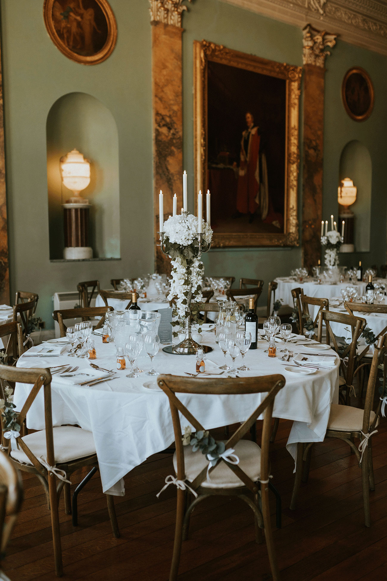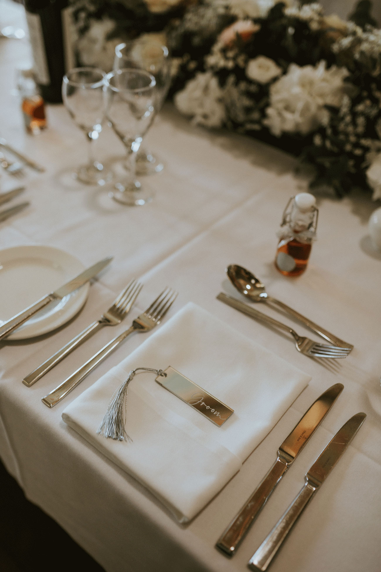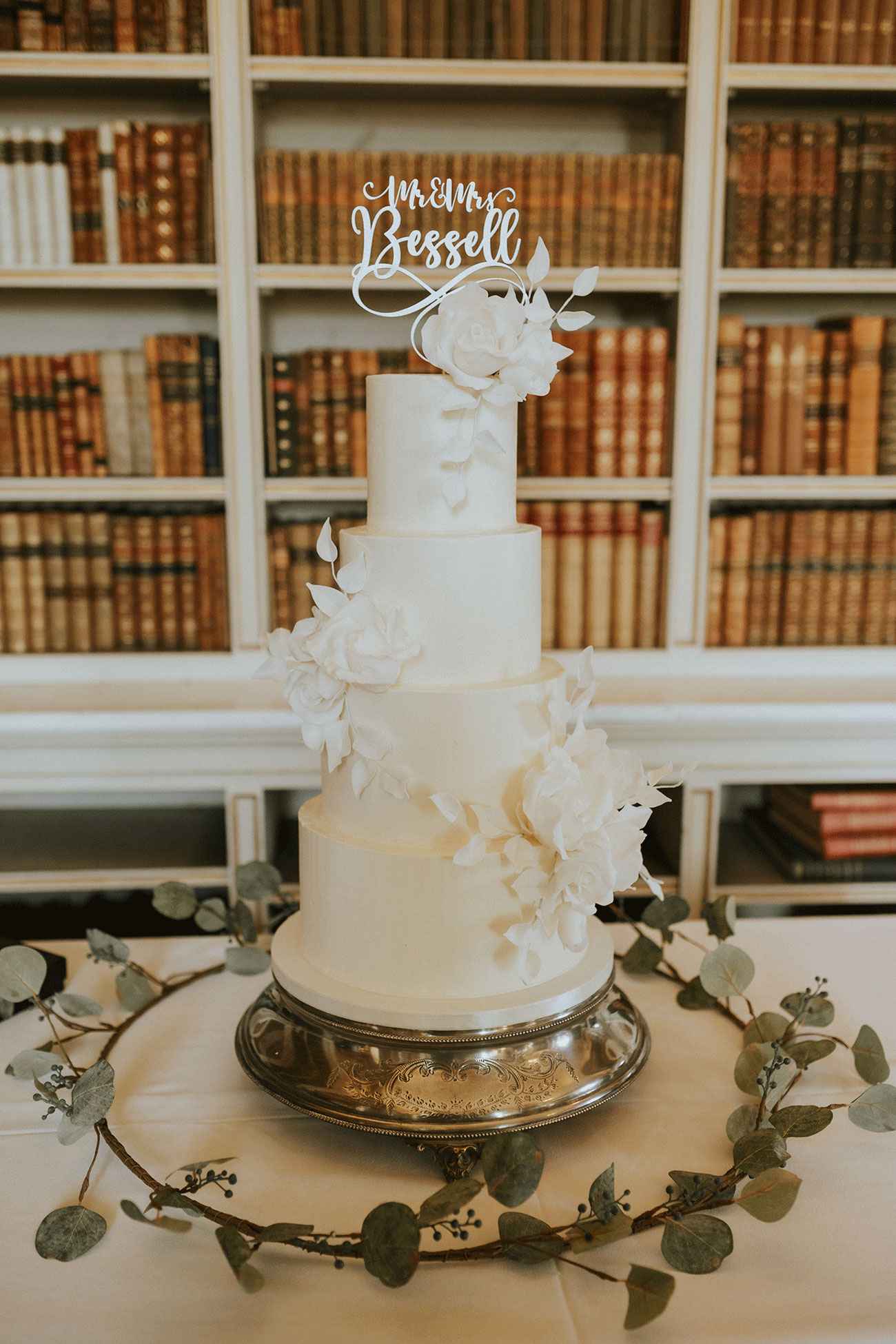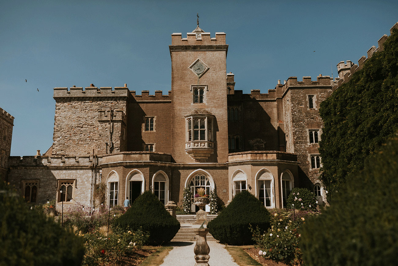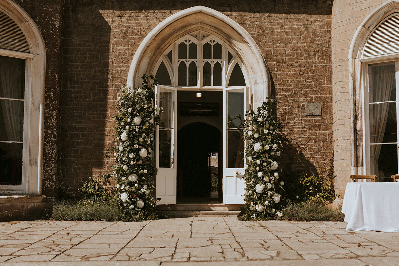 Powderham Castle provided the “many beautiful spaces to personalise the weekend”, explains India. “We loved the fact you could stay the night before the wedding to get set up and come together with friends and family.” The décor was kept simple and elegant with candles and an abundance of David Austin roses, garden roses, hydrangea, eucalyptus and gypsophila in shades of white, pale pink and green.
