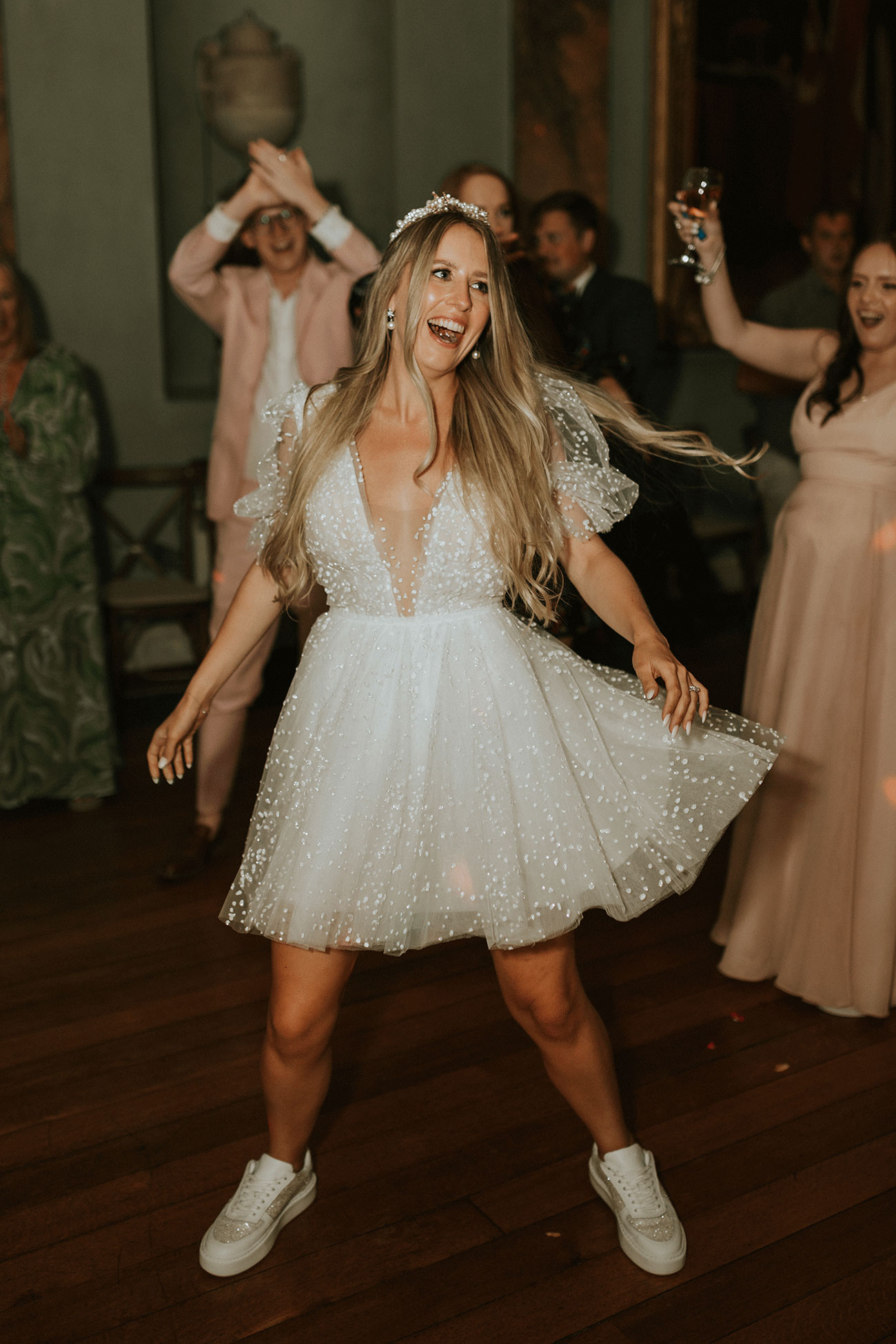 Kick-starting the party with their first dance, a live band entertained guests all night, with a brief intermission for sparklers overlooking the deer park at sunset. Then came the time for one of India’s most memorable moments. “Changing dresses!” she exclaims. “I surprised everyone for the band’s second set by changing into the incredible short and sparkling Luv Dress by Milla Nova ready to party and dance the night away!”