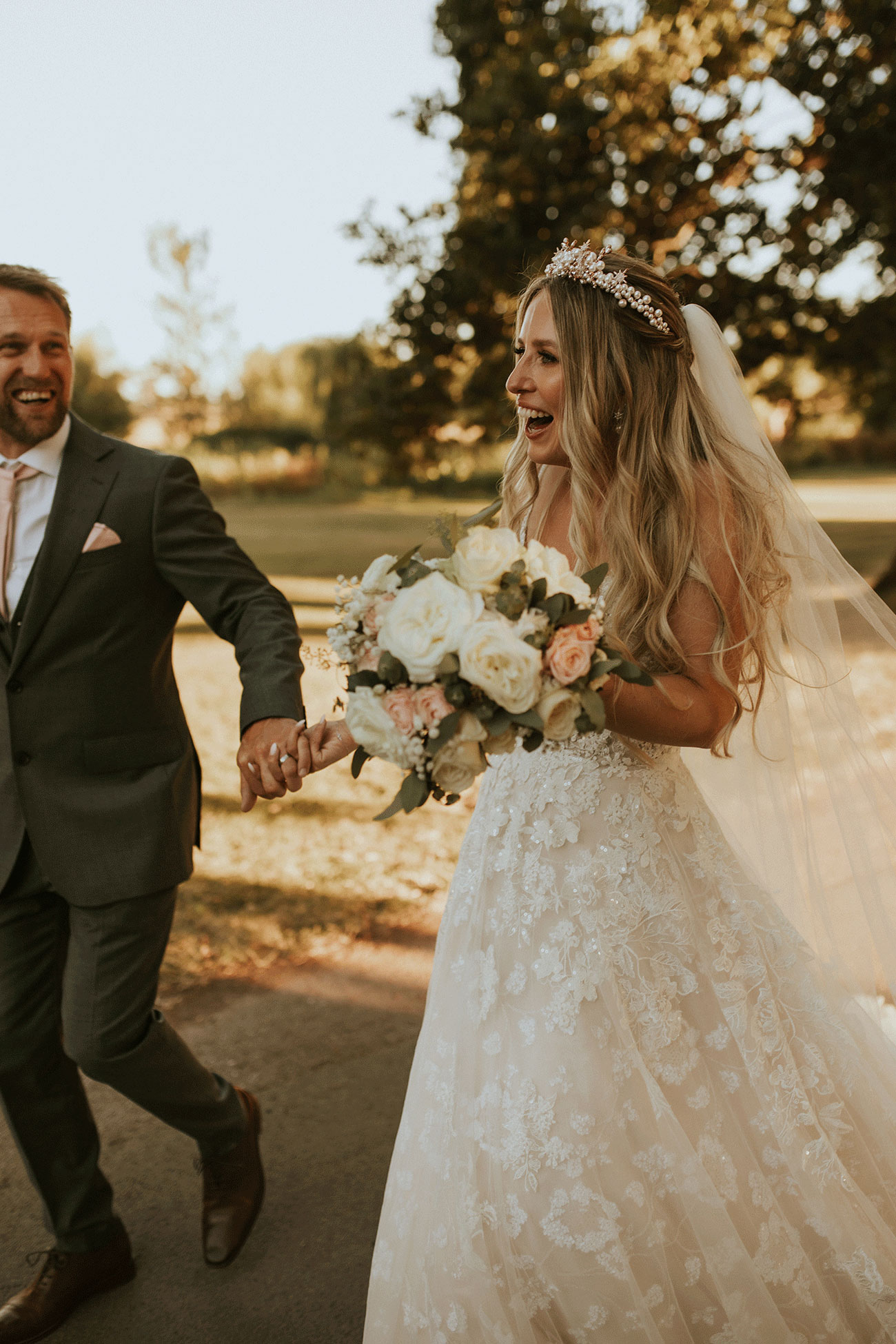Guests returned to the Rose Garden for drinks and garden games before the newlyweds ventured into the grounds for photos during the golden hour. “We had so much fun doing this and it was so lovely to have some quality time enjoying our day and each other,” she reminisces.
