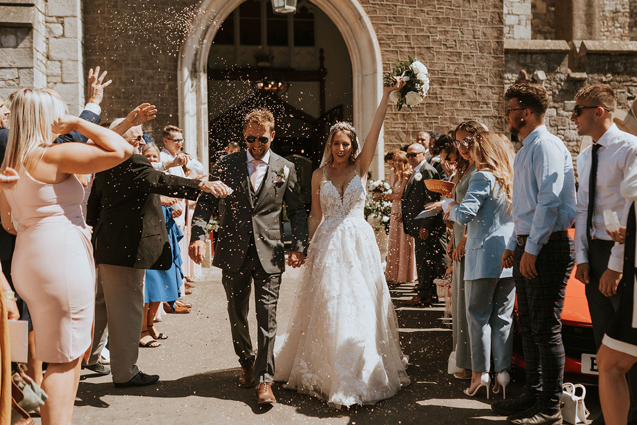 A confetti throw was followed by drinks and canapés in the Rose Garden to a stripped-back dance soundtrack by Ollie. The wedding breakfast presented the likes of prawn cocktail, pulled pork scotch egg, seared sea bass fillet, breast of chicken and root vegetable galette. A ‘taste of the seaside trio', comprising a beach ball of salted caramel chocolate mousse, sandcastle of strawberry and clotted cream panna cotta, and a mini cone of prosecco ice cream, rounded off the feast in style.
