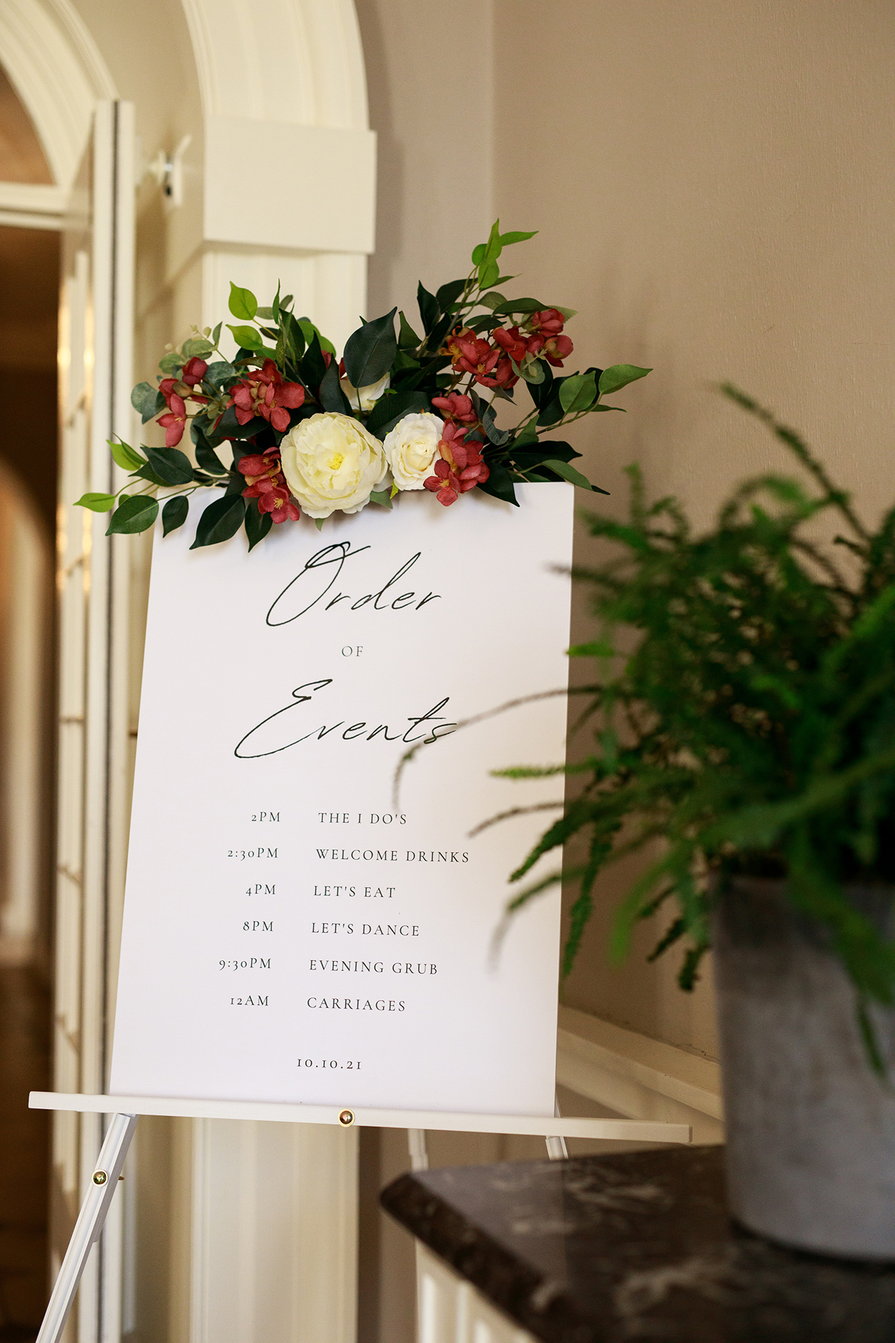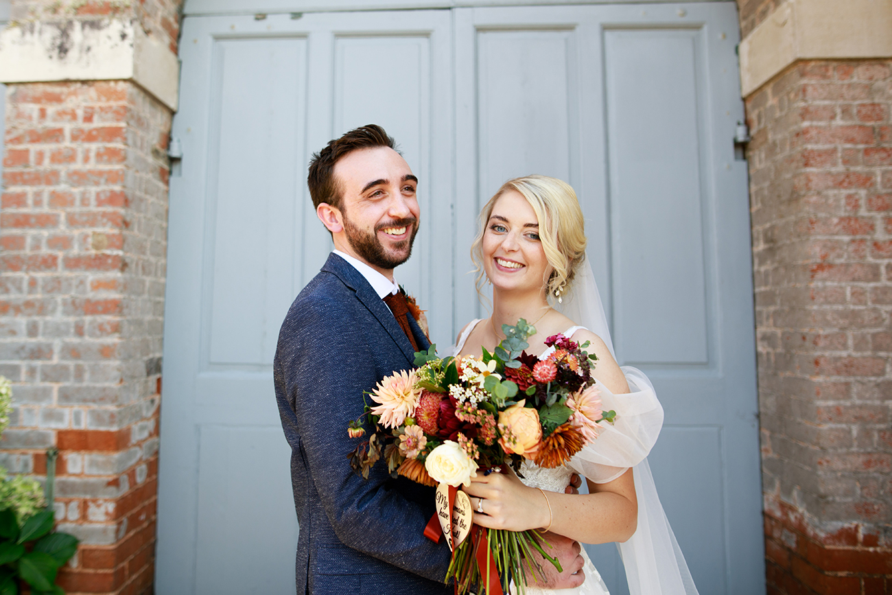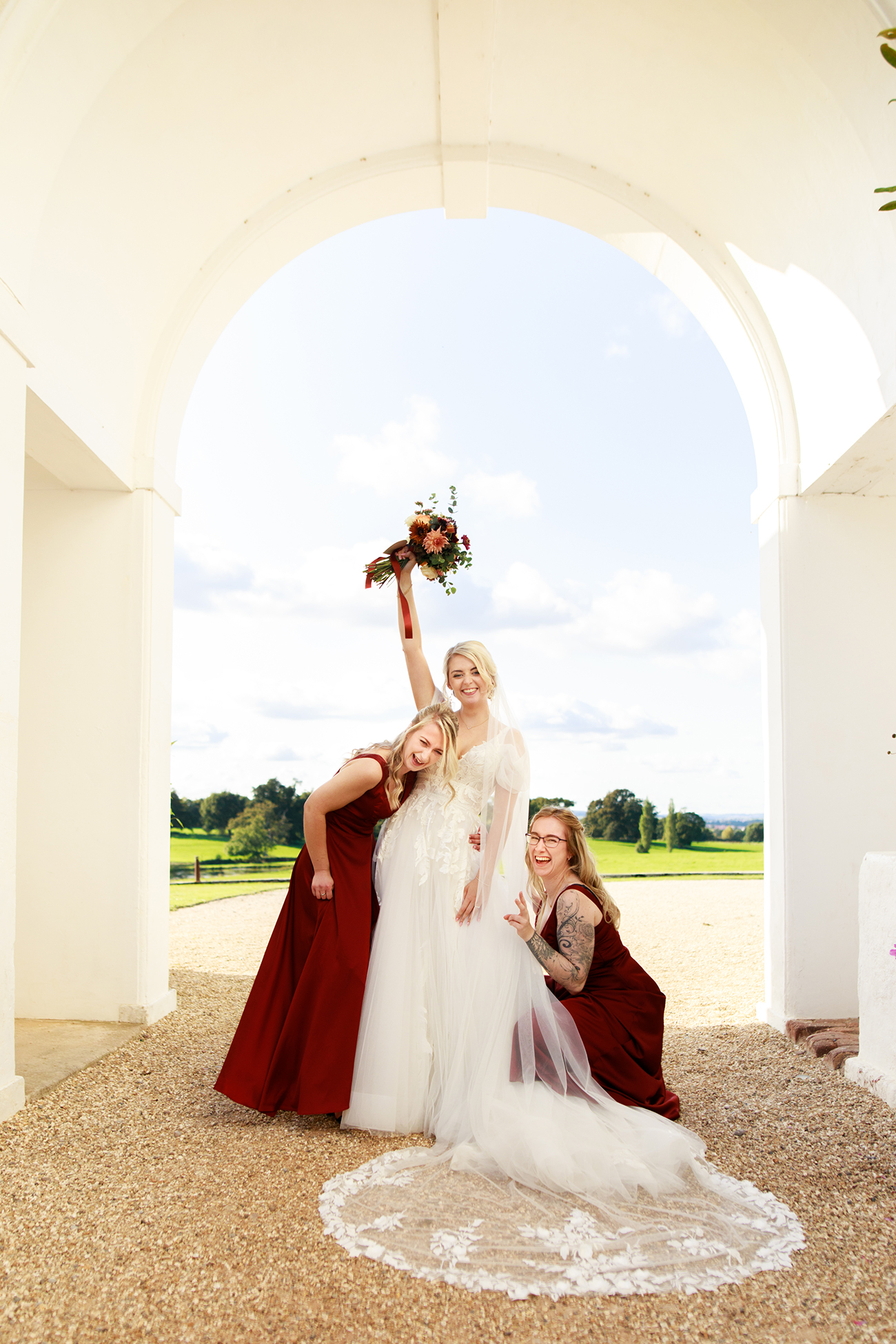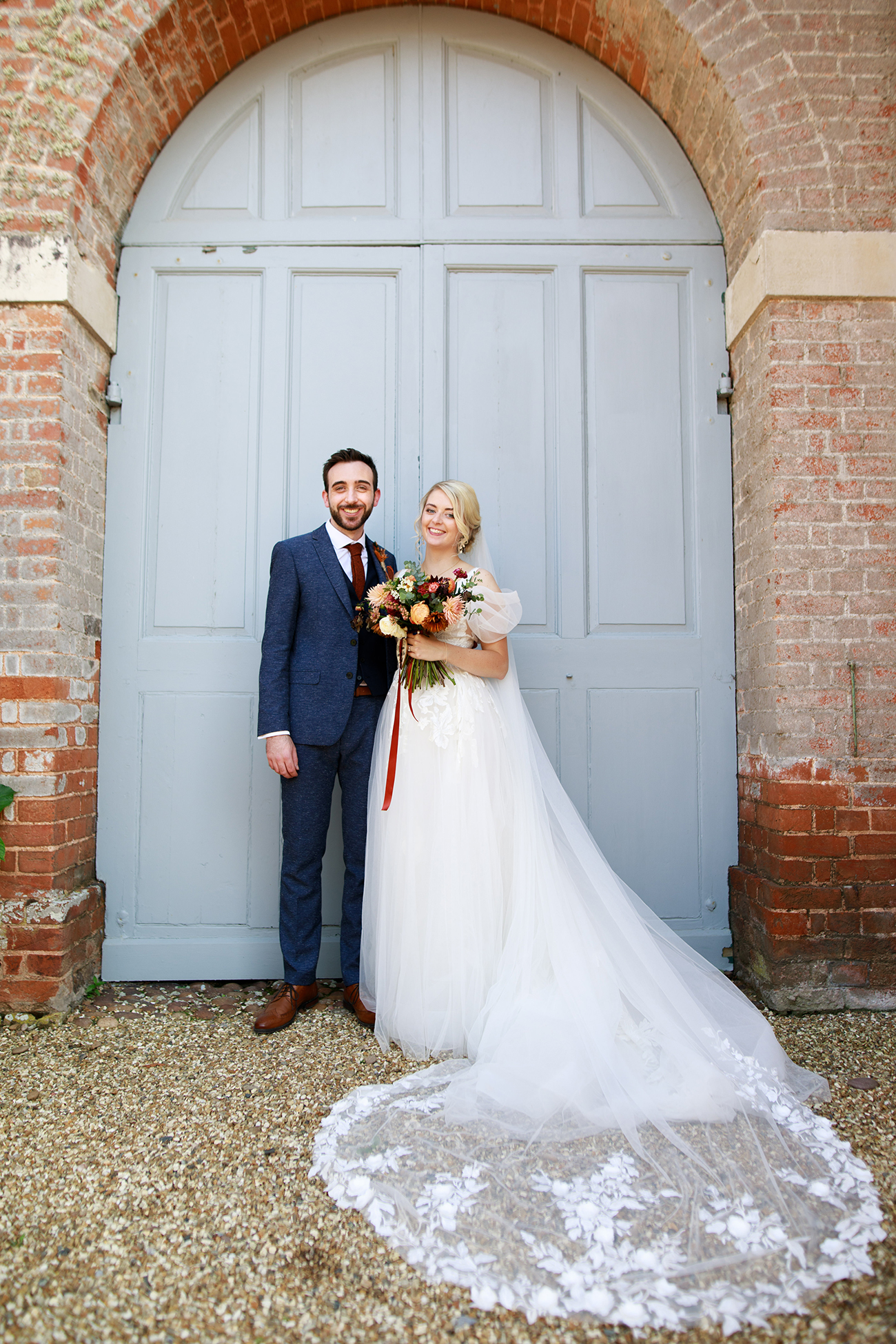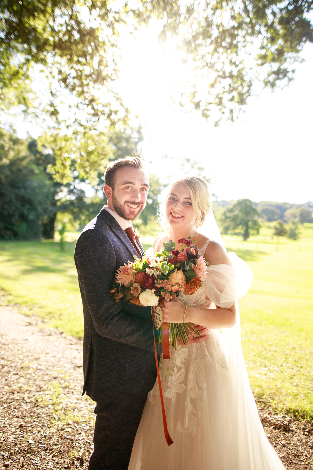 Rockbeare Manor presented “the most magical place and people” for their May garden party wedding that had to be postponed until October due to Covid. “We wanted to keep elements of that original theme – a mix of natural foliage, sage green and white – while warming it up to suit the new autumn date, so we added burnt orange and maroons for a classic October feel,” explains Chloe.