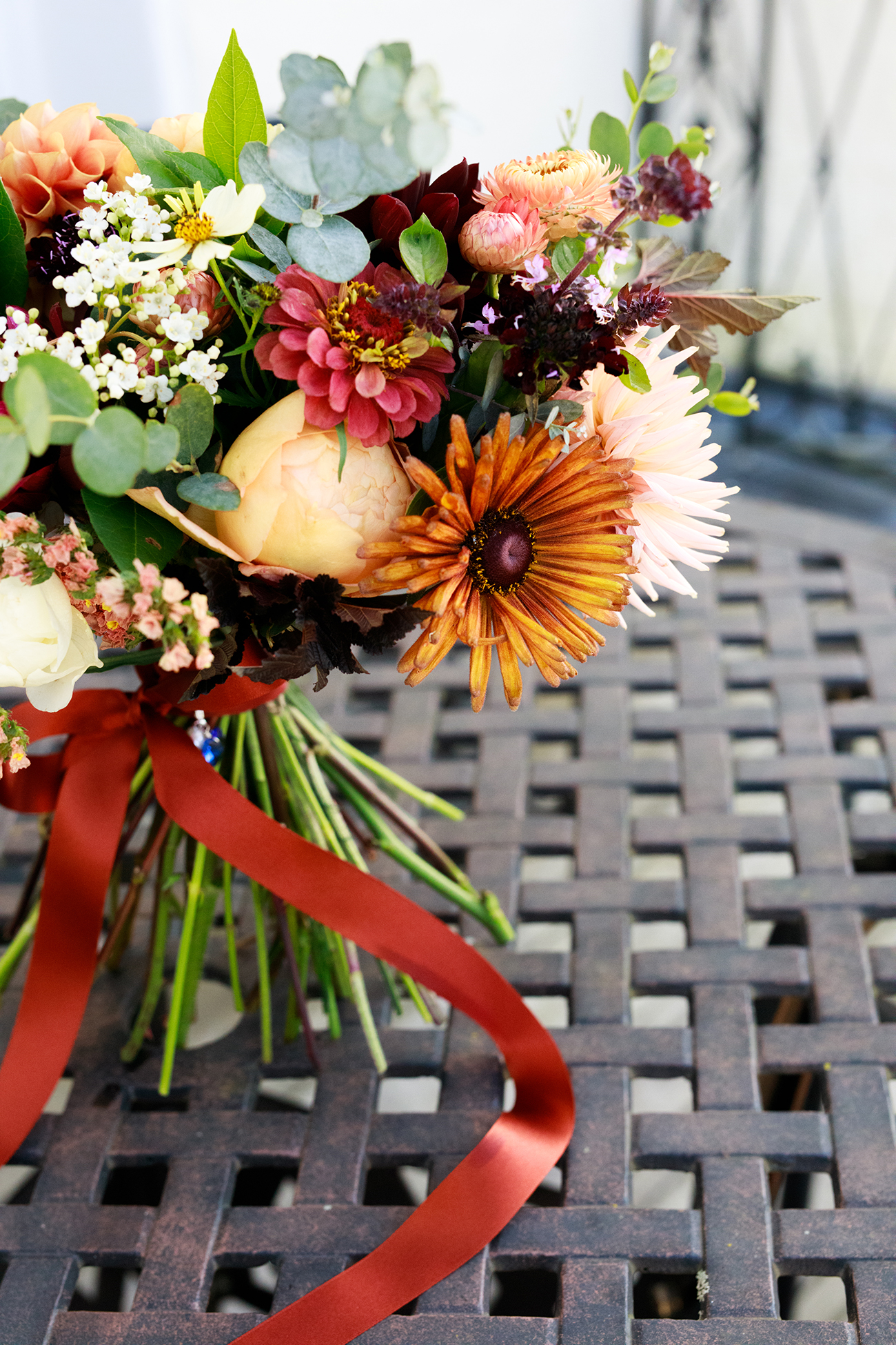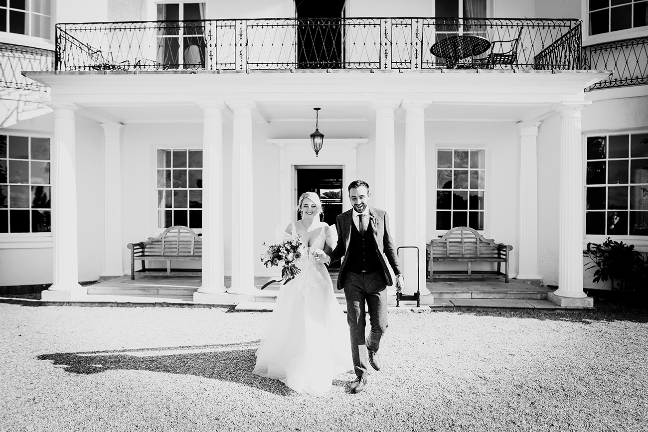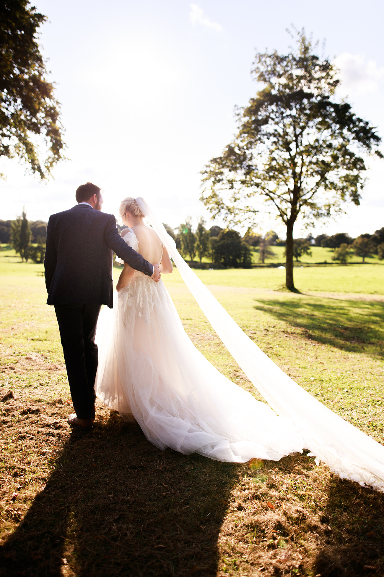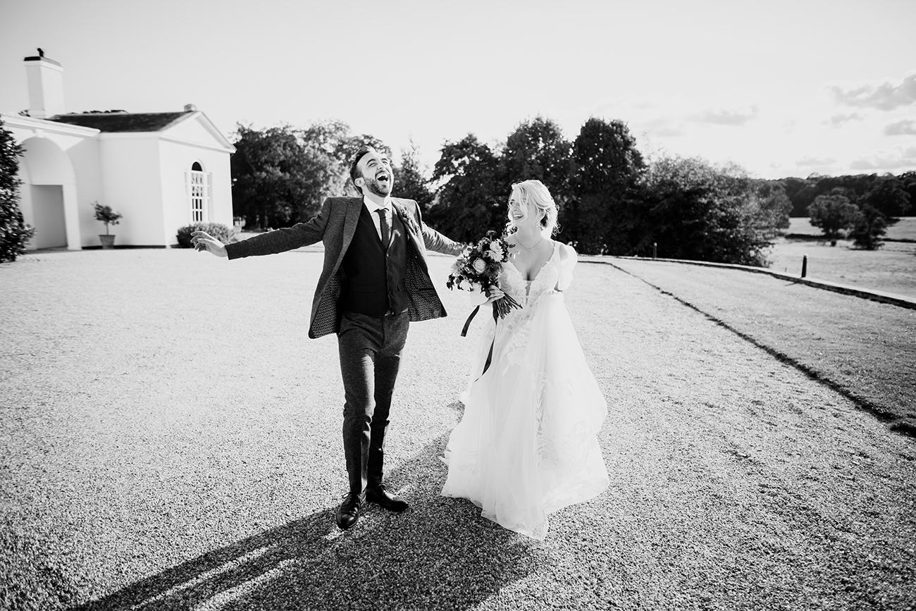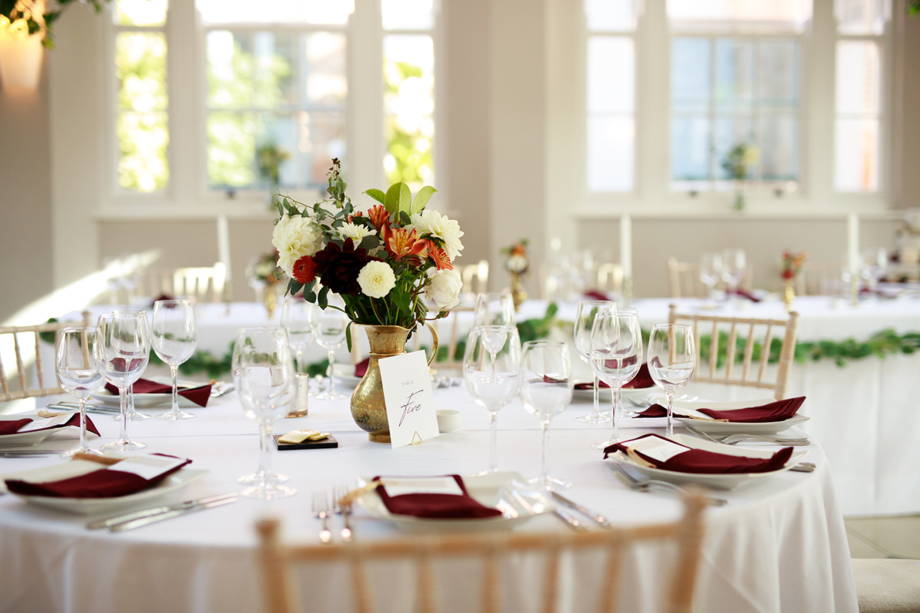 Rockbeare Manor presented “the most magical place and people” for their May garden party wedding that had to be postponed until October due to Covid. “We wanted to keep elements of that original theme – a mix of natural foliage, sage green and white – while warming it up to suit the new autumn date, so we added burnt orange and maroons for a classic October feel,” explains Chloe.