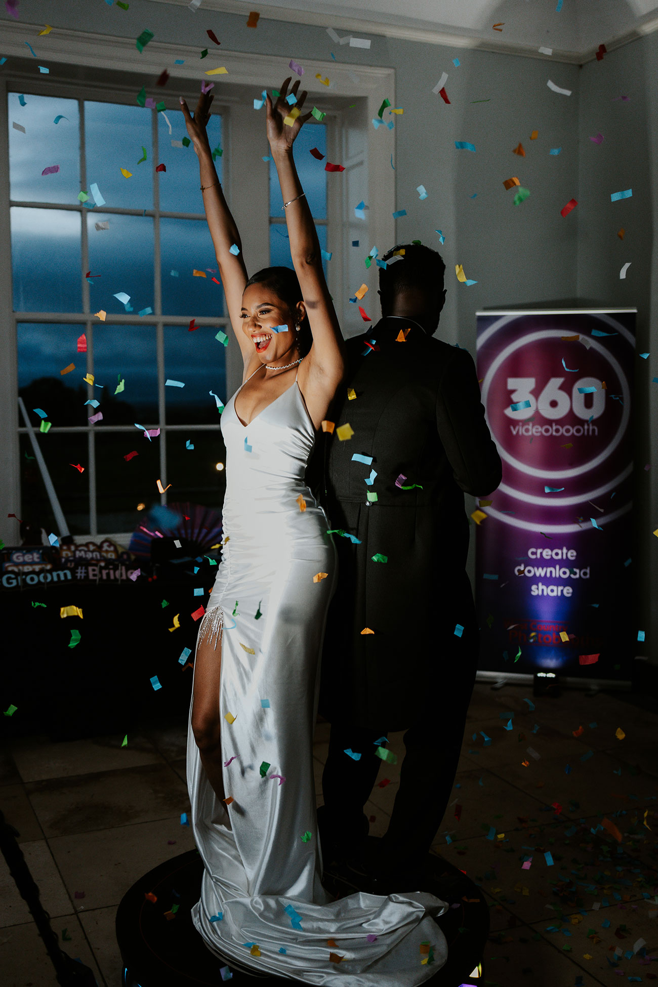 Cocktail hour with canapés followed to the sounds of a live saxophonist, while the newlyweds had photos around the grounds. The grand ballroom was the scene of the speeches – with those by Sabrina’s dad and Giles proving a memorable highlight – and the sumptuous wedding breakfast featuring confit chicken, slow-roasted short rib of beef, pan-fried salmon fillet and caramelised poached pear with a Biscoff crumb and clotted cream ice cream.