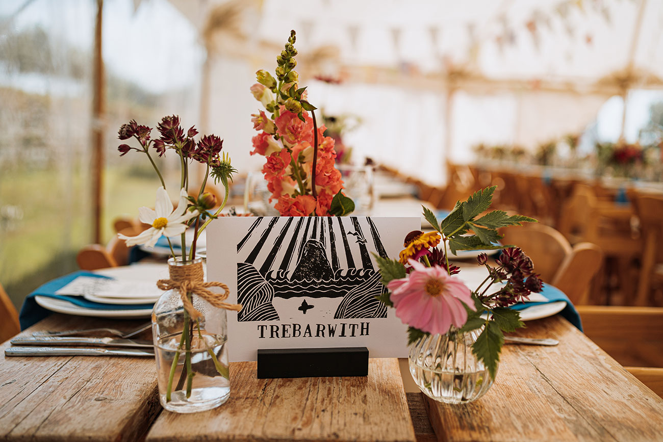 After a drinks reception and acoustic set at Roscarrock, guests tucked into a locally sourced, sharing-style feast featuring slow-cooked shoulder of Cornish lamb, barbecued line-caught sea bass, barbecued cauliflower steak and deconstructed ‘Cornish’ Eton mess. The couple then surprised their guests with a choreographed first dance, which kicked off the evening reception. “We chose Walk by Griff as our song, as we wanted something upbeat that we could dance to. It went really well!” reflects Jenny.