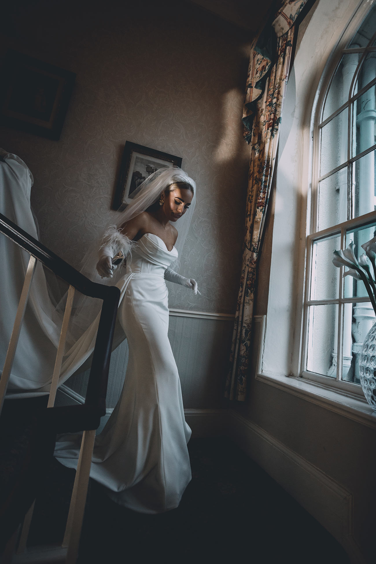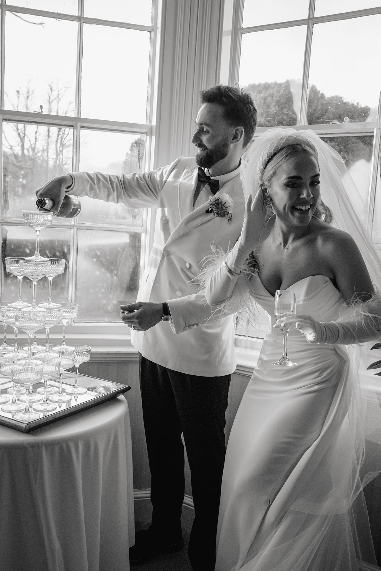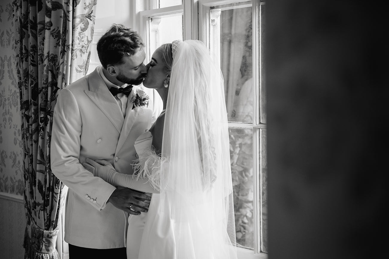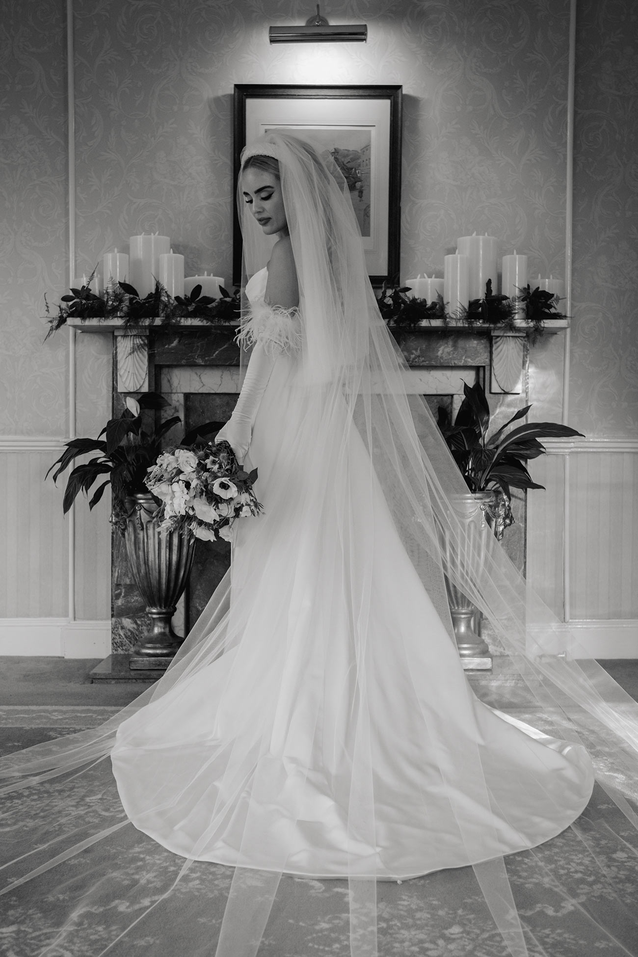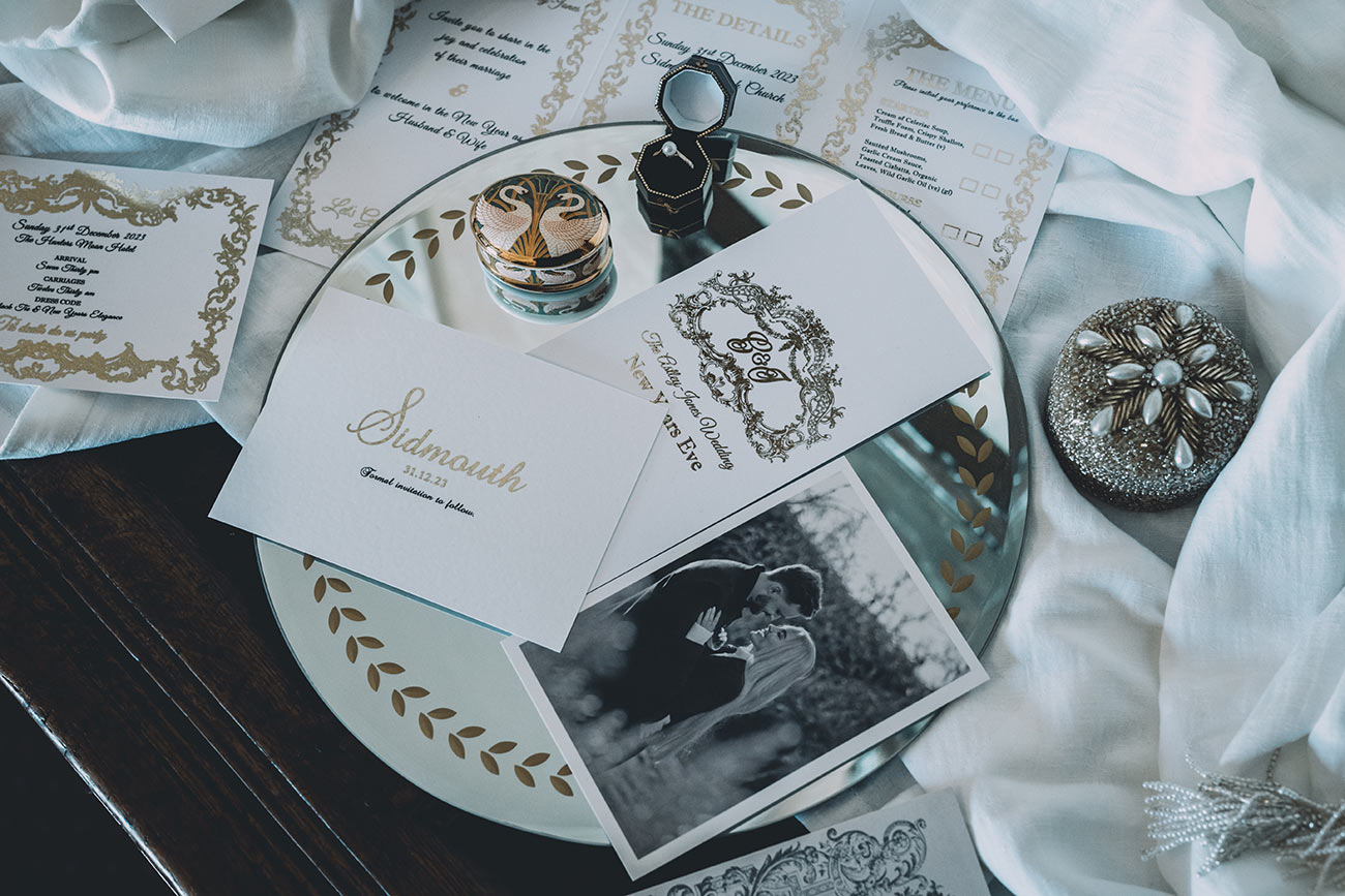 With their love story officially beginning on New Year’s Eve 2015, New Year’s Eve was the perfect wedding date for the couple, who chose the Hunters Moon, Grace’s family’s Georgian country house hotel in Sidmouth, as the setting for their “classic Hollywood glamour” celebrations.