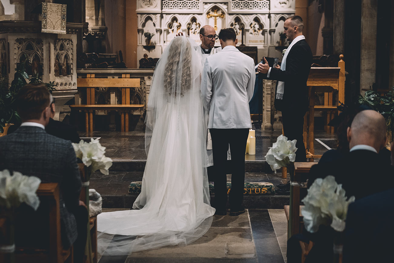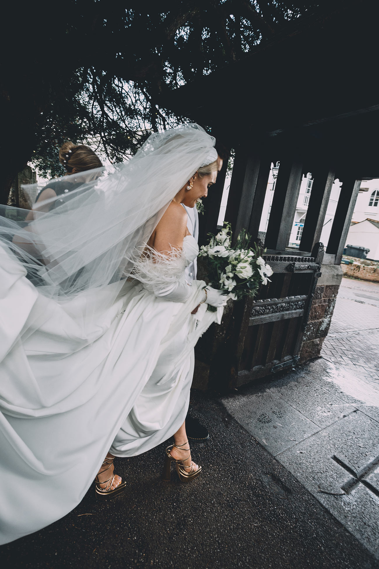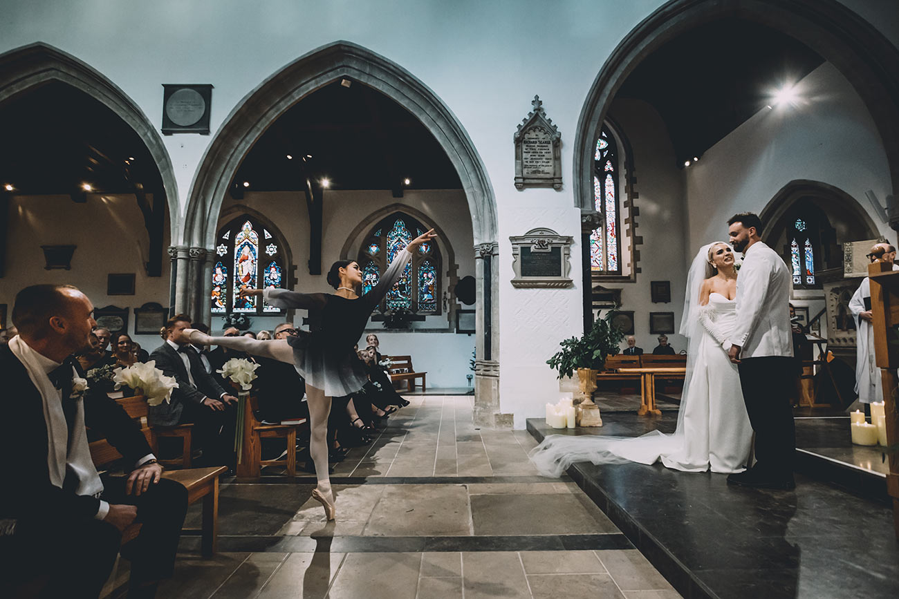 As the year drew to a close, the couple treated their guests to “an old-fashioned style wedding with a feel of New Year’s Eve excitement, enchantment, romance and glamour”. The ceremony at Sidmouth Parish Church was filled with joyful hymns, gospel music and a surprise for Jevon. “I arranged for some of my former dance students to surprise my husband and all our guests with a ballet dance performance on pointe in the aisles of the church,” reveals Grace. “It was incredibly sentimental and emotional, and I loved being able to surprise Jevon.”