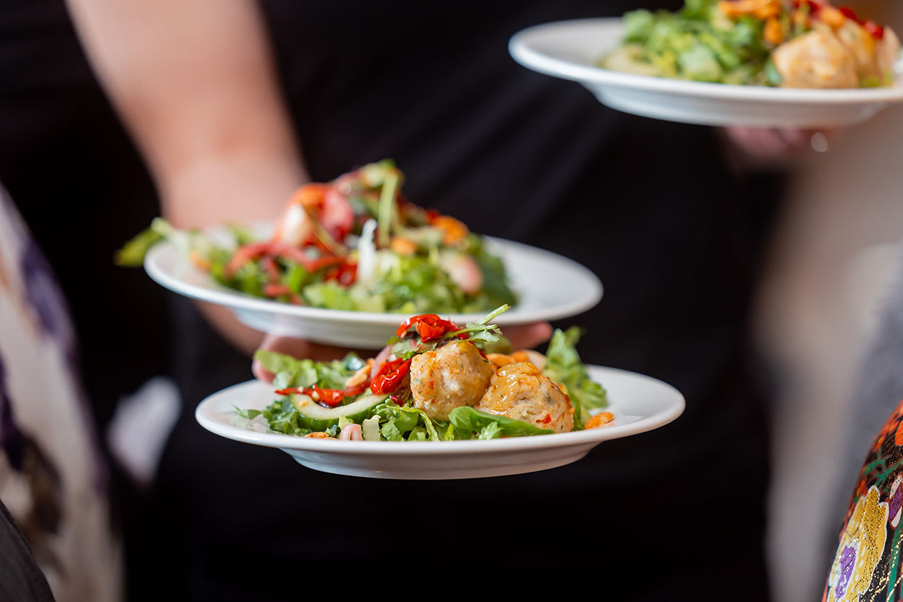 A stunning mix of floristry saw local spring blooms blending with exotic orchids for a scene awash with colour and scent. The food adopted a Thai-Cornish theme, and was chosen specifically for “our guests to enjoy a unique culinary experience that reflected our love for both places”, explains Charlie. Canapés including Cornish scotch eggs and chicken satay skewers were washed down with Cornish gin and sparkling wine ahead of the main feast. Roasted beet salad, Cornish blue cheese and ciabatta, fishcake patties and chop chop salad primed appetites for braised chuck steak and chicken panang curry, while lemongrass crème brûlée with coconut shortbread and lime fruits “provided a sweet and refreshing finish to the meal”.