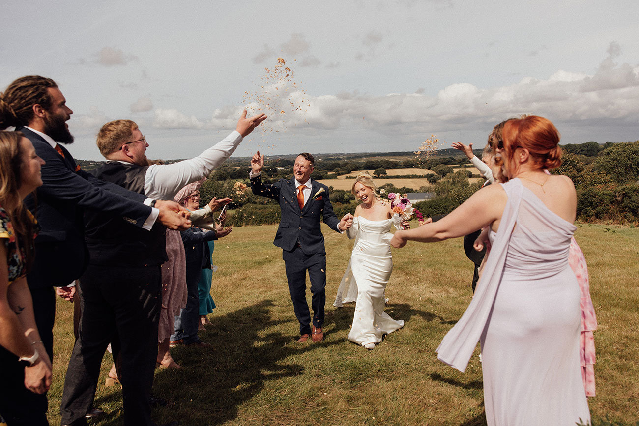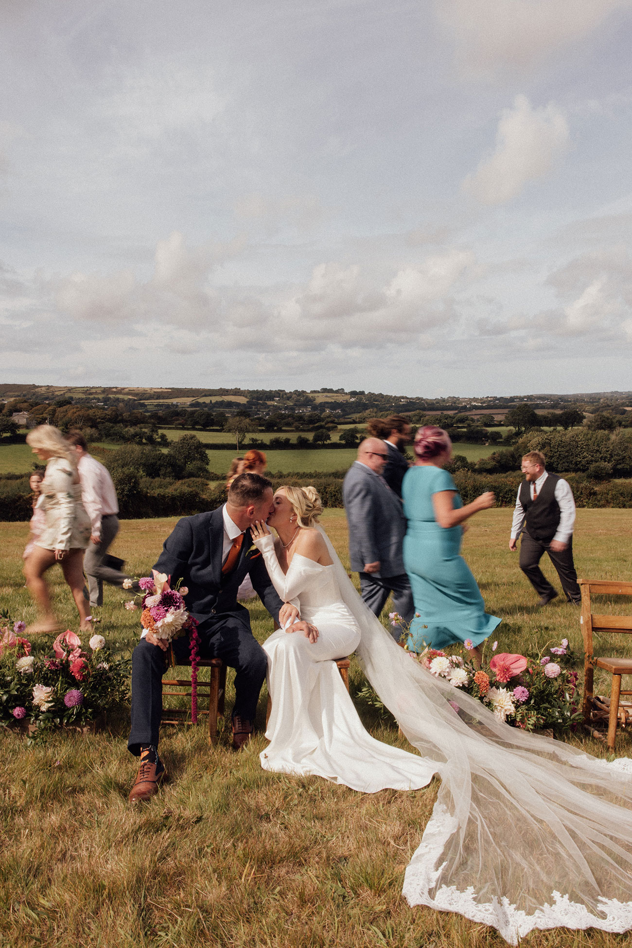 For the ceremony, Tiffanie’s dad walked her up the hill to meet Sam, with sweeping views across the Cornish countryside. “Every word spoken held meaning, and there wasn’t a dry eye,” she says.
