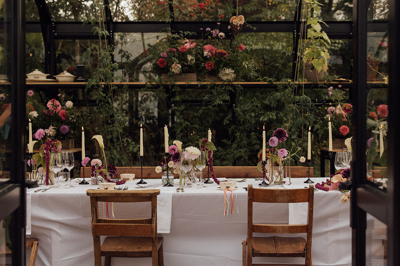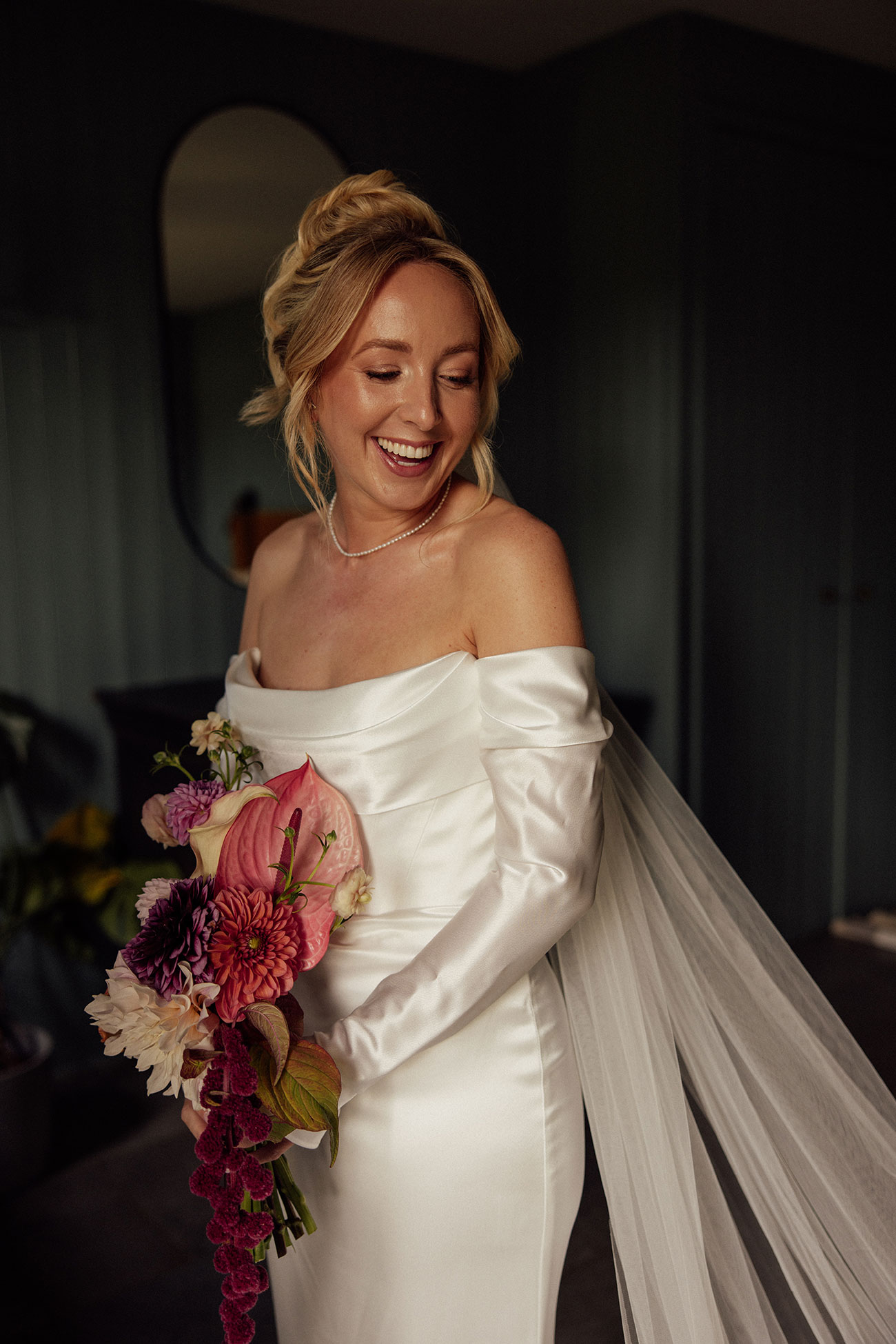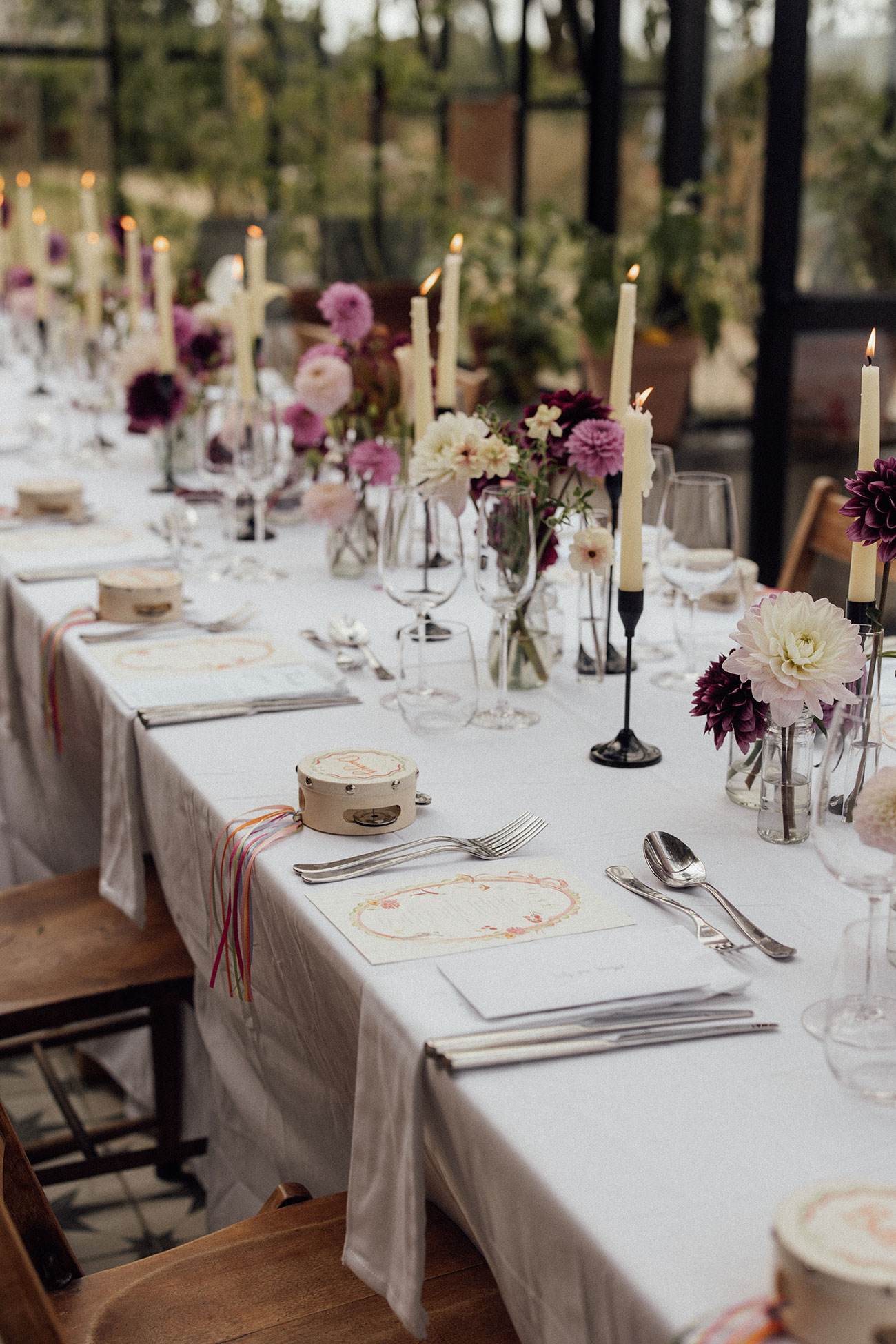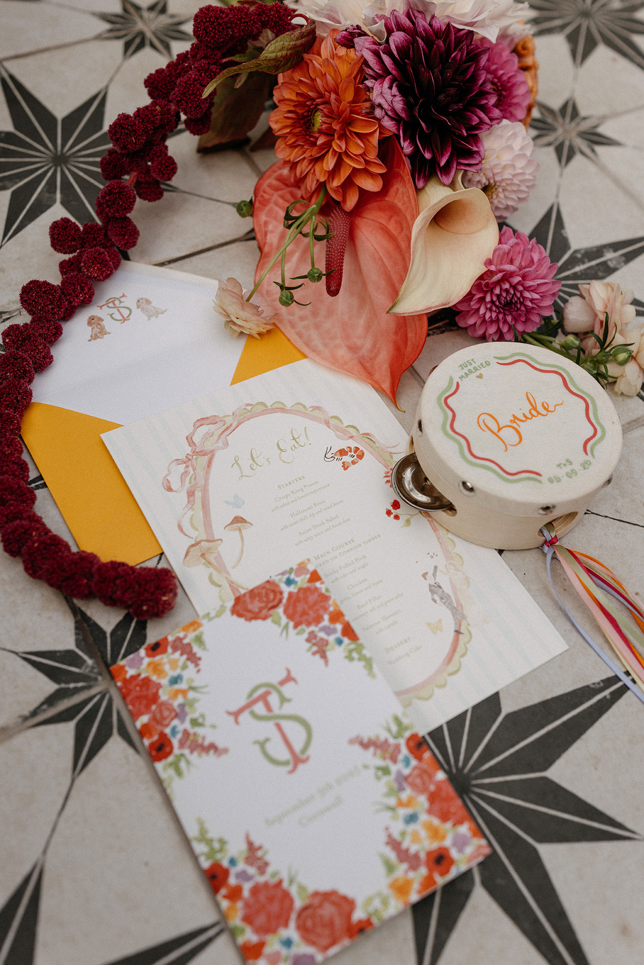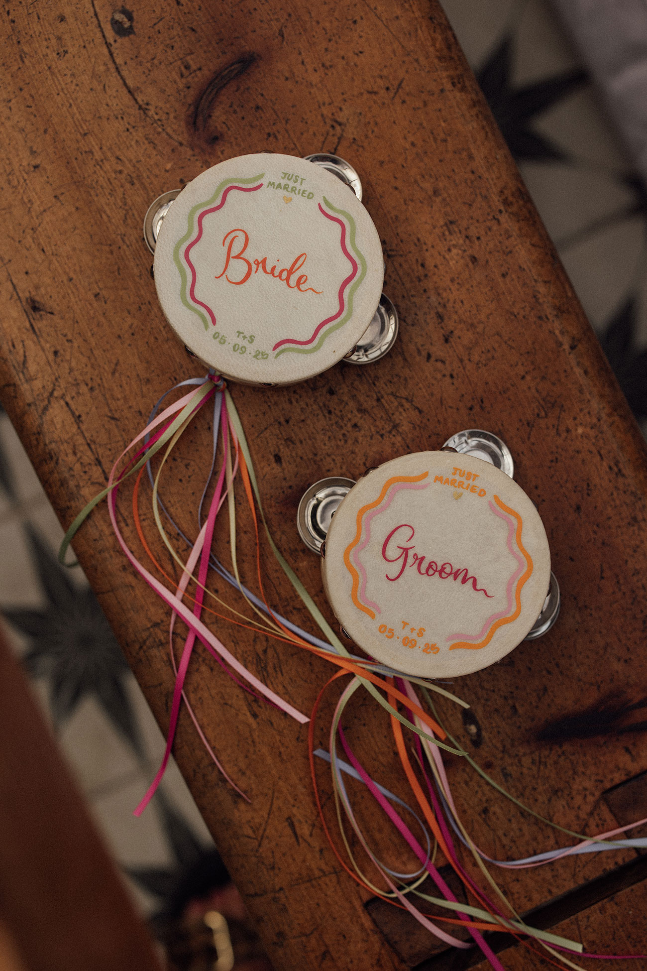 A theme of ‘whimsical pink’ brought a playful yet stylish sense of individuality to the day. “I wanted it to feel timeless and elegant while still full of colour and personality,” explains Tiffanie. “I loved stepping away from typical wedding trends and adding personal touches throughout.” Styling was largely DIY, with colourful candles and tambourines adding warmth and fun, while allowing the natural beauty of The Cornish Place to shine.