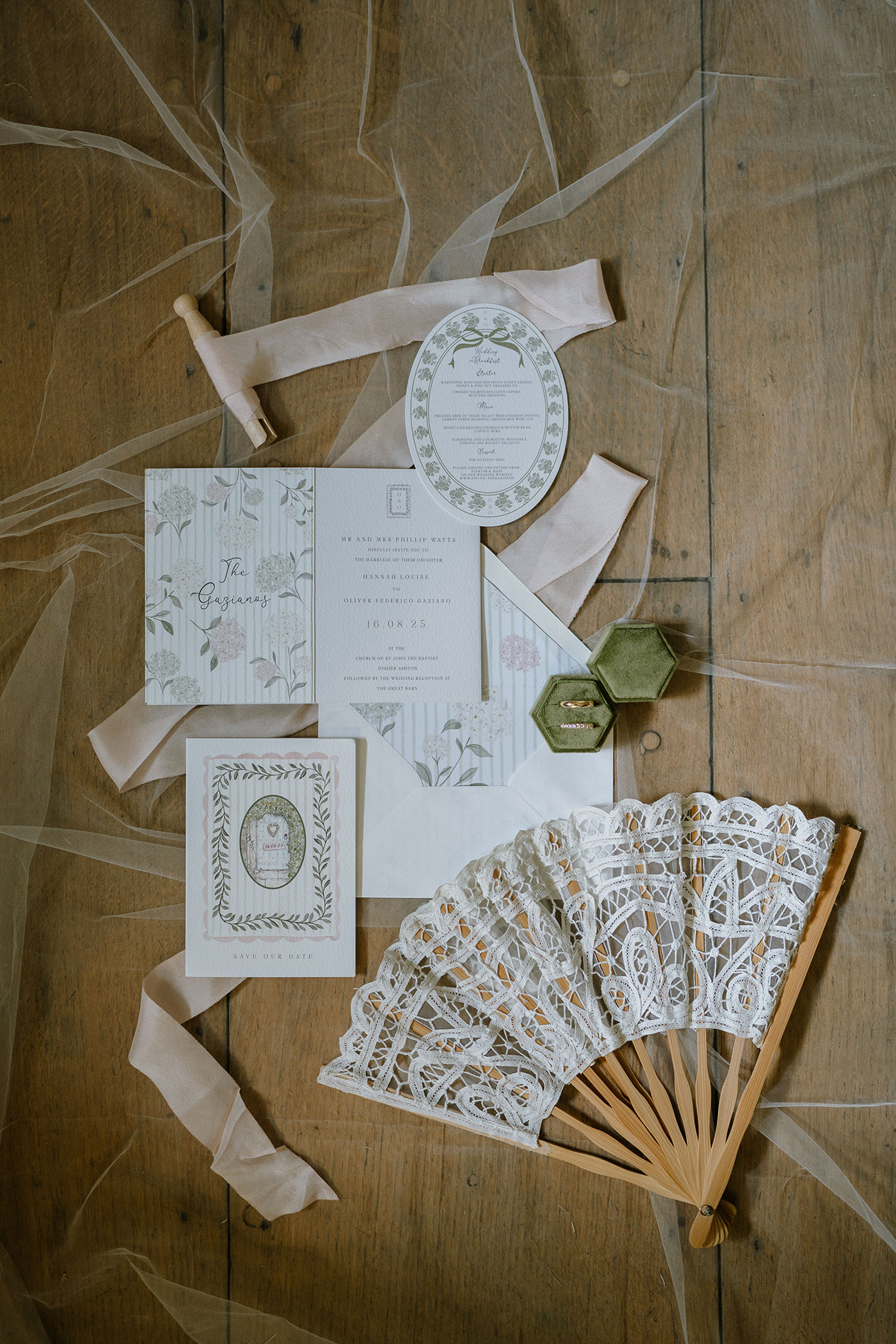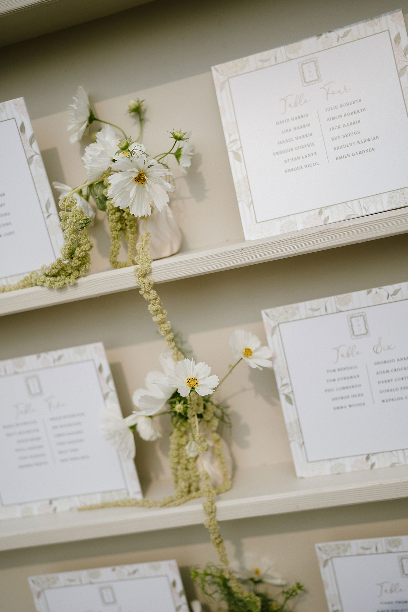 Their English summer garden party theme unfolded in soft greens and pale yellows, with hydrangeas and cosmos – Hannah’s favourite blooms – featured throughout. “They remind me of my parents’ garden, so it felt very nostalgic to build the theme around them,” she explains. With help from her florist and her dad, who grew many of the flowers on his allotment and crafted several props, the floral vision blossomed beautifully.