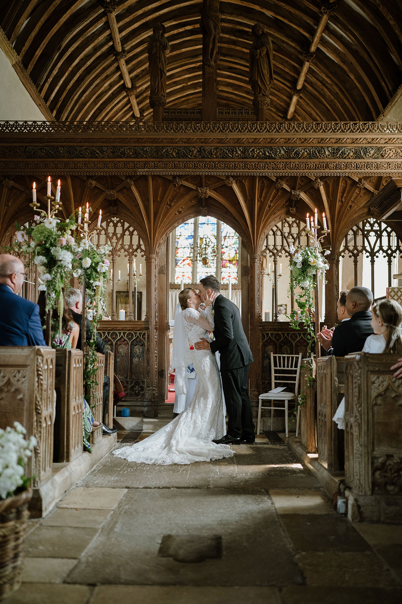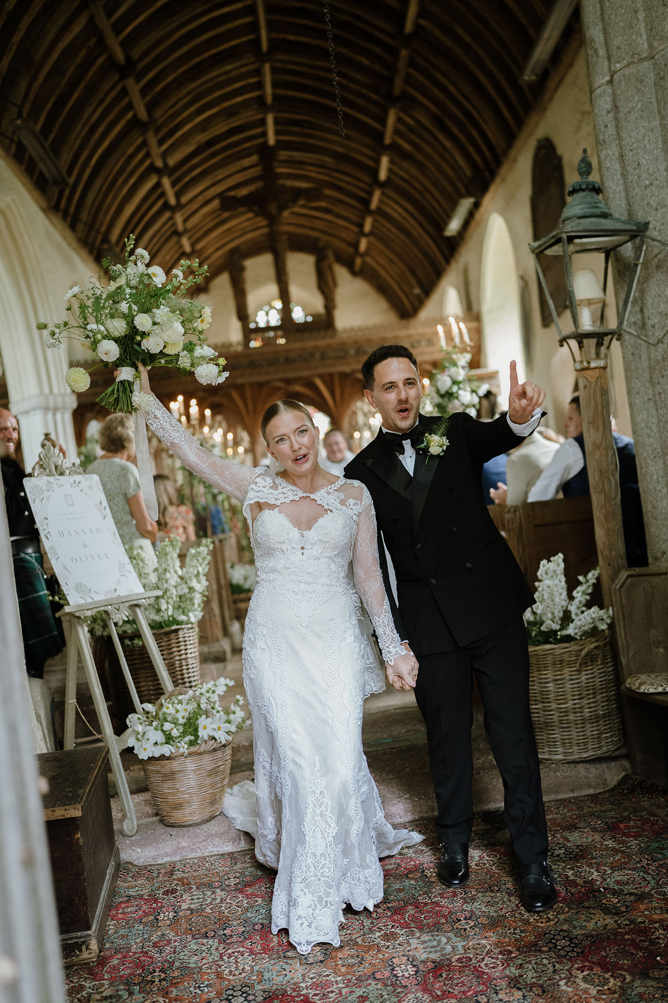 Bathed in glorious sunshine all weekend, celebrations began with an intimate welcome dinner in the West Barn. Saturday morning was slow and joy-filled before the couple made their way to the village church. “Walking in and seeing it filled with flowers, candles and everyone smiling at us… it’s a memory we’ll never forget,” says Hannah. “There were a few tears, a few giggles and so much love.”