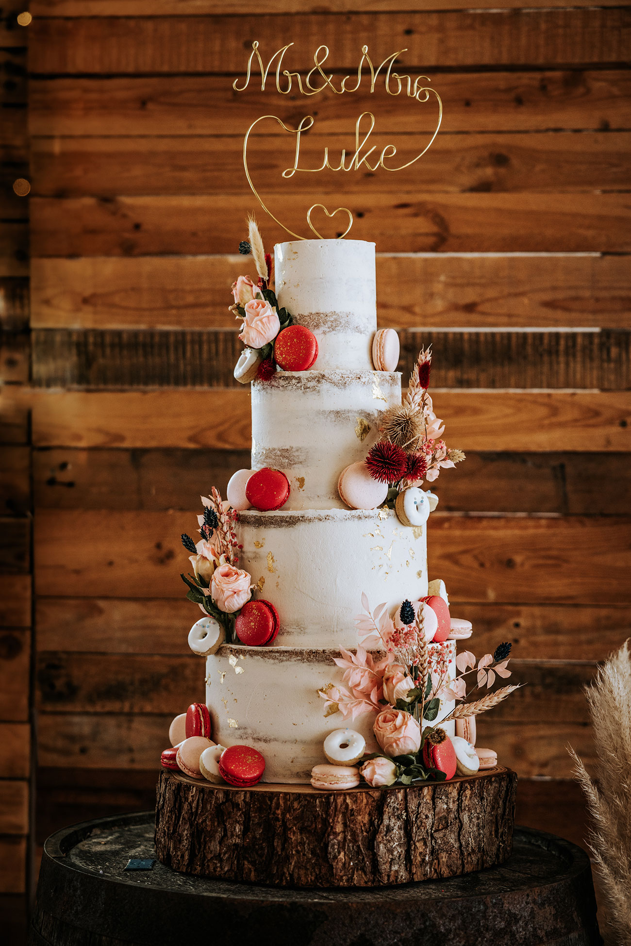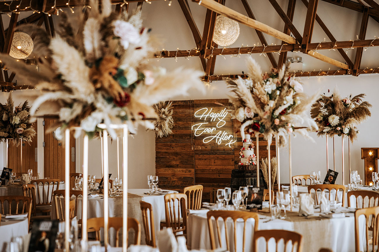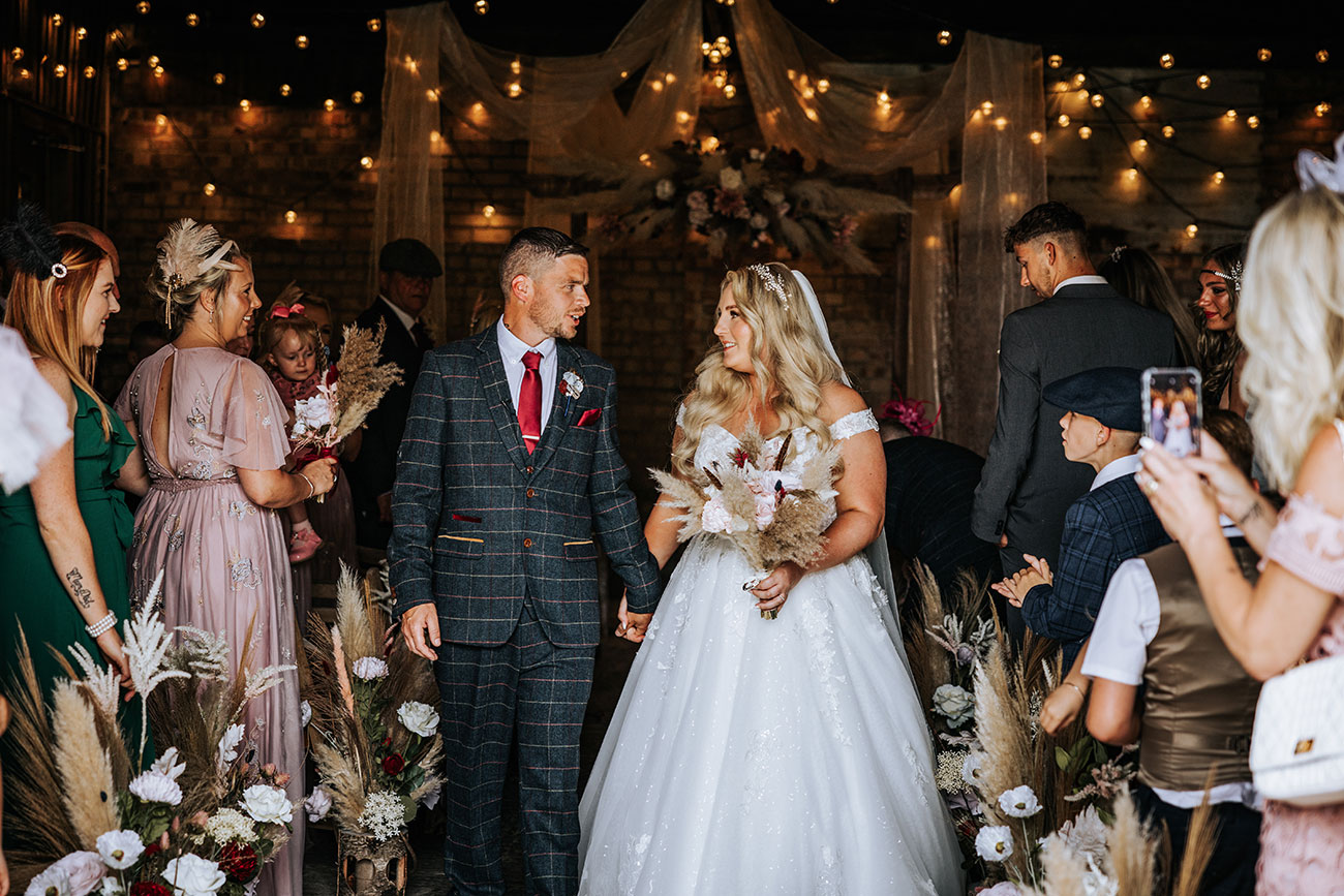 Dressed with pampas grass, festoon lights and drapes, the venue's Really Rustic Barn made an atmospheric setting for the ceremony, which began with a stirring performance of Elvis Presley’s Can’t Help Falling In Love by The Swing Kings as Hollie walked down the aisle. After a vows and a poem read by their celebrant, the newlyweds exited to another classic: Stevie Wonder’s Signed, Sealed, Delivered.