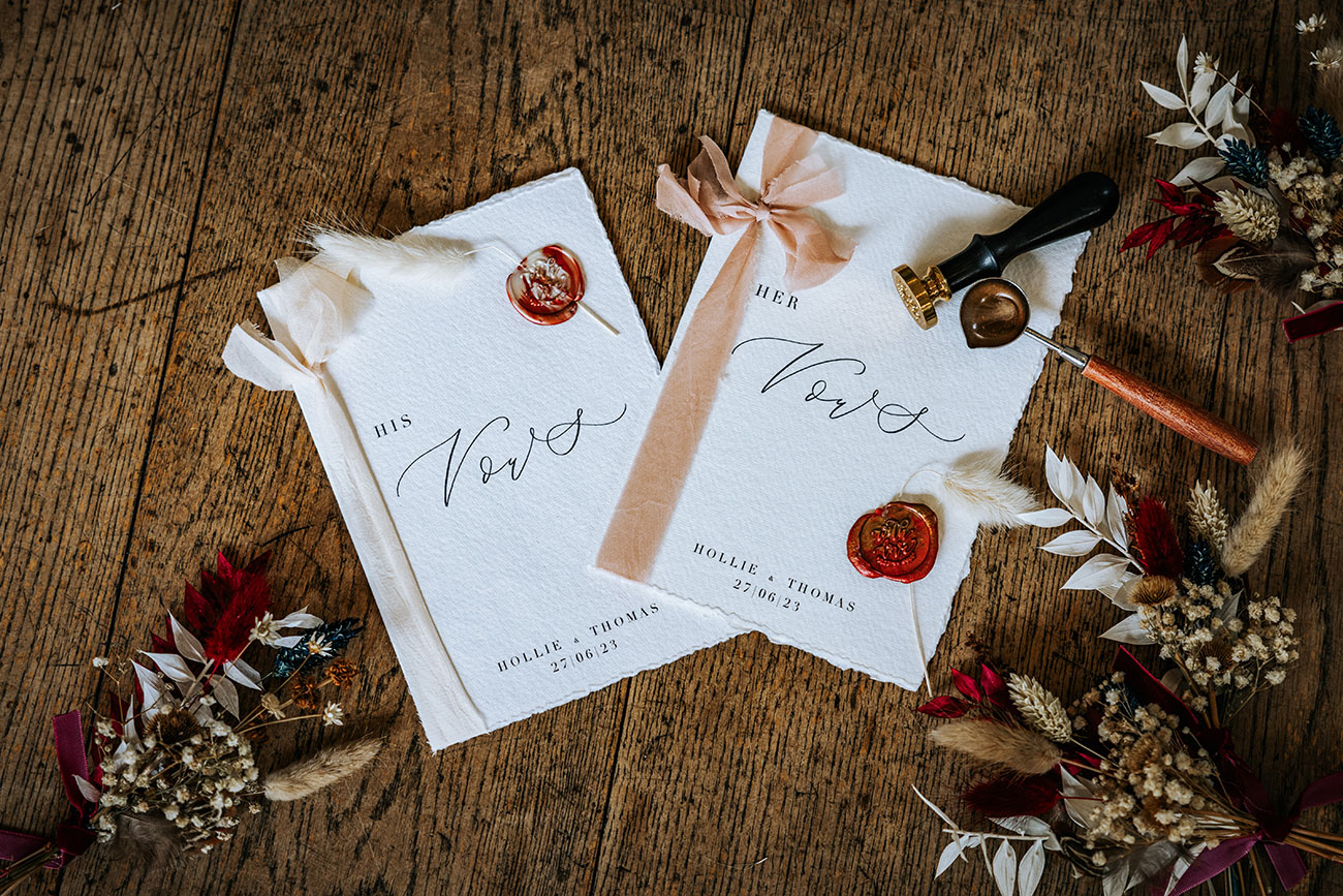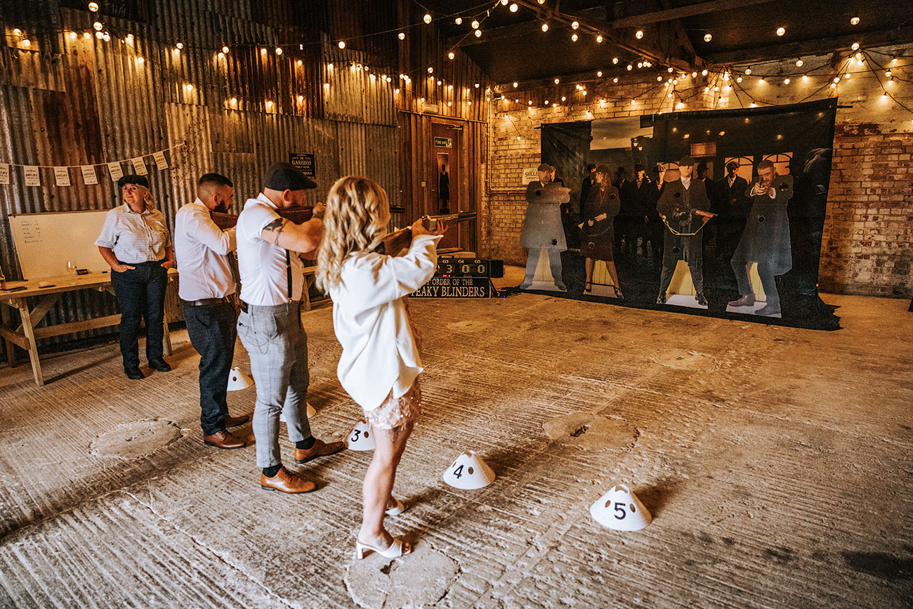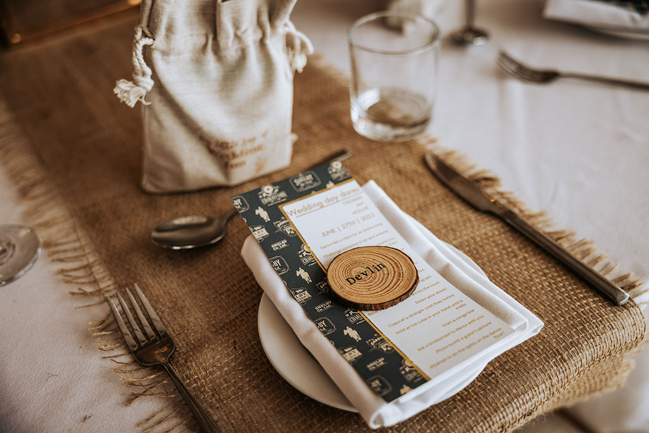 The Green had been earmarked years before as their venue of choice, serving as the most picturesque backdrop to their Peaky Blinders themed day. “This was chosen due to Thomas’ love of the show and our love of the vintage style theme,” says Hollie. A colour scheme of burgundy, gold and navy blue punctuated with pampas grass beautifully carried the look. “I also added dusky pink to lighten the theme due to the darkness of our other colours,” she explains.
