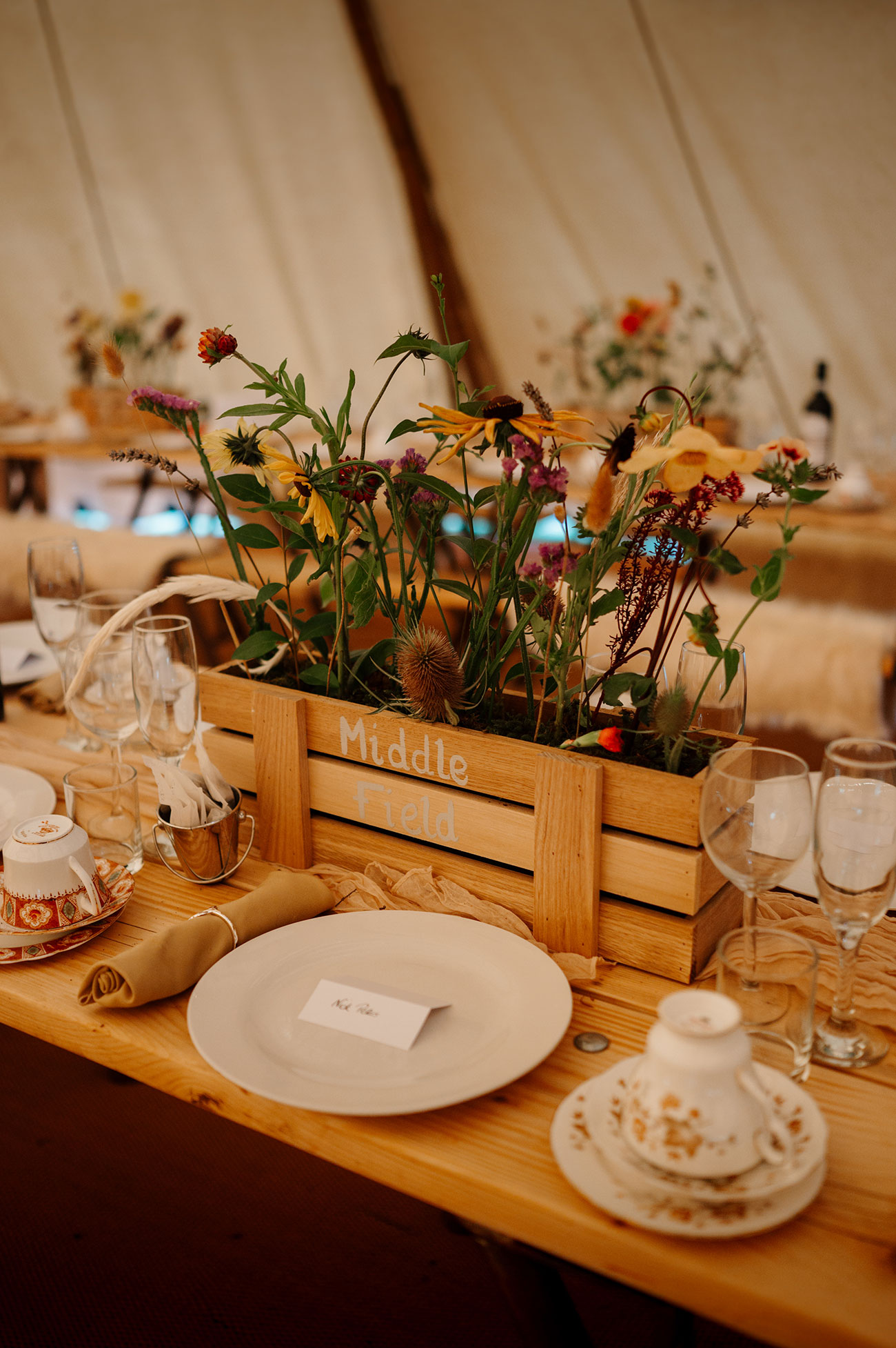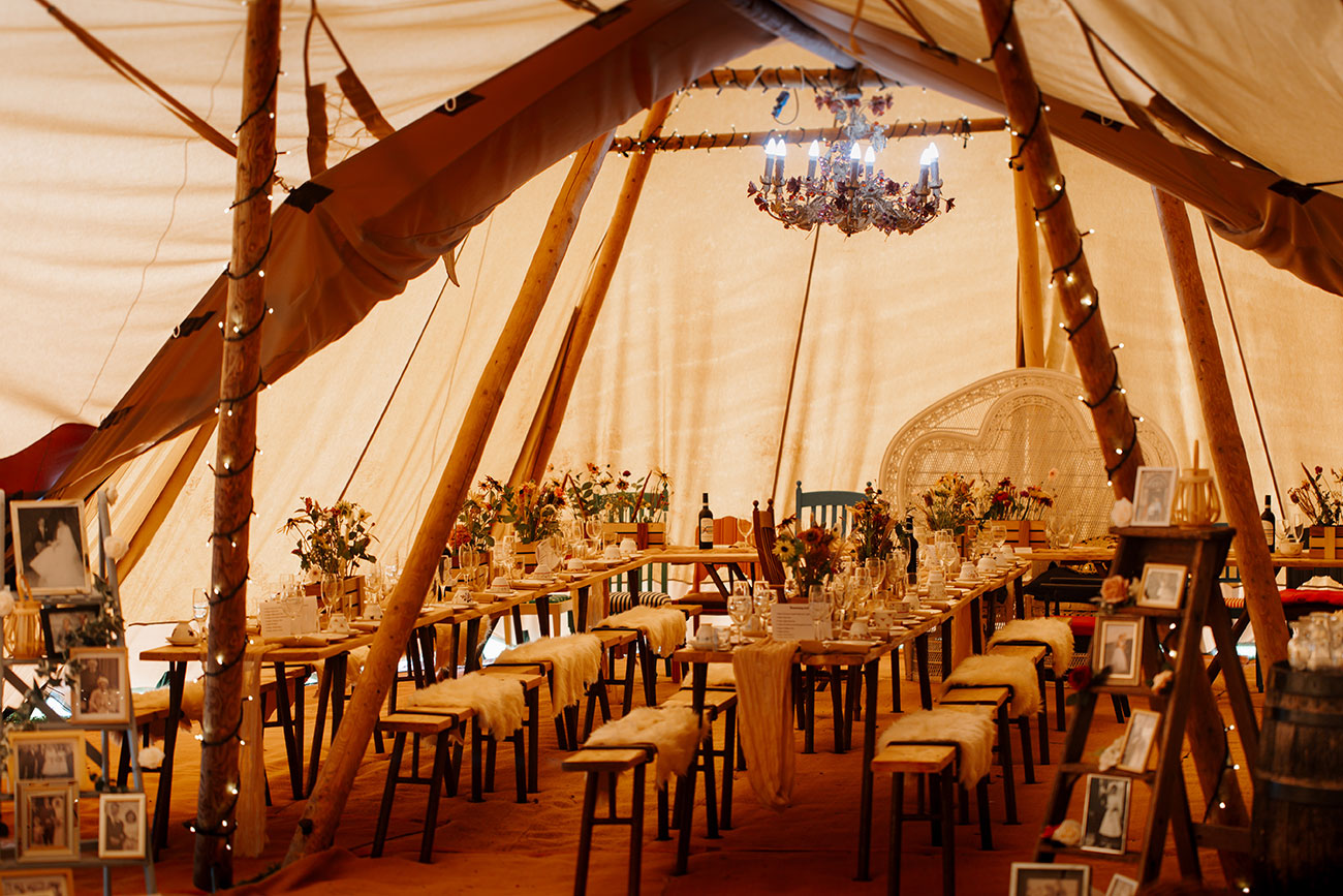 The celebrations then moved to a tipi on John’s grandparents’ land in St Day, where the relaxed atmosphere continued. Guests were greeted with mead fizz cocktails named after the couple’s pugs - the Marley, the Bruno and the Winston - as a steel band set the party vibe. “Steel Appeal were wonderful,” says Alison. “The kids were in awe, and they even let some of them play their steel pans!”