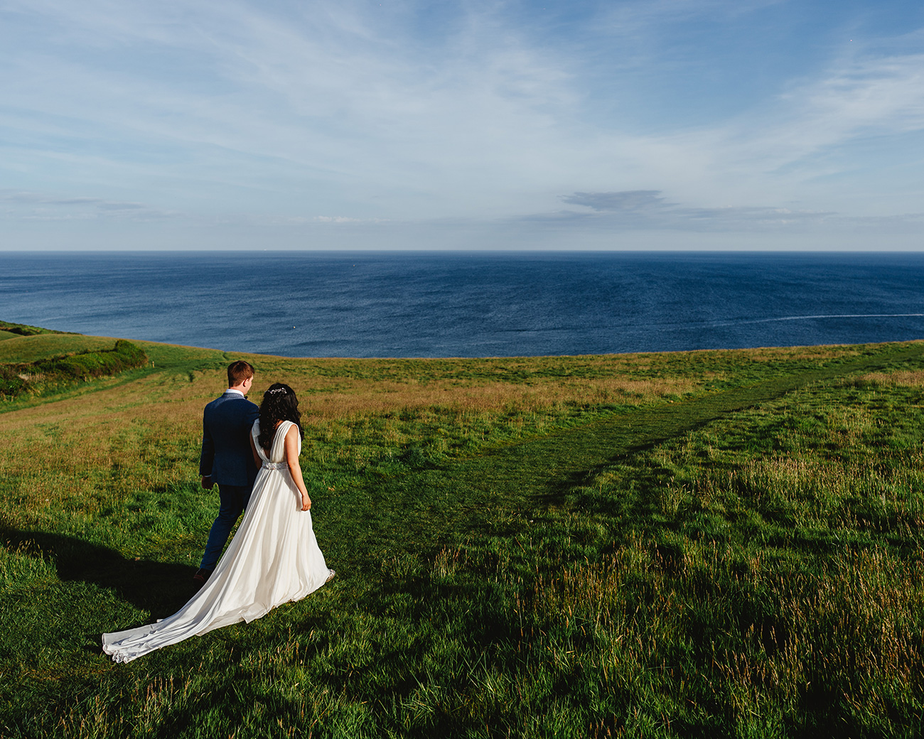 Clarizza and Alex first met while studying at Loughborough University. “We lived in the same halls of residence and finally got together after a fateful night at the student union!” reveals Clarizza. Years later, Alex proposed at sunset on a hill in Hainault Forest, setting their Cornish wedding plans into motion.