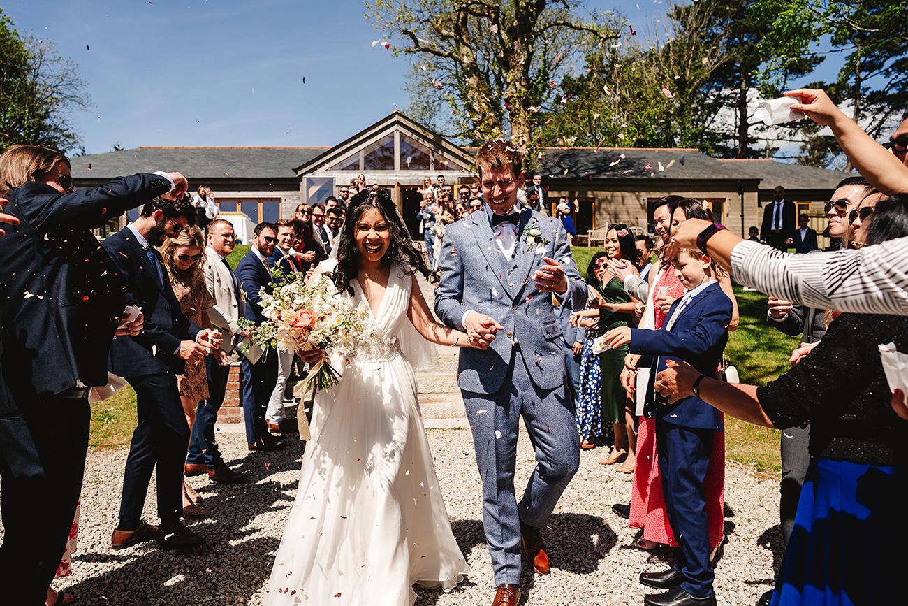 Conducted by Cornish Celebrants beneath the ceremony temple, the outdoor ceremony was, in Clarizza’s words, “perfect”. “The first thing I saw walking down the aisle with my dad was my brother playing the guitar. I heard his voice crack and it instantly made me cry,’ she says of a particularly memorable moment.