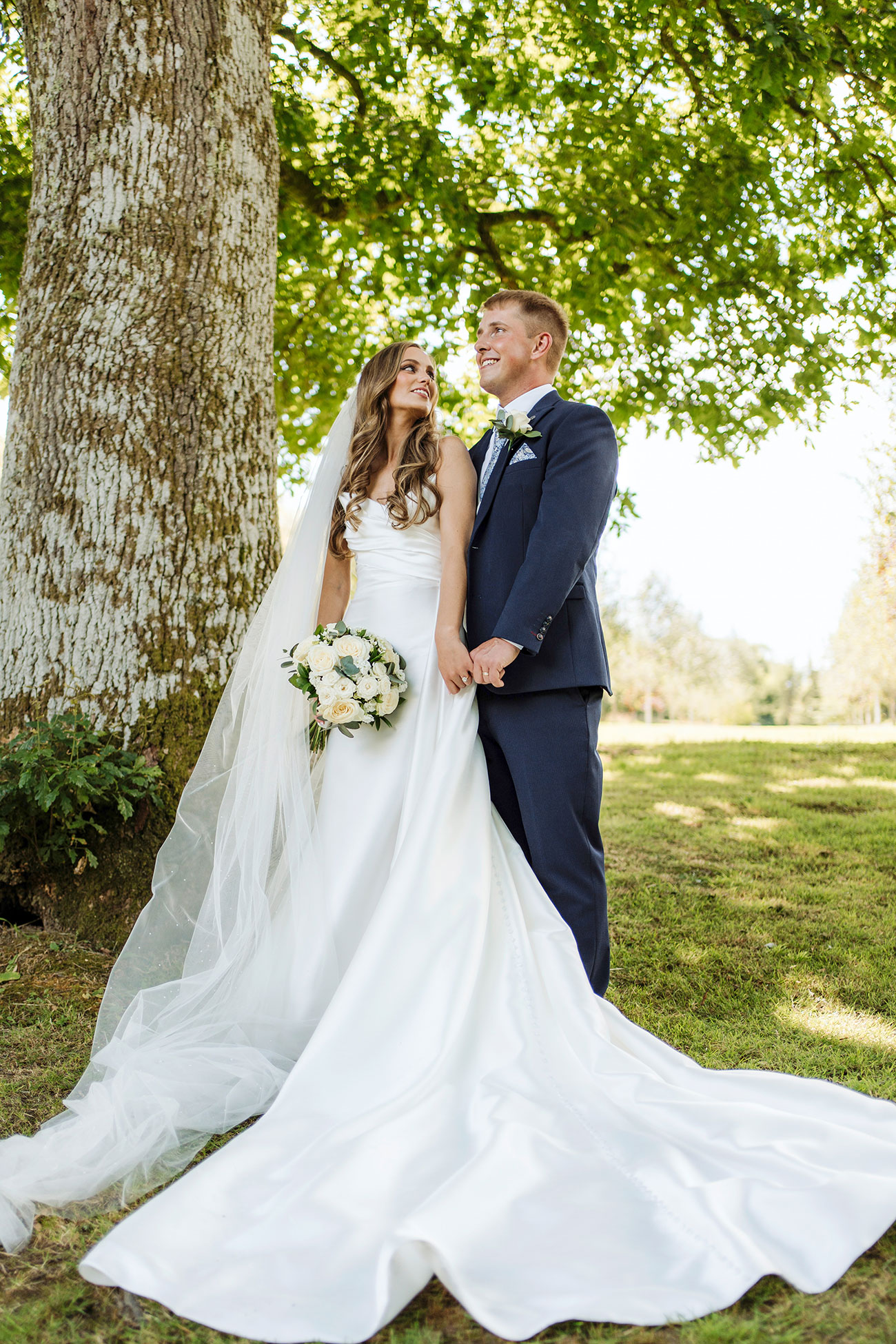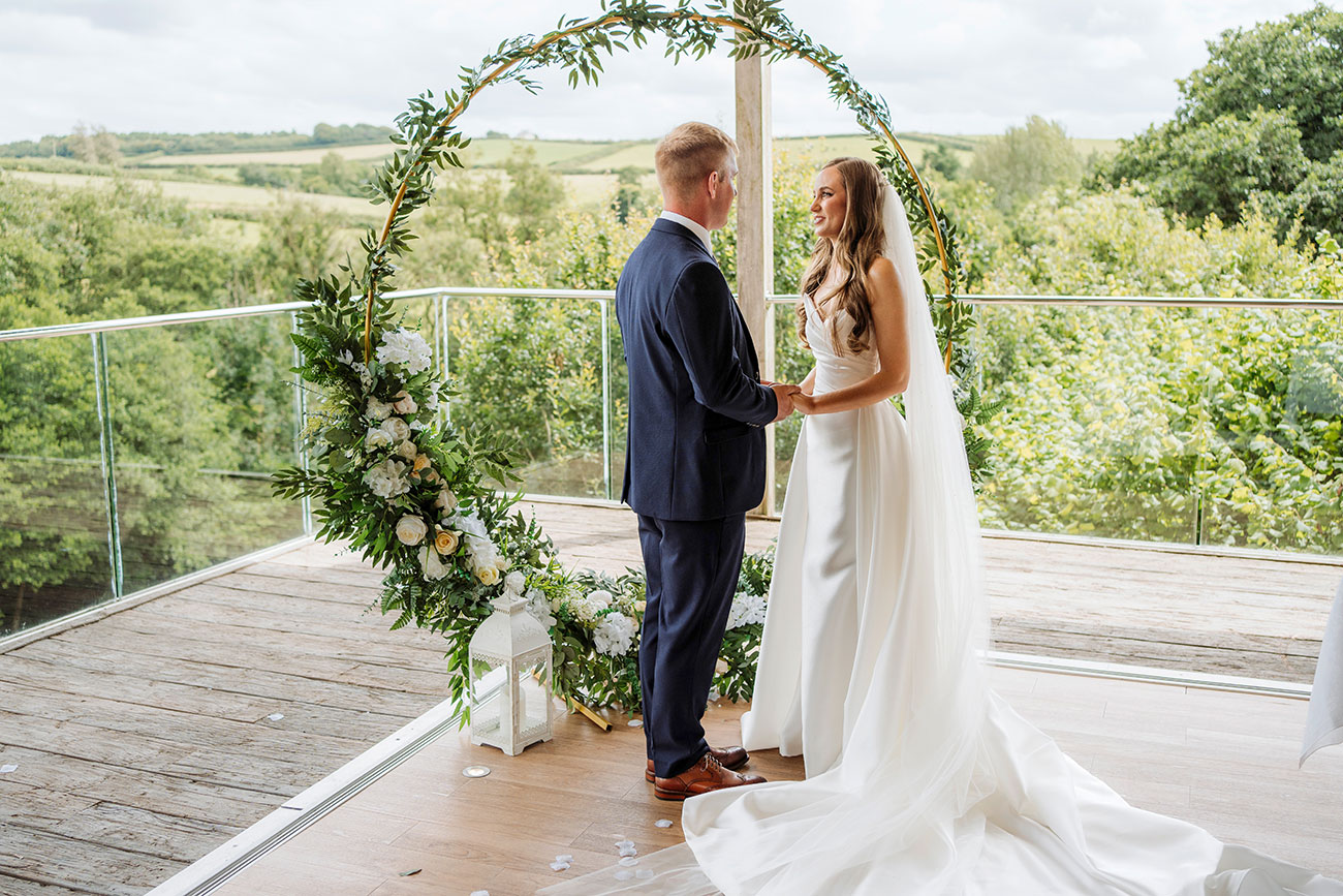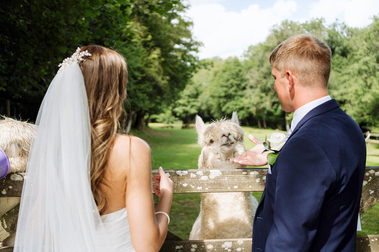 The ceremony took place in the serene setting of The Nest, followed by a leisurely wander through Millbrook’s grounds. “We fed the lovely alpacas while being photographed!” Hannah smiles, reflecting on the joy-filled first moments of married life. The newlyweds then settled into the Meadow Room, overlooking the beautiful views at Millbrook, for an indulgent afternoon tea. “We really soaked up the moment in the sunshine, with no distractions in the world,” reflects Hannah.