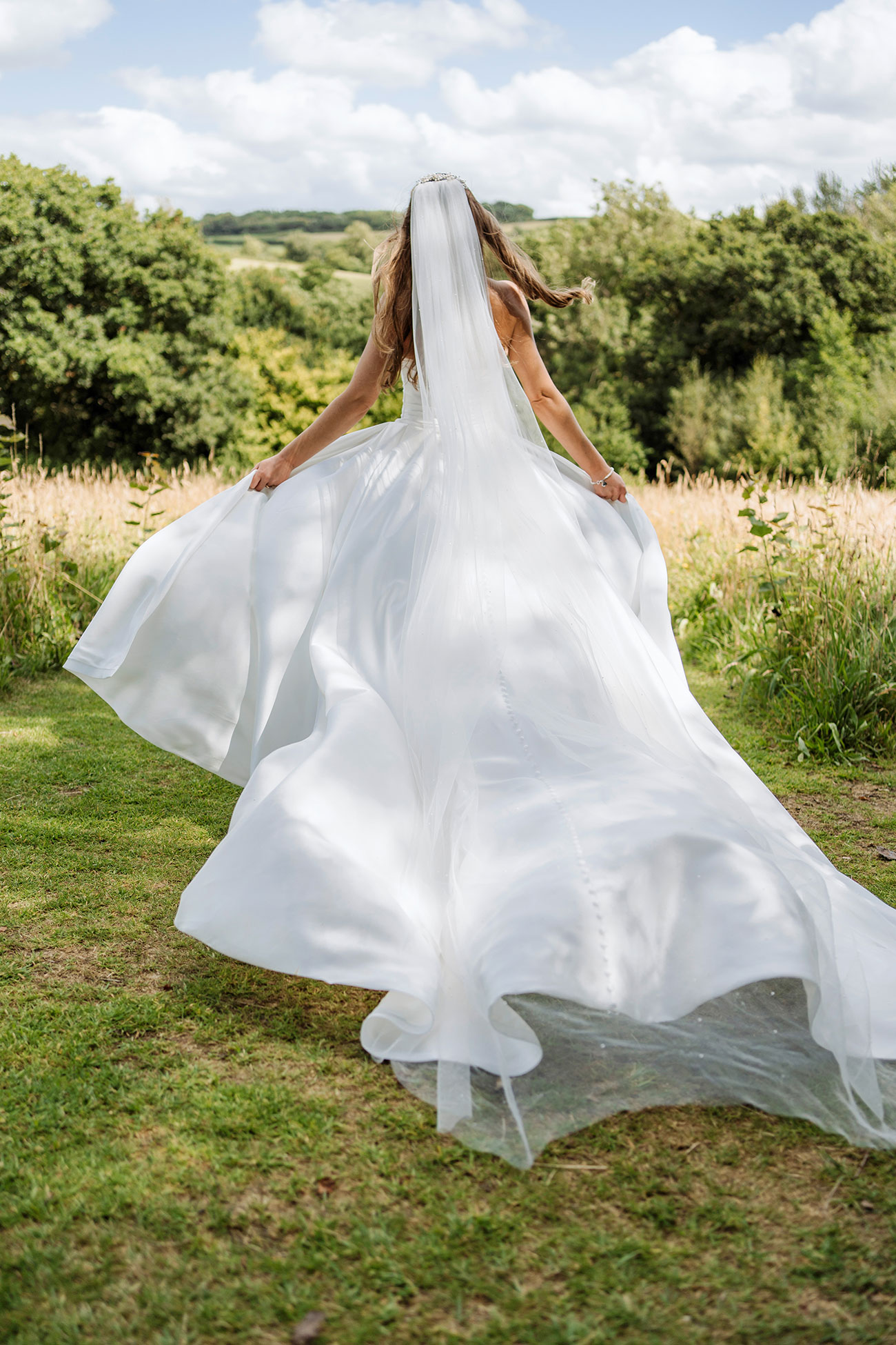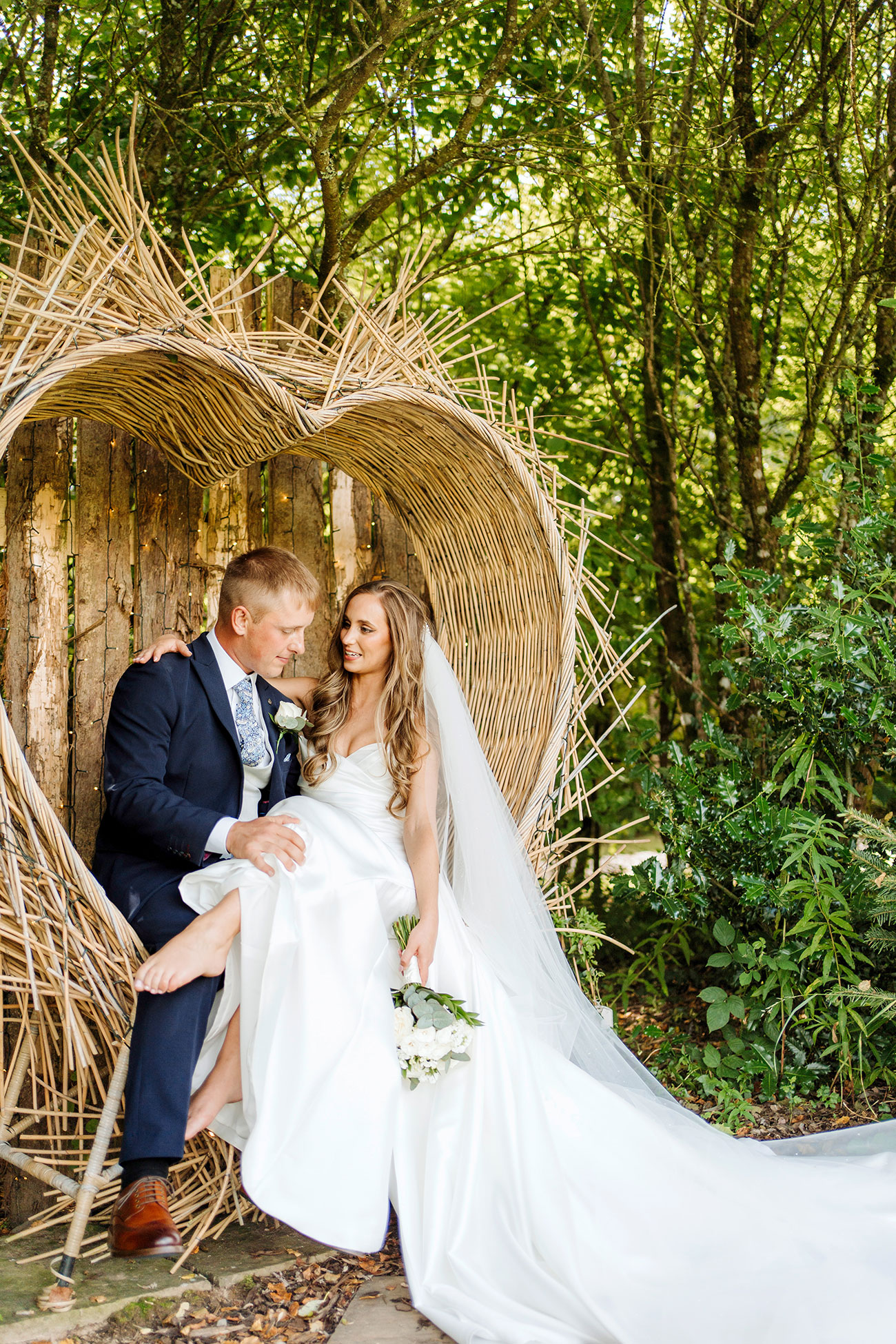 The afternoon unfolded in a romantic blur of dancing to the jukebox before returning to The Nest, where their private dinner awaited. “We had the same menu for our evening meal that Justine, our chef, had prepared for our engagement in the summer house,” says Hannah. The nostalgia of their meal made it all the more special, starting with scallops, followed by roast duck, and ending with five miniature desserts to share. “This beautiful dining experience in The Nest, watching the sun set over the countryside, was one of our most treasured parts of the day,” she reminisces.