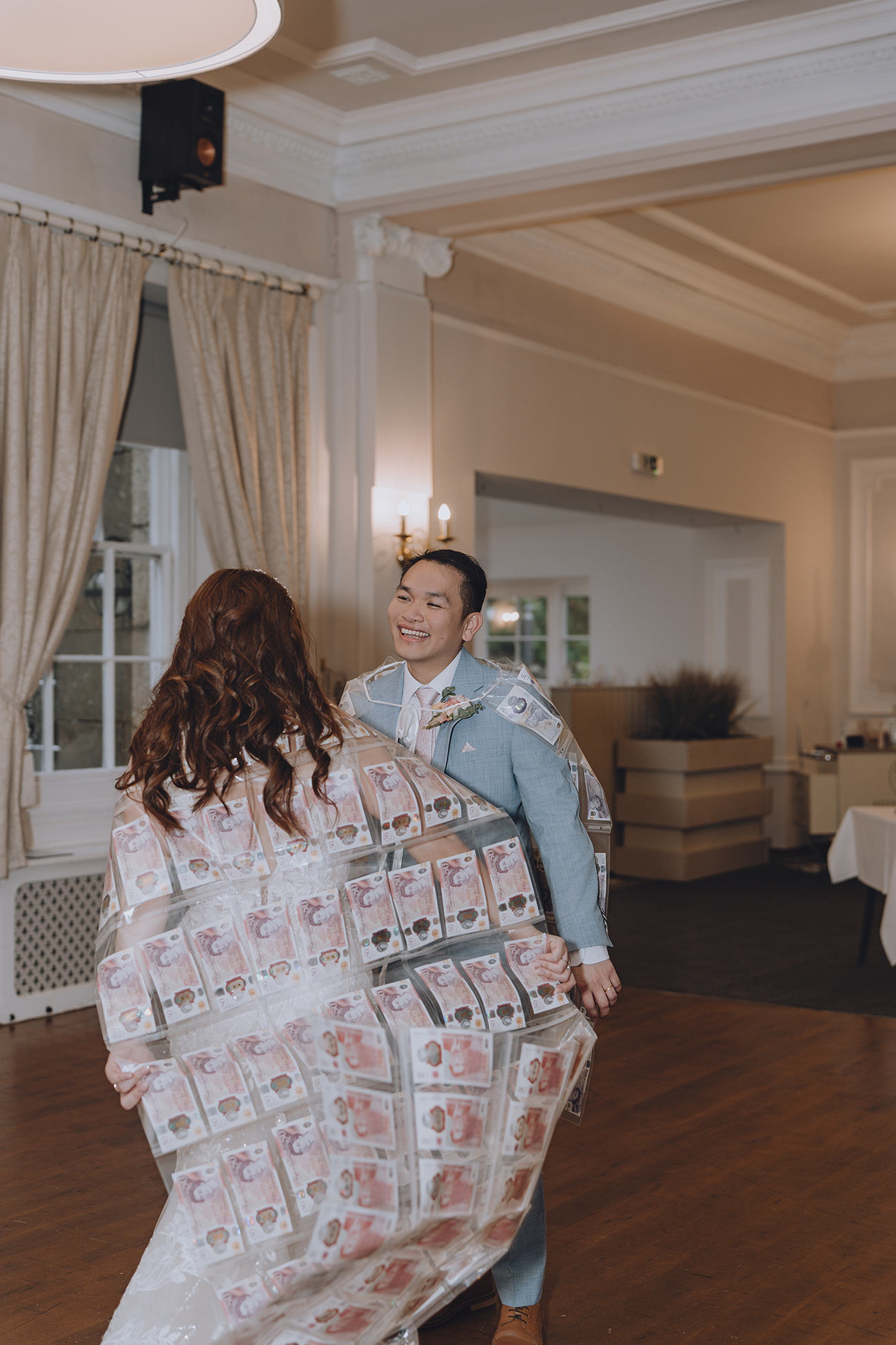 A surprise came in the form of a ‘money capes’ dance, a Filipino tradition that saw families, friends and guests pinning money to the couple’s clothing as they danced.