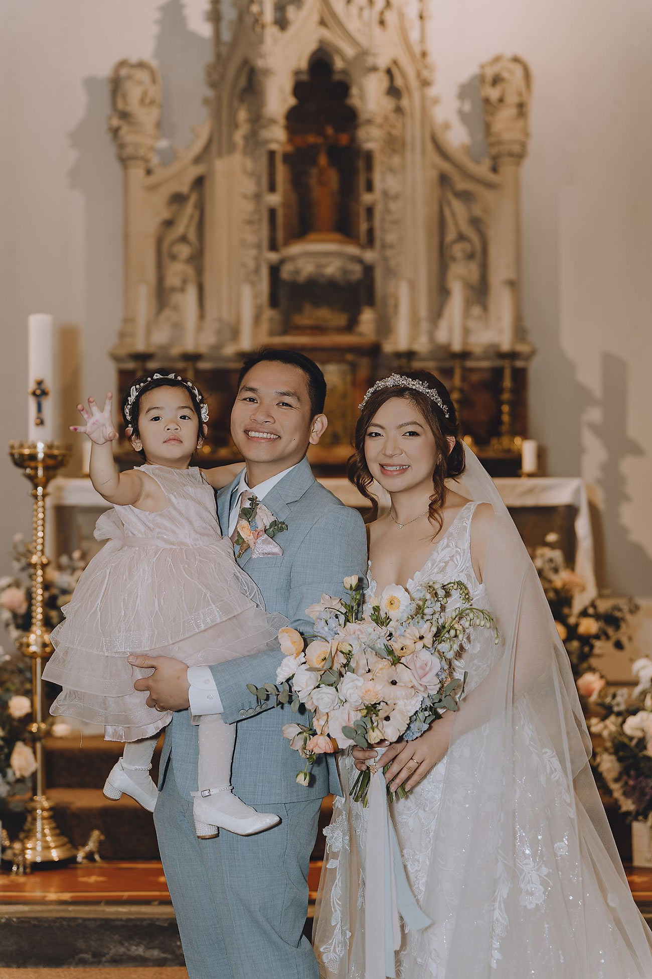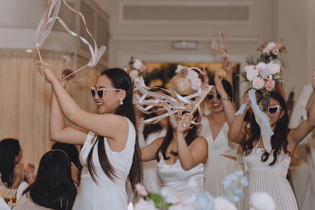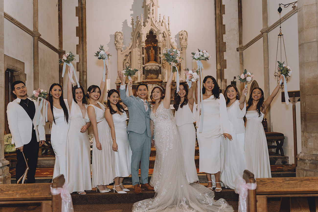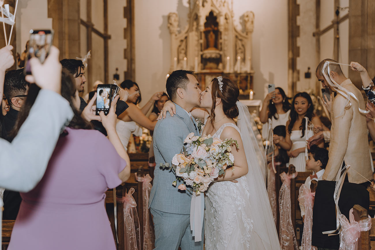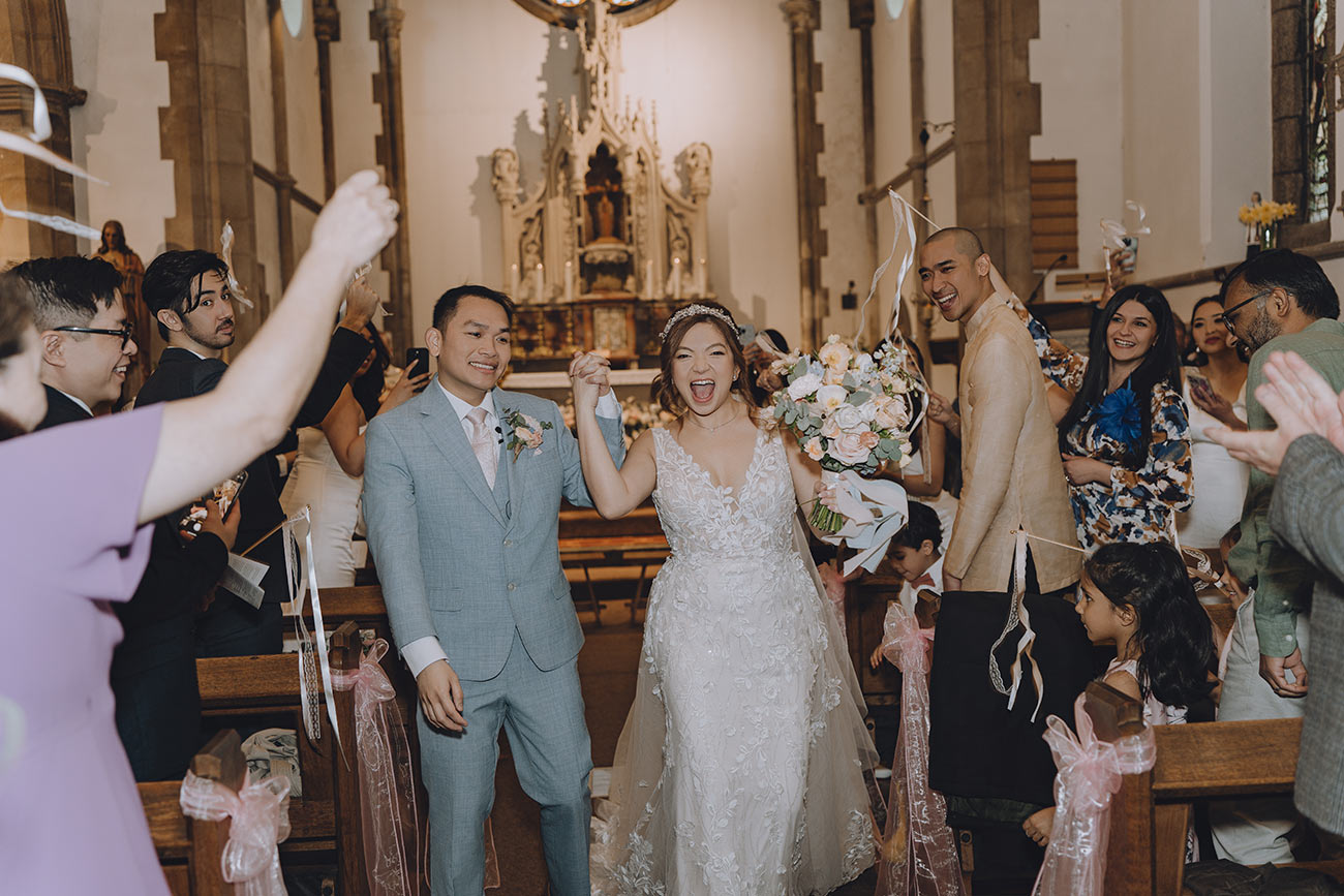 Arriving in a white Jaguar to the ceremony, the couple – being the first Filipinos to wed in the church – presented their wedding traditions of their arrhae, candles, rope and veil to symbolise prosperity, light, and unity in marriage. “The ceremony was truly heartfelt. Happy tears were shed and giddy laughter echoed all throughout the church,” says Nicca. “The readings were all about different kinds of love – love for the family, love for God, love for the couple. That’s what this wedding was about: a celebration of love!”