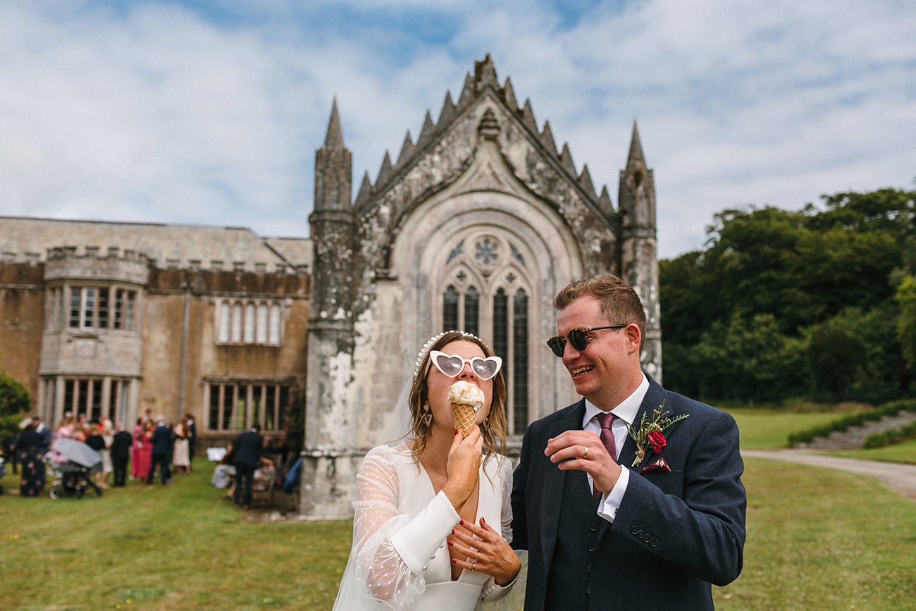 Having officially married the day before in the company of their parents in Trelowarren’s library, Alice and Dave staged a “personal and fun” ceremony in the chapel surrounded by a congregation of close friends and family. Drinks, canapés and ice cream followed to a string quartet soundtrack on the chapel lawn, paving the way for the speeches in the Stable Barn.