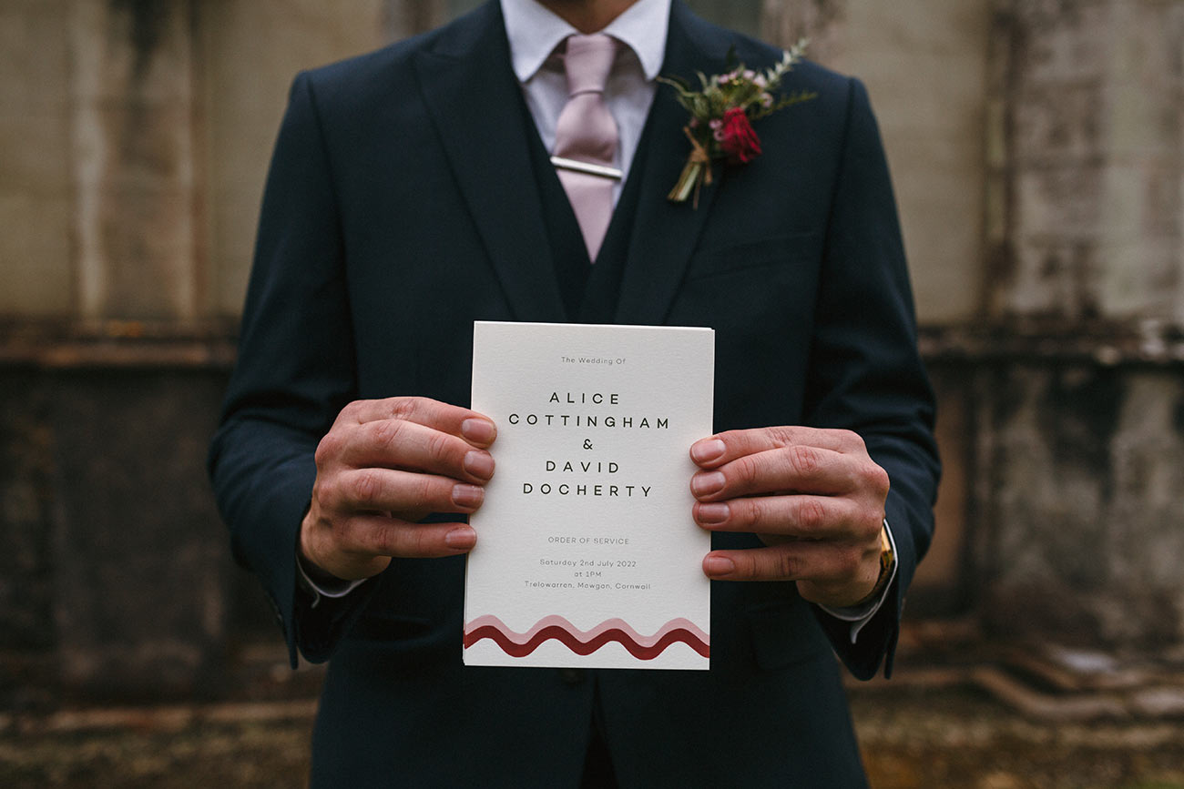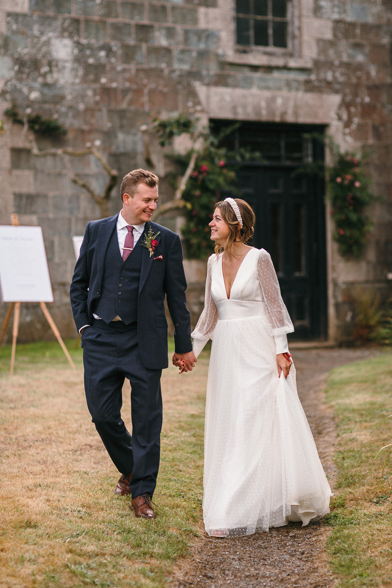Determined to marry in the county where Alice grew up and they first met, the couple visited just one venue. “I saw a styled shoot at Trelowarren in Wed Magazine just after we were engaged and was so excited,” she reveals. “We really liked that we could have the whole day there with a few different spaces to move around. We also wanted our guests who were coming from out of the county to see the wilder side of Cornwall that we love. Trelowarren with its meandering driveway, wild ponies and an almost Gothic feel felt perfect!”