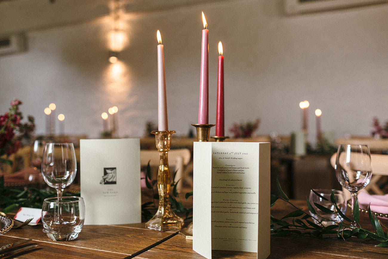“We really wanted the menu to be completely local and showcase lots of Cornish ingredients; New Yard have a Green Michelin Star for their efforts in sustainable and local sourcing so we couldn't have wished for a better option!” explains Alice of the on-site restaurant who served a bespoke menu featuring their favourite foods. “We had a spin on caprese salad for starter, kiln-baked steak and monkfish for the main course and panna cotta with Cornish strawberries for dessert.”