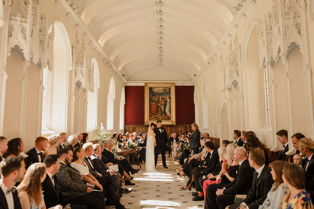 Their celebrations unfolded over a weekend, starting with a low-key legal ceremony on the Friday afternoon in Trelowarren’s library. Close family joined the couple as they exchanged vows in the intimate setting, with Sheree donning an elegant ivory trouser suit for the occasion. The couple stayed in the main house the night before, beginning their weekend with a grand breakfast for two. “It was very special waking up together in such a beautiful place,” says Sheree.