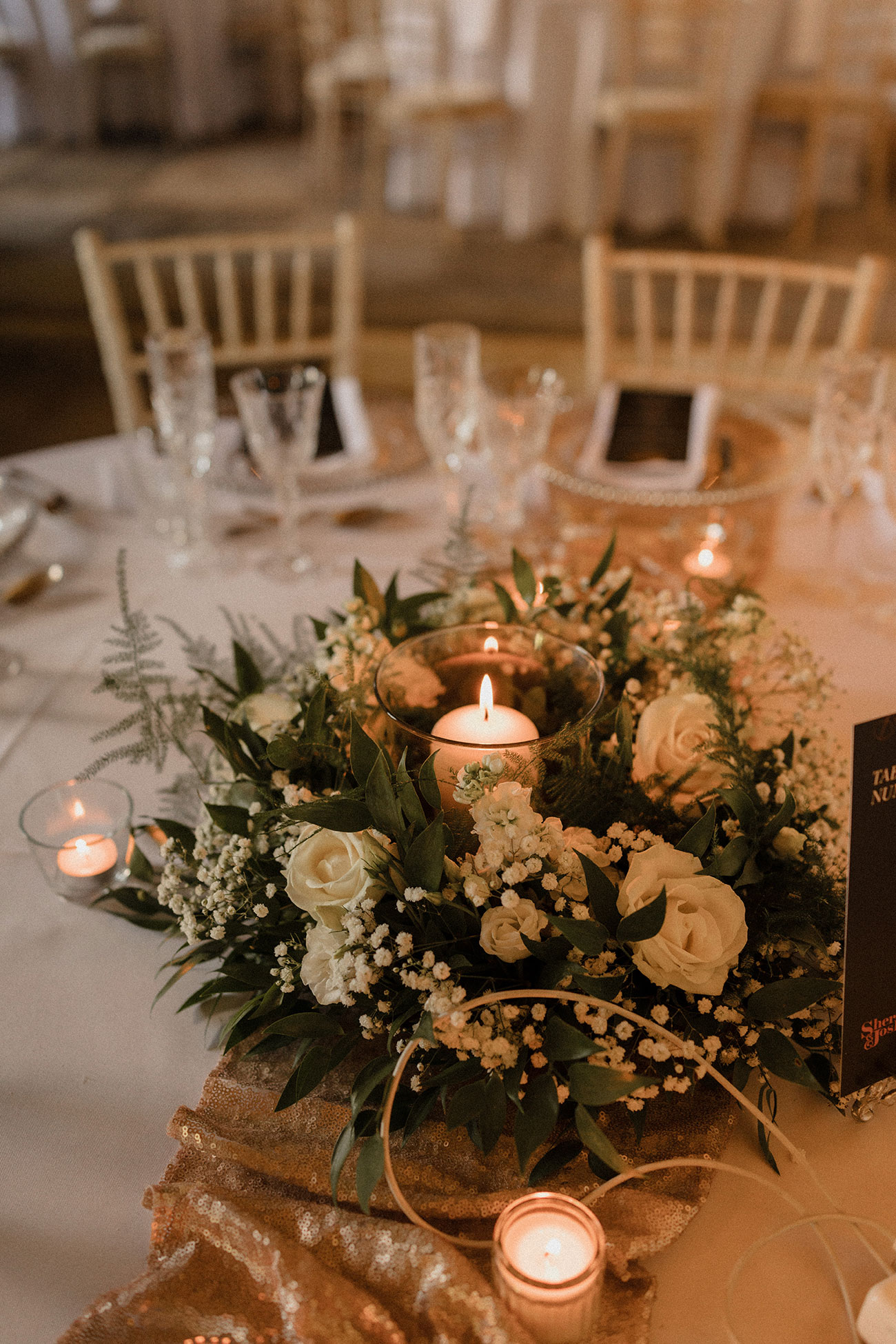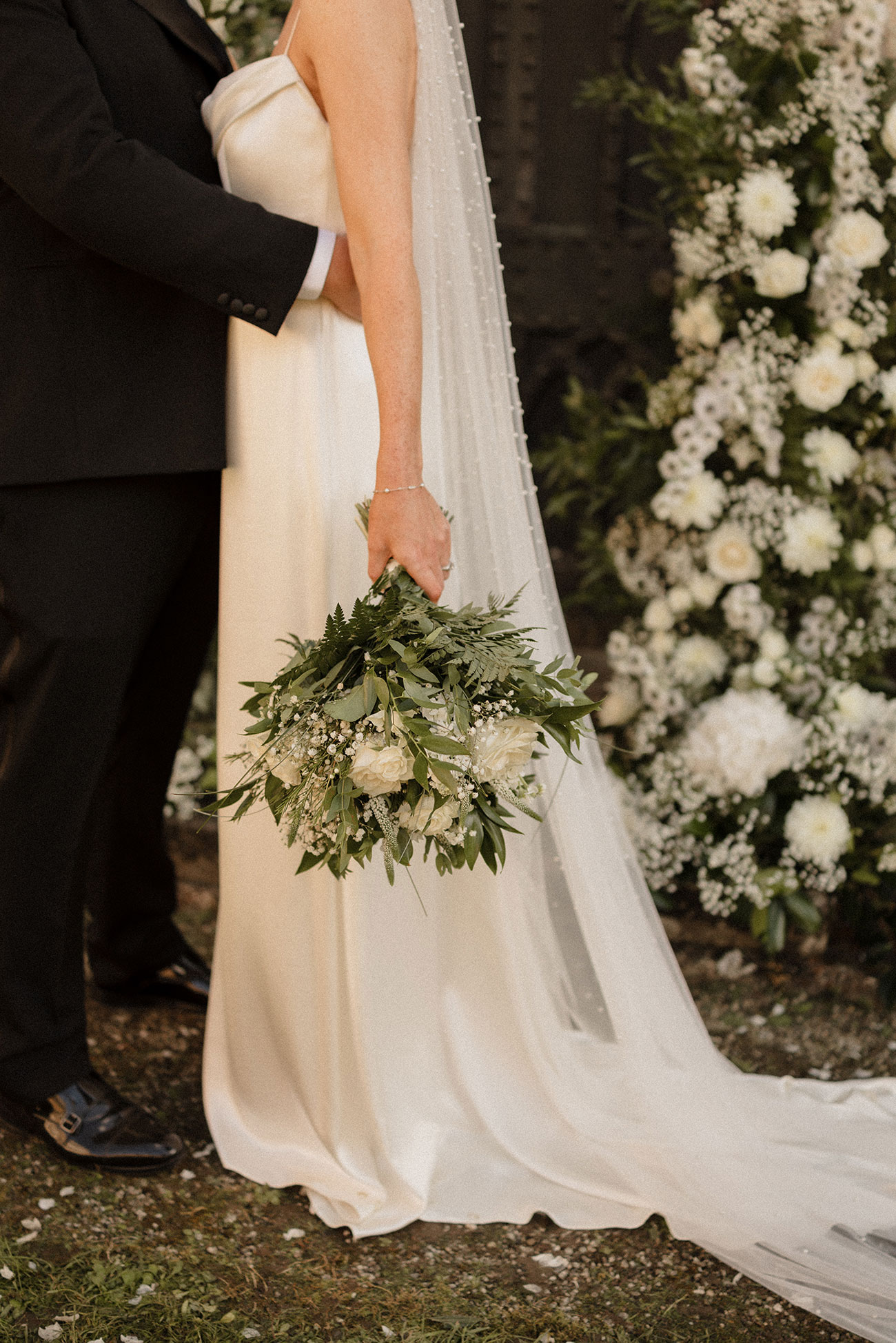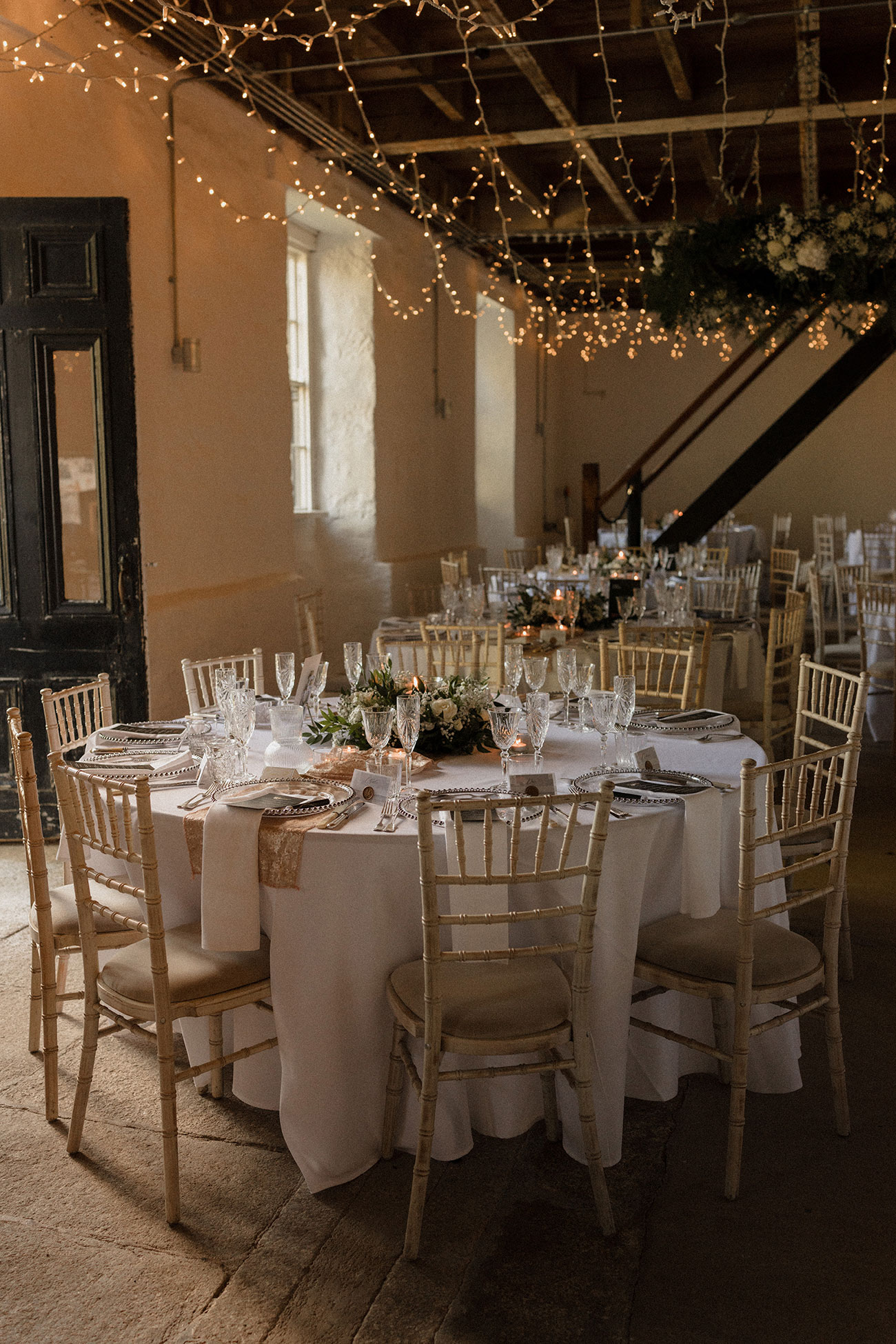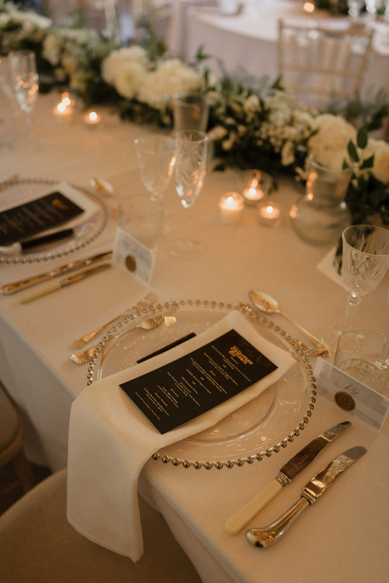 With the help of the team at Out of the Ordinary Weddings, who coordinated and styled the day, Sheree and Josh’s vision was brought to life with effortless elegance. A palette of neutrals and greens complemented the atmospheric beauty of Trelowarren, with the barn adorned with cream flowers nestled amidst lush foliage, cut glass crystal glassware and glass beaded charger plates. “The black tie theme worked perfectly, creating a glamorous and sophisticated feel,” says Sheree.