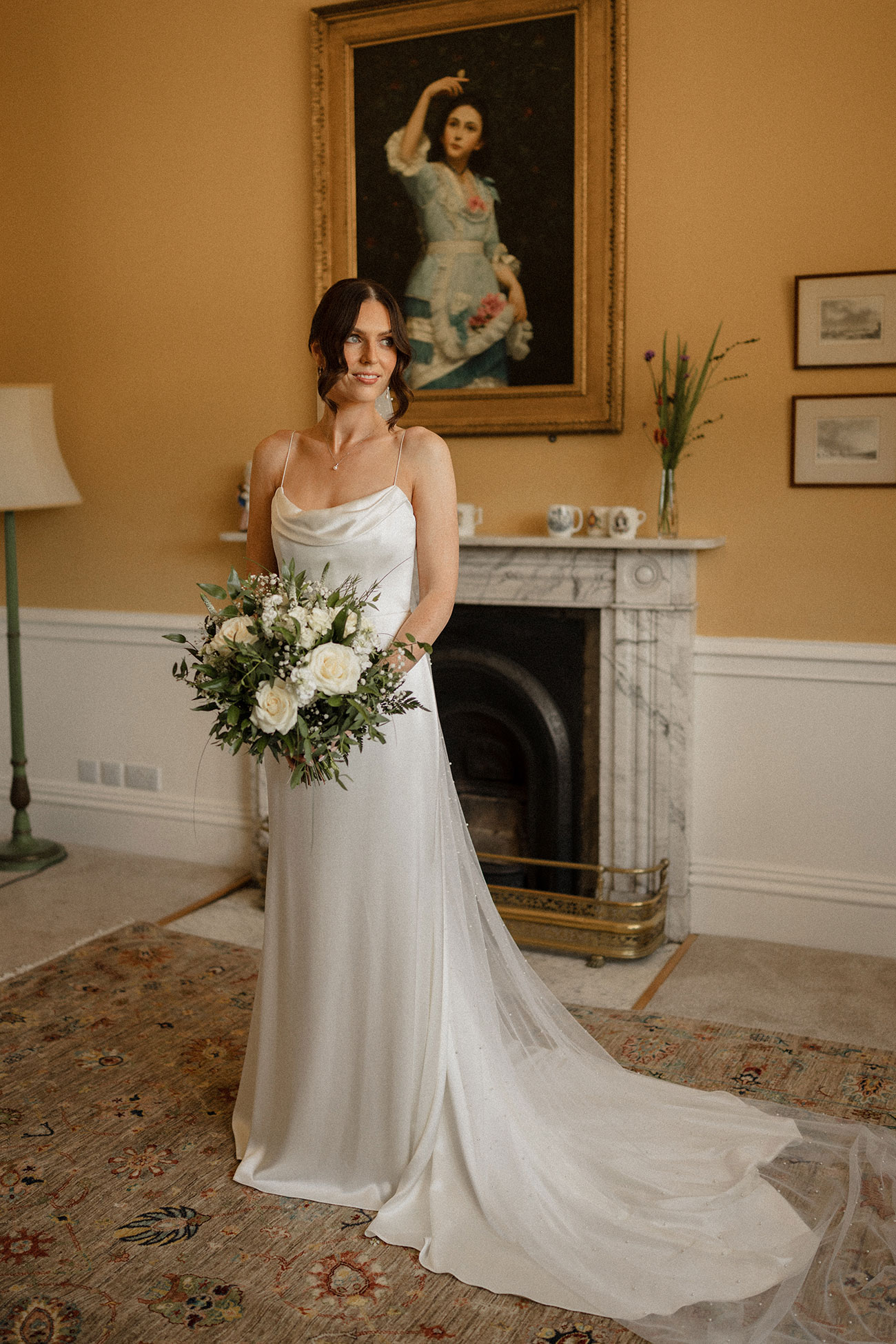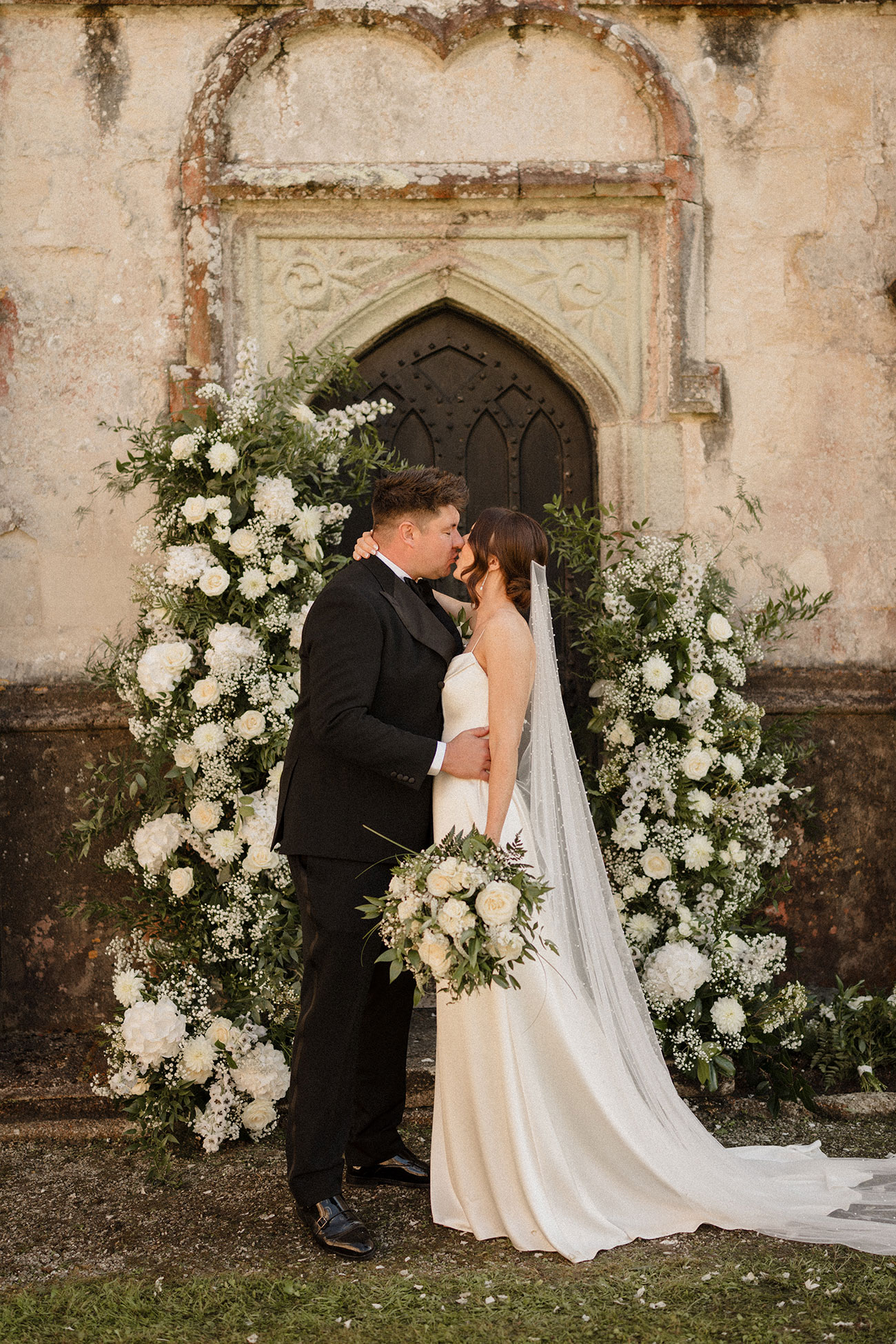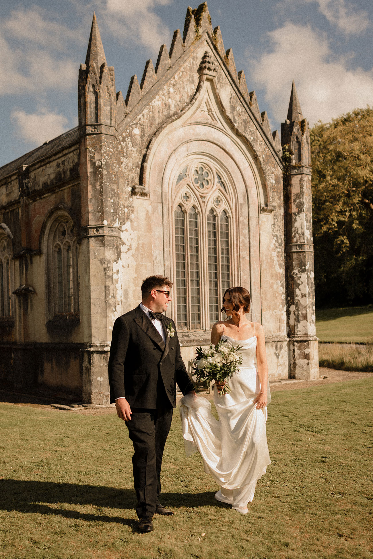 Sheree walked down the aisle of Trelowarren’s light-filled chapel in an exquisite Alexandra Grecco gown, flanked by her bridesmaids in deep green dresses. “The ceremony was our favourite part of the day,” she reflects. “Walking down the aisle to violins playing Annie’s Song by John Denver was very emotional and a really special moment. It was such an intimate ceremony, with personalised vows and traditional Cornish folk greetings conducted by Cornish Celebrants.”