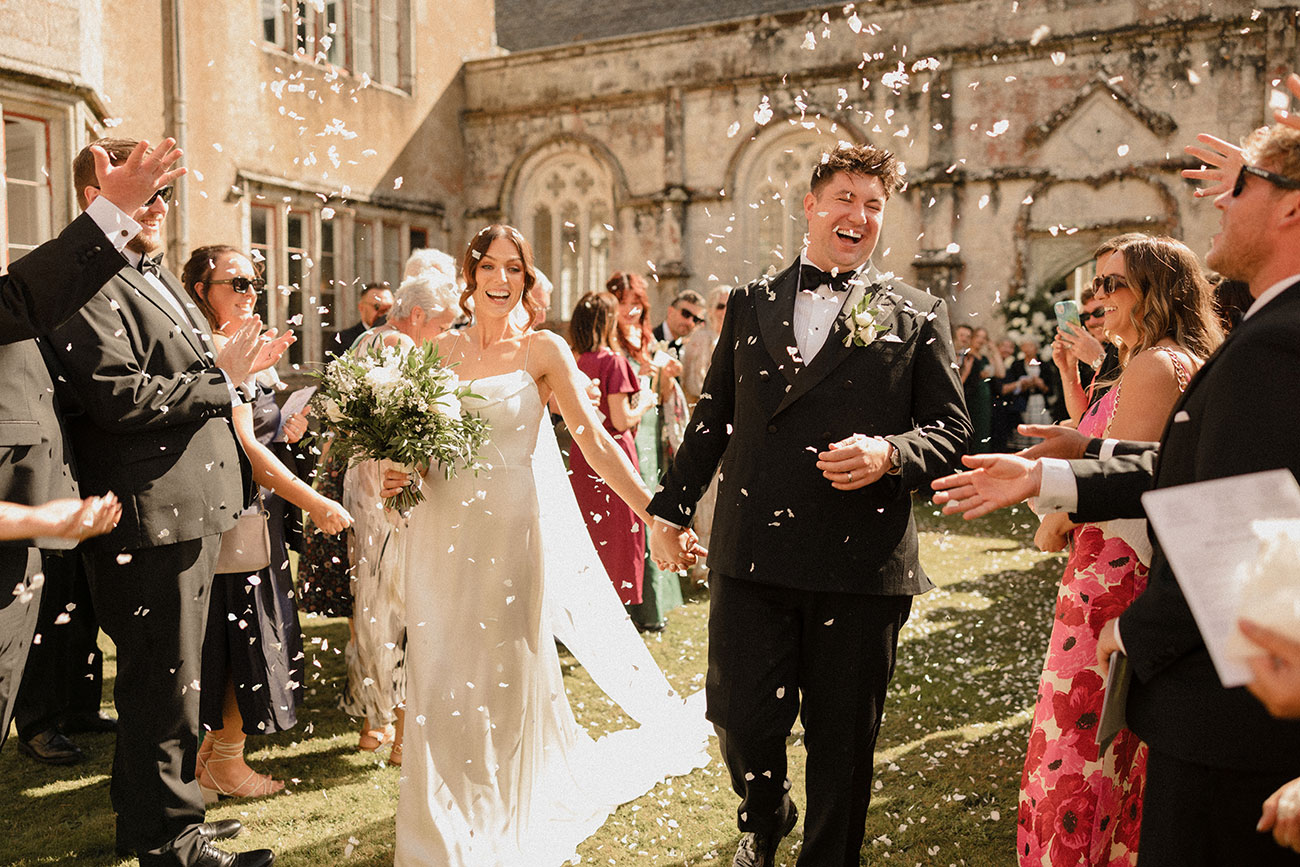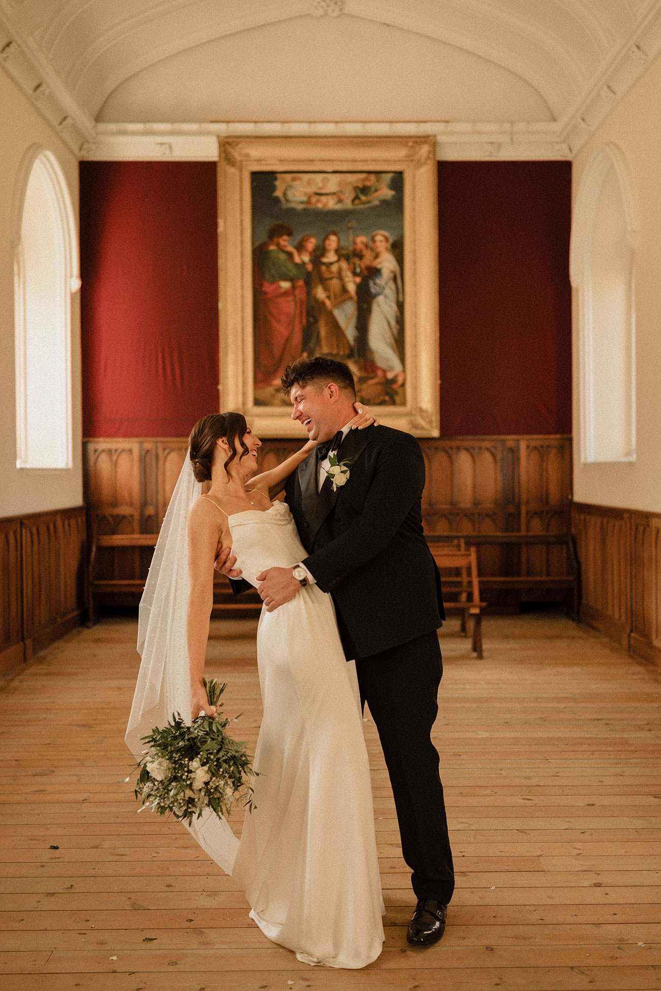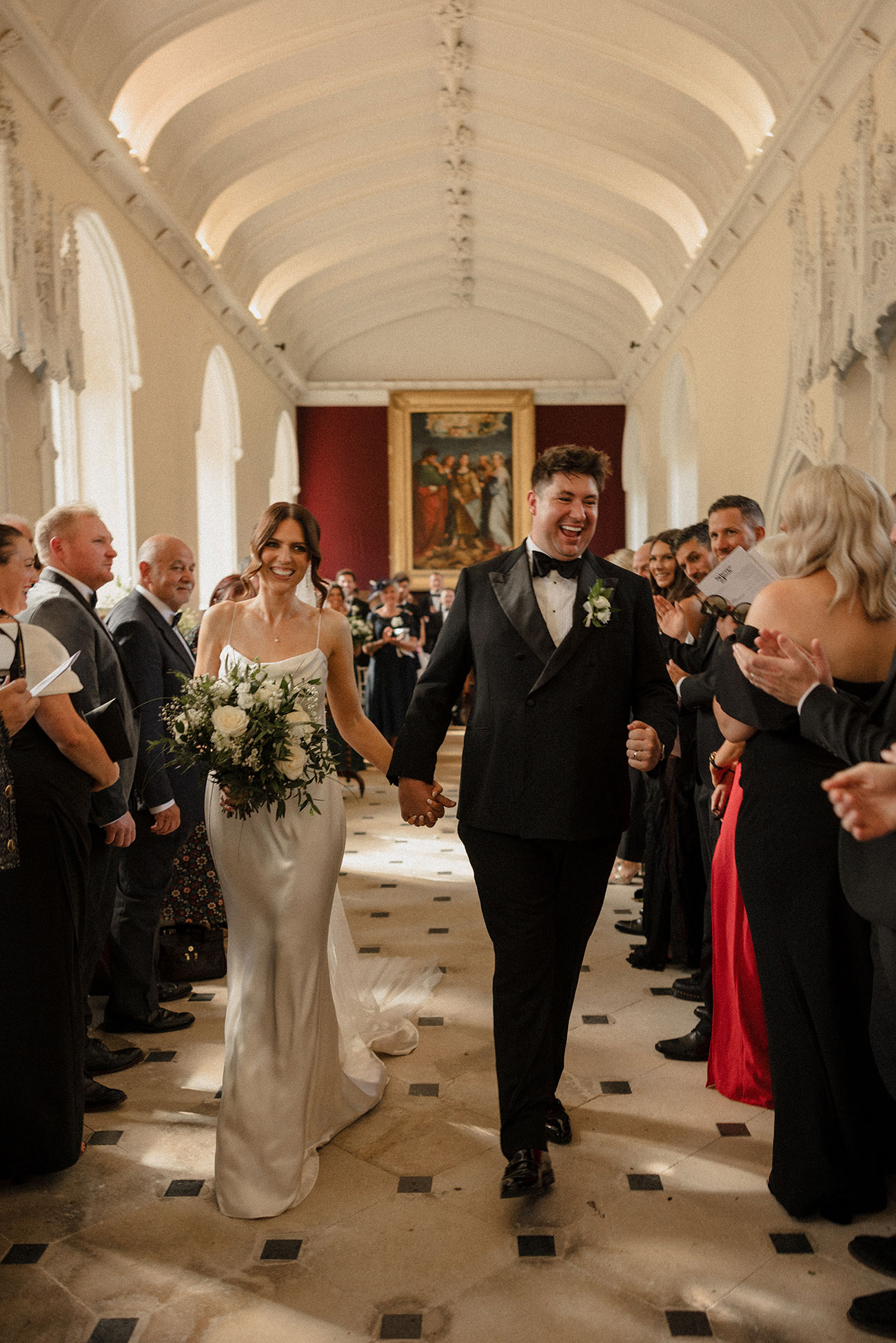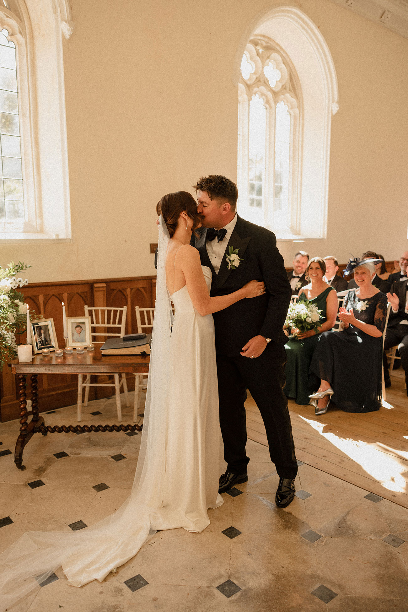 Sheree walked down the aisle of Trelowarren’s light-filled chapel in an exquisite Alexandra Grecco gown, flanked by her bridesmaids in deep green dresses. “The ceremony was our favourite part of the day,” she reflects. “Walking down the aisle to violins playing Annie’s Song by John Denver was very emotional and a really special moment. It was such an intimate ceremony, with personalised vows and traditional Cornish folk greetings conducted by Cornish Celebrants.”