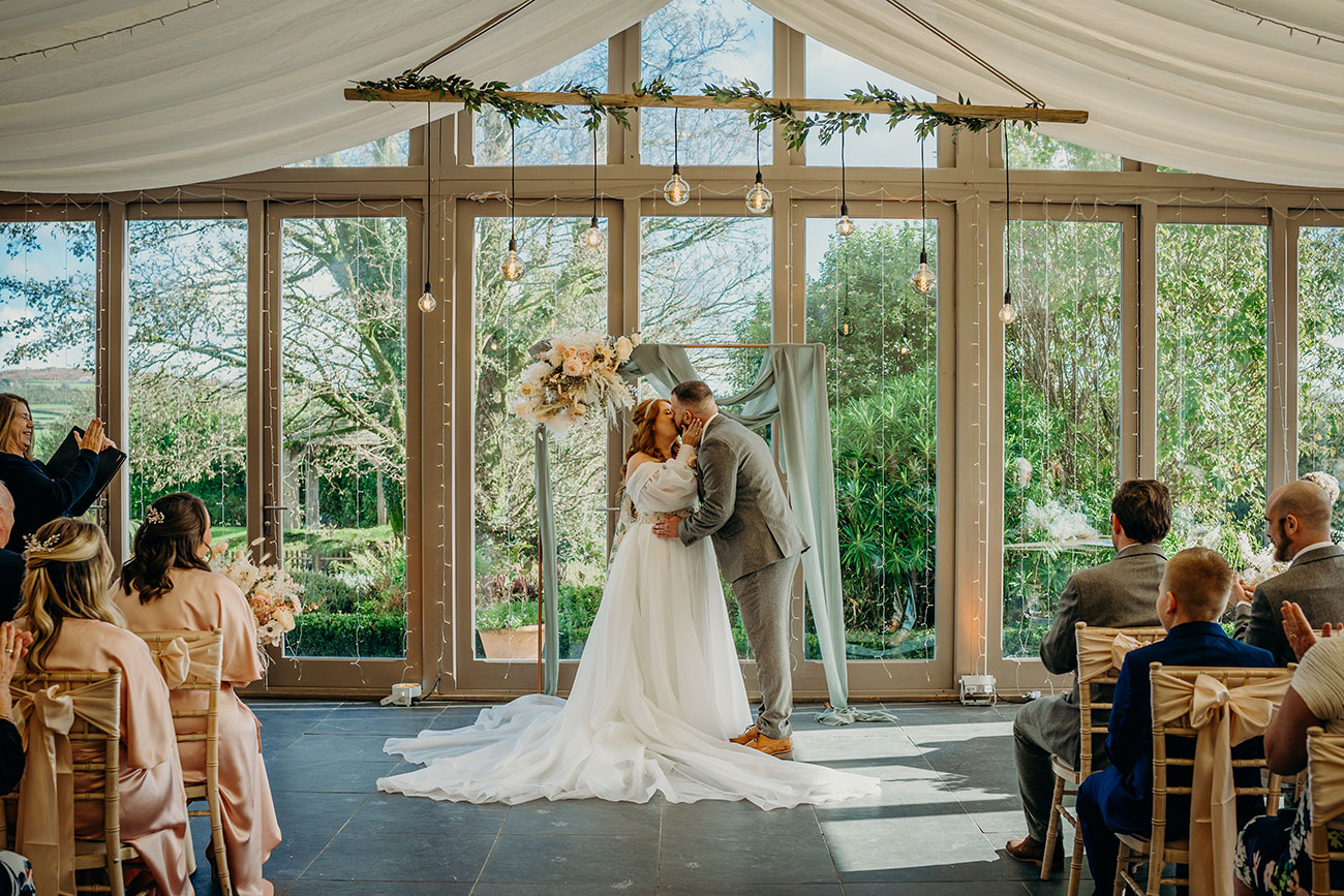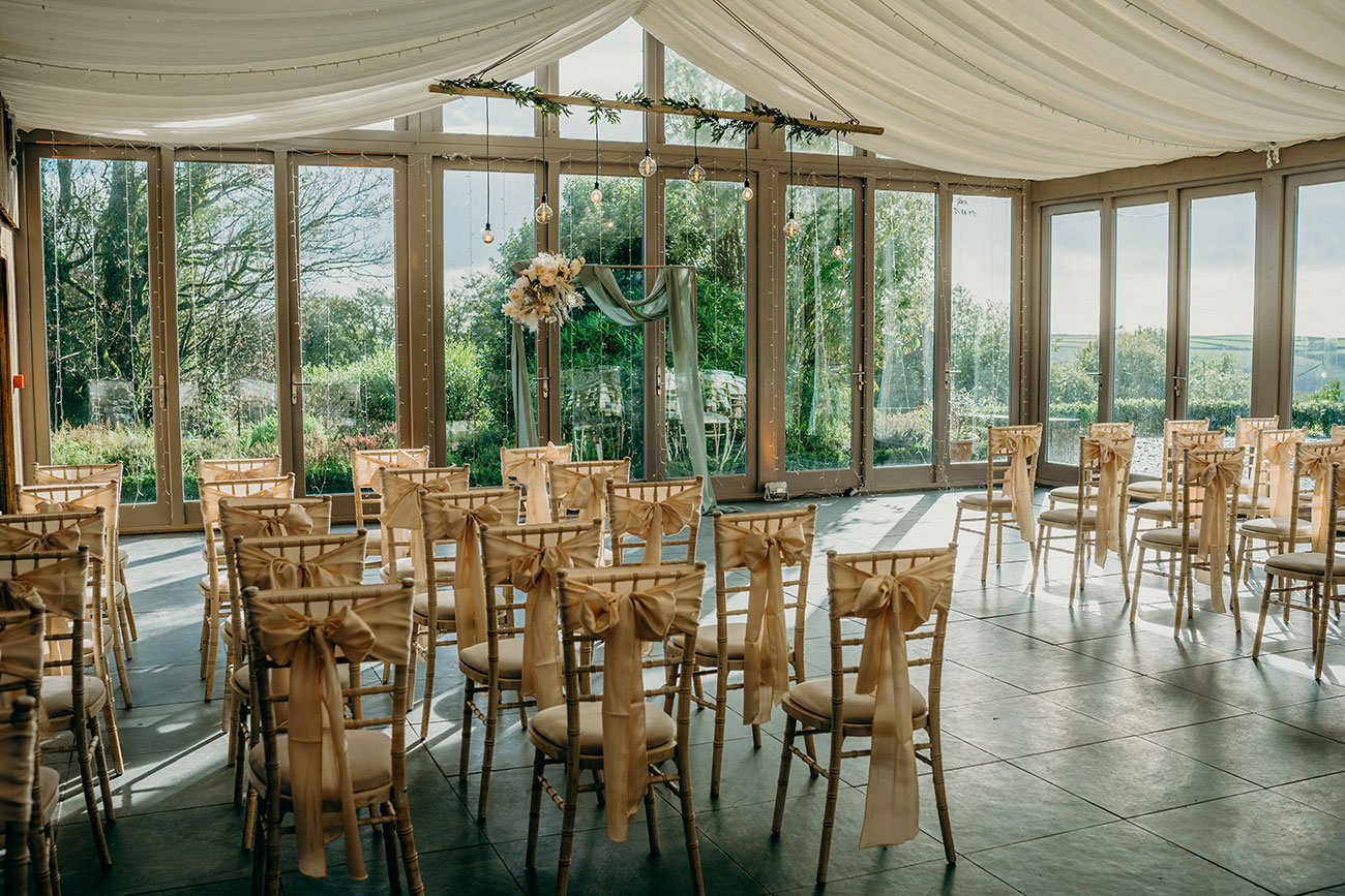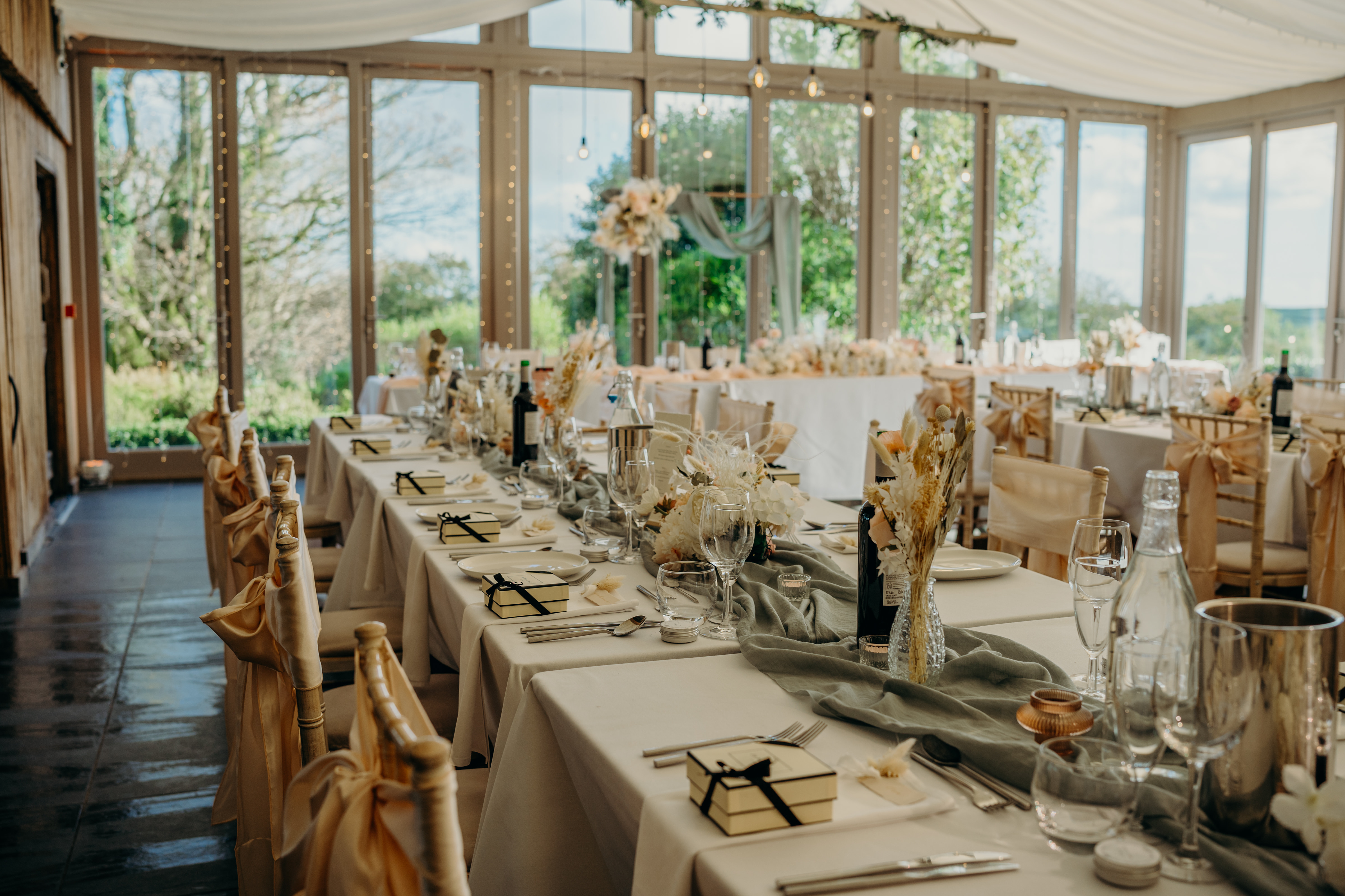 The light and airy Garden Venue, with its floor-to-ceiling windows overlooking the grounds, allowed the couple to enjoy the beauty of the natural surroundings without worrying about the weather as they exchanged vows. “I walked down the aisle to an instrumental version of Wildest Dreams by Duomo,” says Laura. “I had been listening to this song in the months leading up to the big day, picturing our wedding, and it really helped to calm my butterflies. The sun dappled the room and clouds gently rolled across the moors outside; it was very picturesque and the most perfect backdrop.”