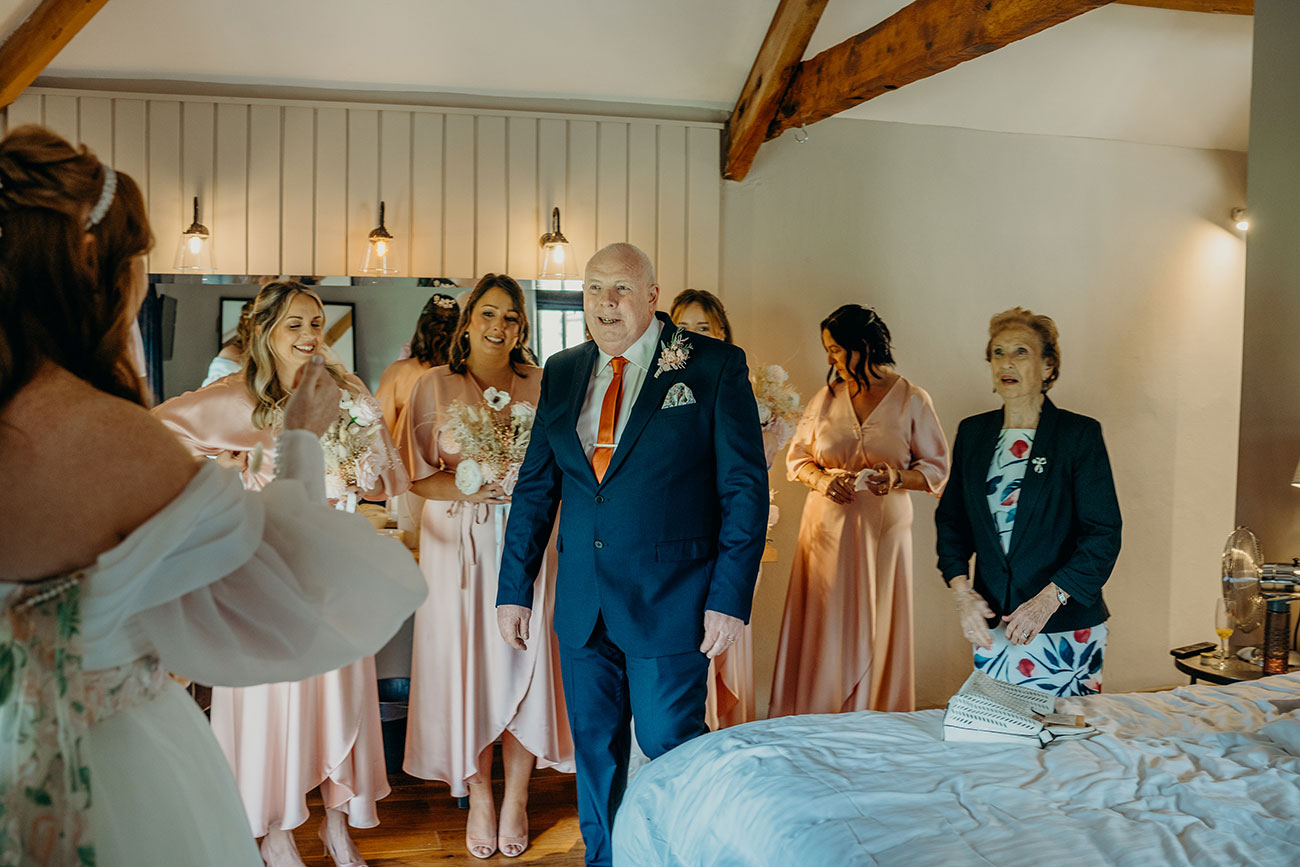 Donning her romantic gown with its gorgeous floral detailing, Laura’s favourite memory took place just before the ceremony. “My wonderful dad and nannie came to have a first look at me in my wedding dress,” she says. "This meant the absolute world to me and our family, and I am forever grateful for this memory and the beautiful photographs that we have of this moment.”