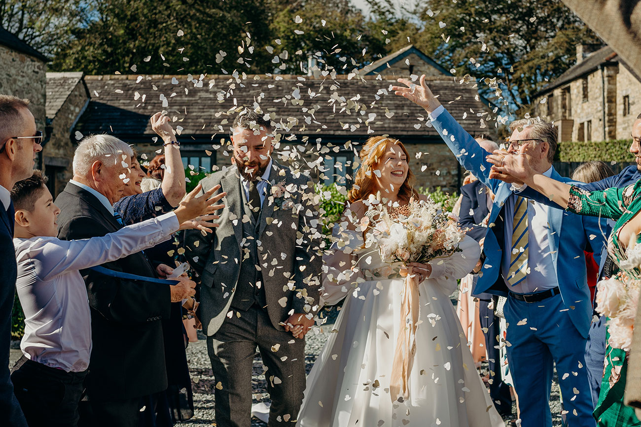 Everyone spilled outside into the crisp, autumnal sunshine for a confetti toss, canapés and drinks. “A few speeches later and we all tucked into our glorious wedding feast – Trevenna really know the way to your heart with their food and generous portions!” says Laura. A menu featuring duck and orange salad, Cornish cured deli meats, classic lamb roast, chicken with crispy Cornish pancetta, warm pear and almond tart and triple chocolate brownie went down a treat.