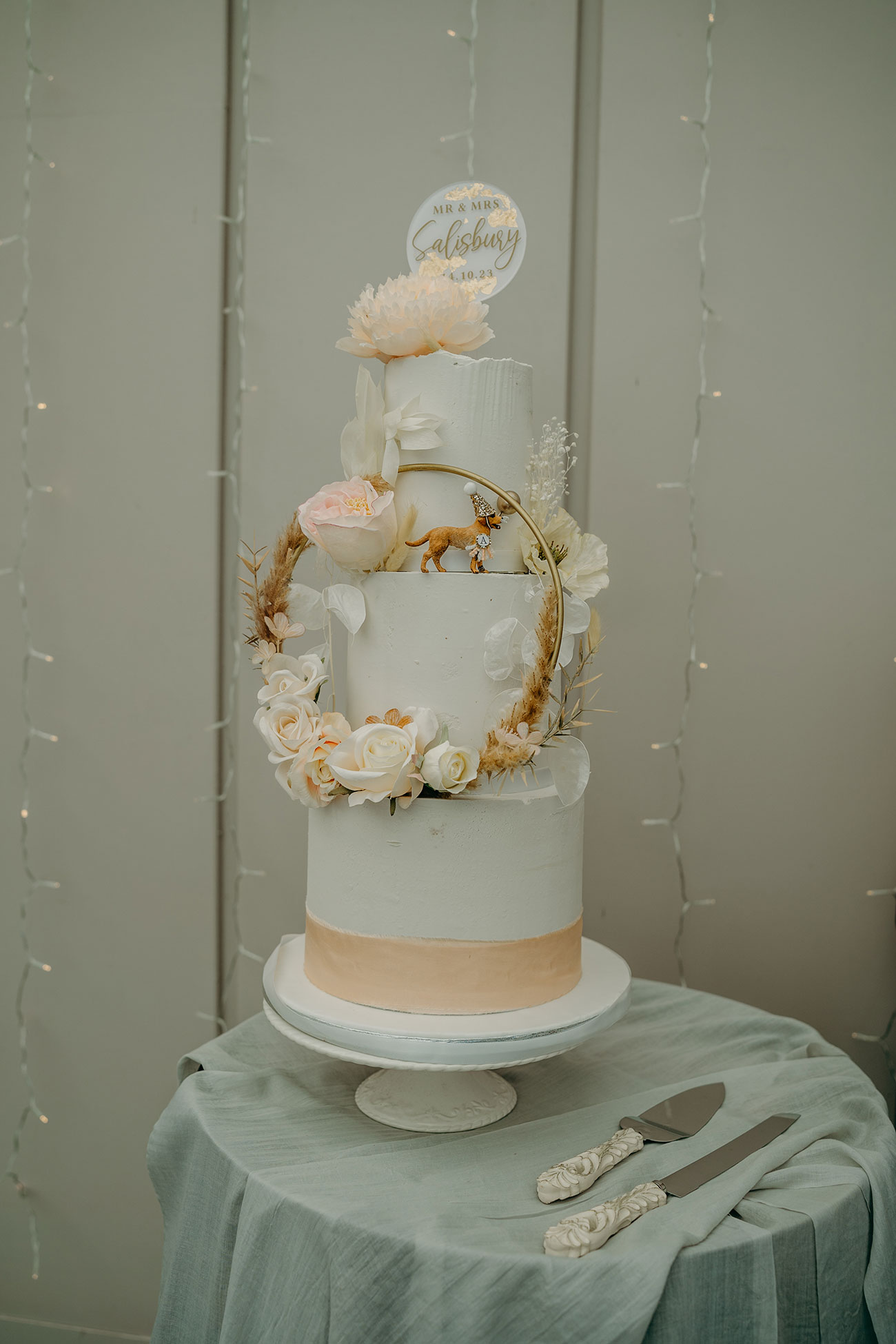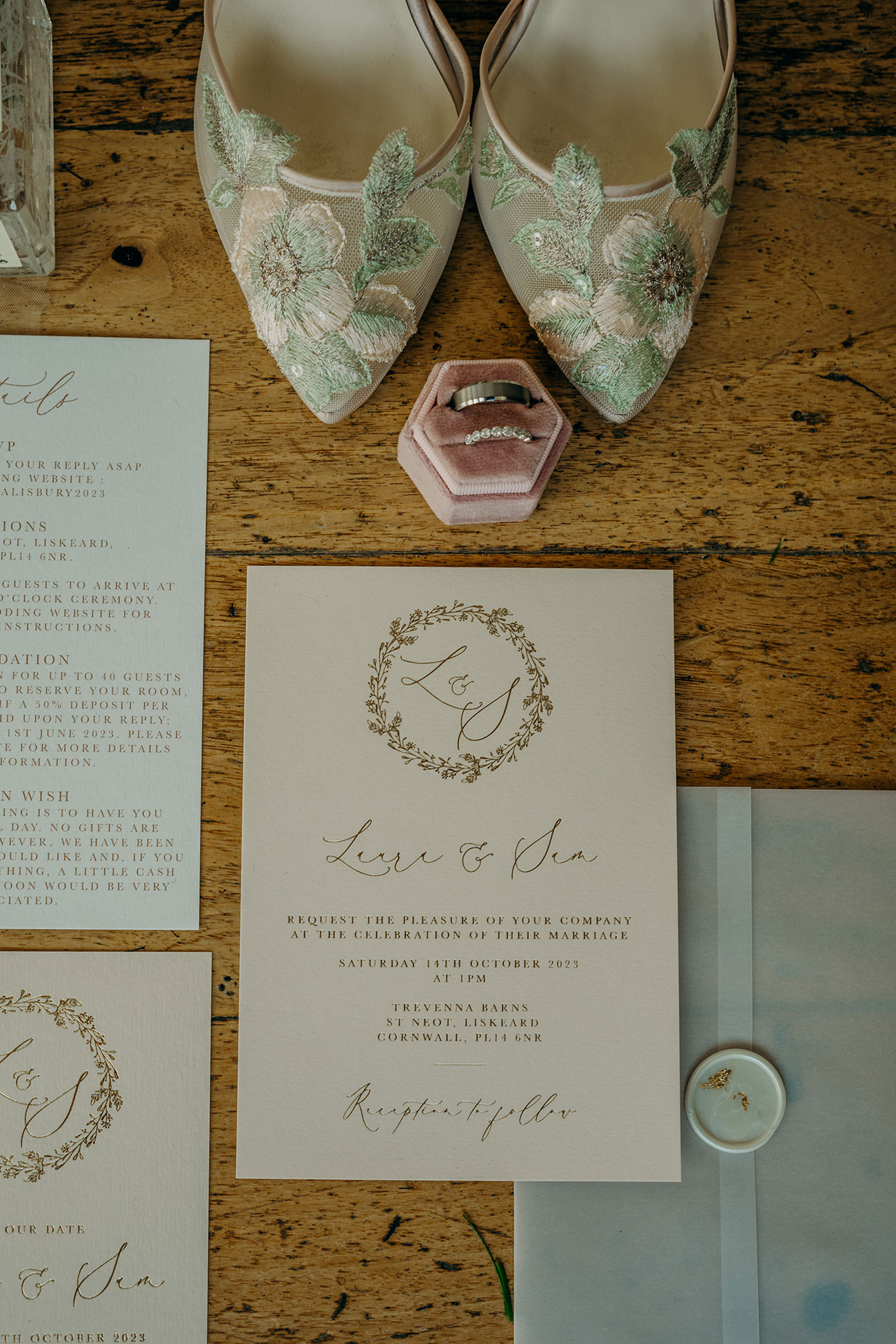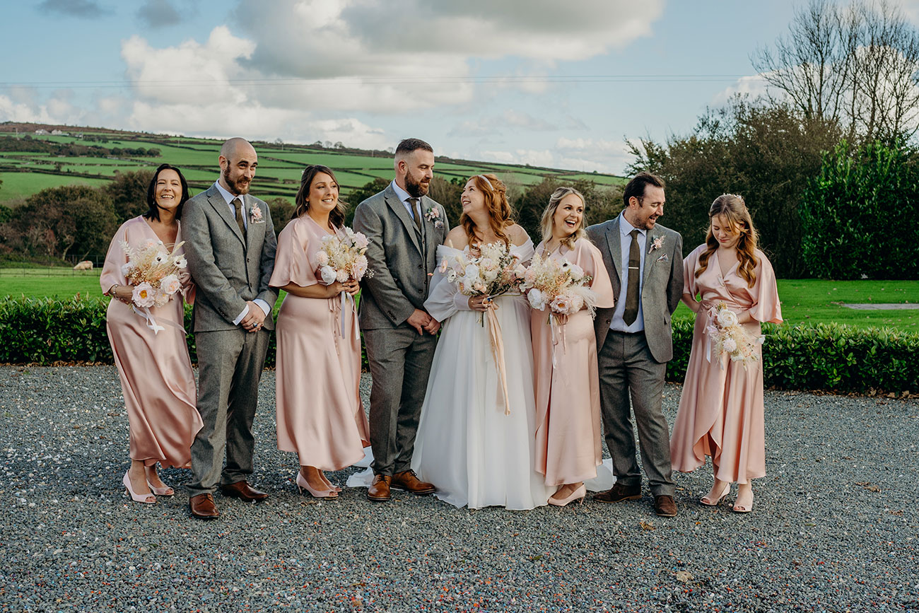It didn’t take long for the couple to succumb to the romance of Trevenna. “We loved the natural rustic charm, the beautiful barns with so much character, an abundance of views and soft twinkly lights,” says Laura, who decided on a colour scheme of soft blush tones and greens to tie in with the beautiful Cornish countryside. “As we were getting married in October, we wanted it to feel cosy and autumnal yet still light and bright, and I think the pink touches helped to do this.”