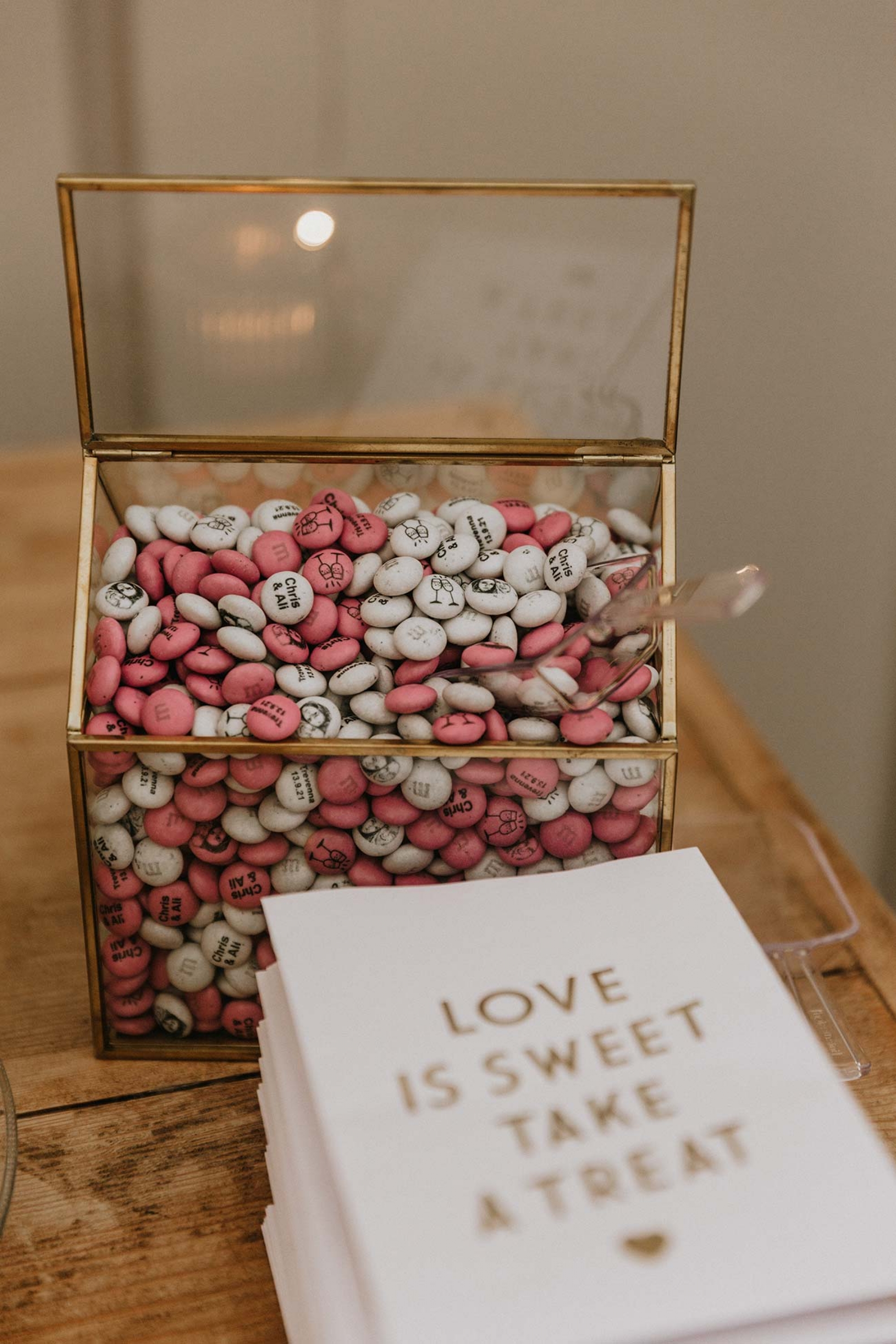 From poignant touches such as this to a banner featuring a poem by her mum and the New York skyline embroidery on her veil, Ali and Chris’s wedding was packed with personal details. “Sometimes the smallest details have the biggest impact,” she says by word of advice to couples hoping to plan a similarly individual celebration. “Everyone loved our personalised M&Ms with our faces on!”