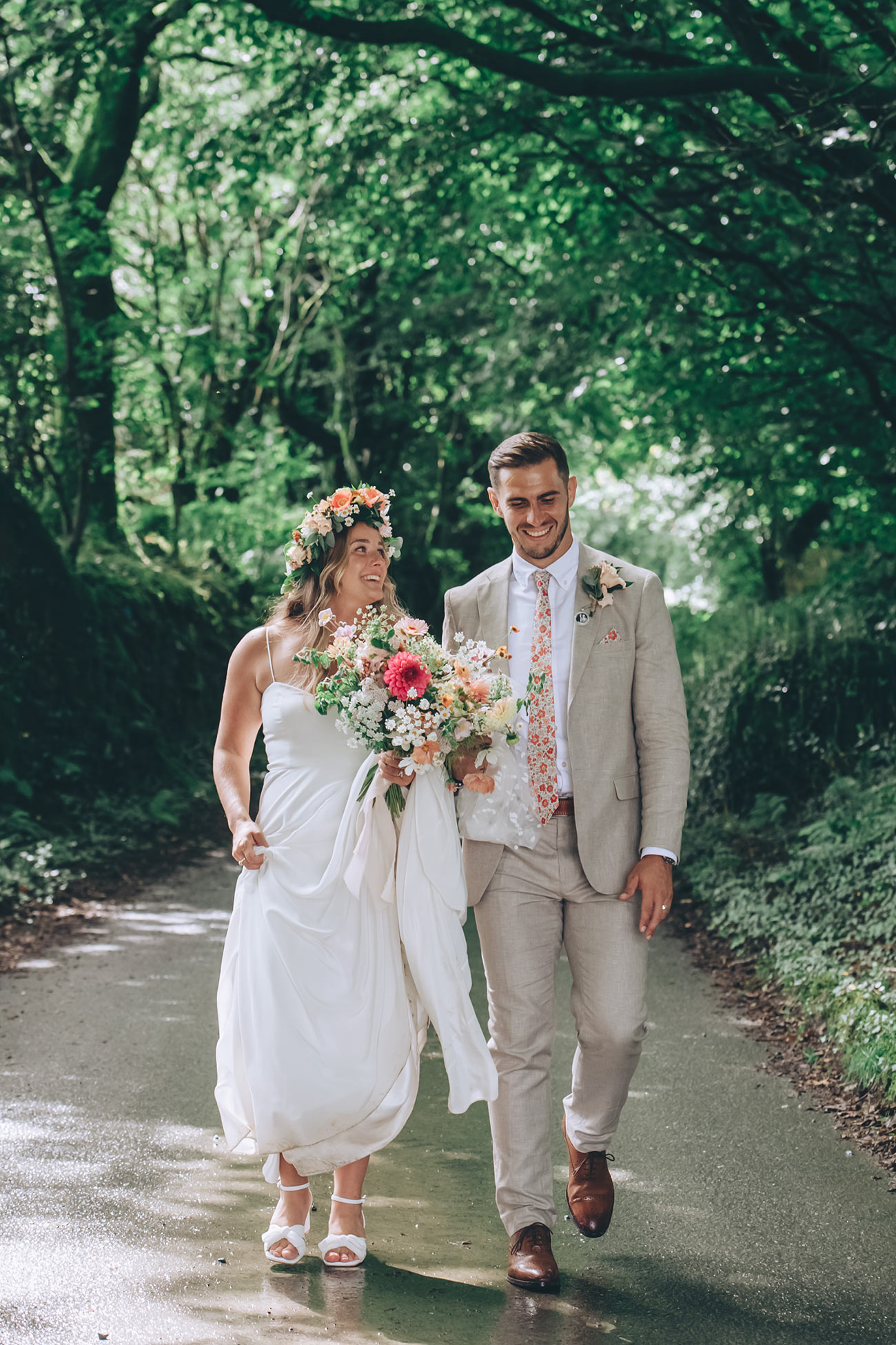 Now living in Thailand, the couple planned their dream celebration at Trevenna from Nepal. “We loved the fact we could have 40 of our friends and family stay with us,” says Matt. “It just felt like a wonderful little holiday!” Inspired by the vibrancy of Nepal, their wedding day was full of personality, with a bold palette of pinks and oranges, and details such as ties, pocket squares and bunting fabric handmade in Kathmandu.