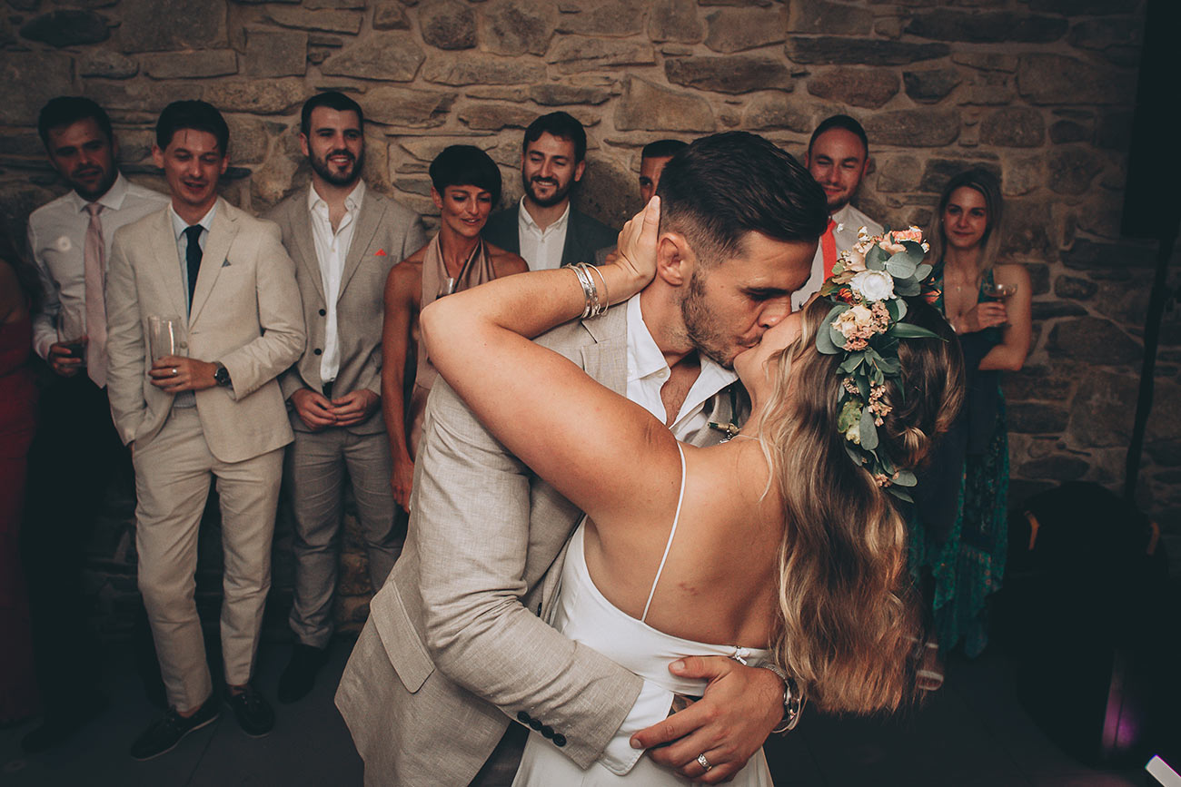 After the ceremony, guests enjoyed drinks and canapés as Over the Threshold played an acoustic set. The sun appeared just in time for photos, before guests sat down to a feast featuring Cornish lamb, sea bass, courgette and mushroom Wellington, sticky toffee pudding and triple chocolate brownie. Then came the speeches. “Each one was heartfelt, funny and personal,” says Alice.