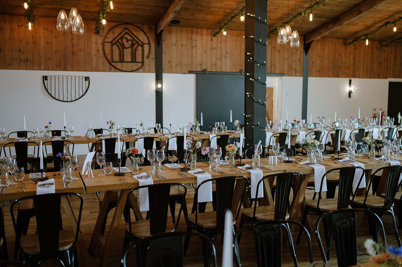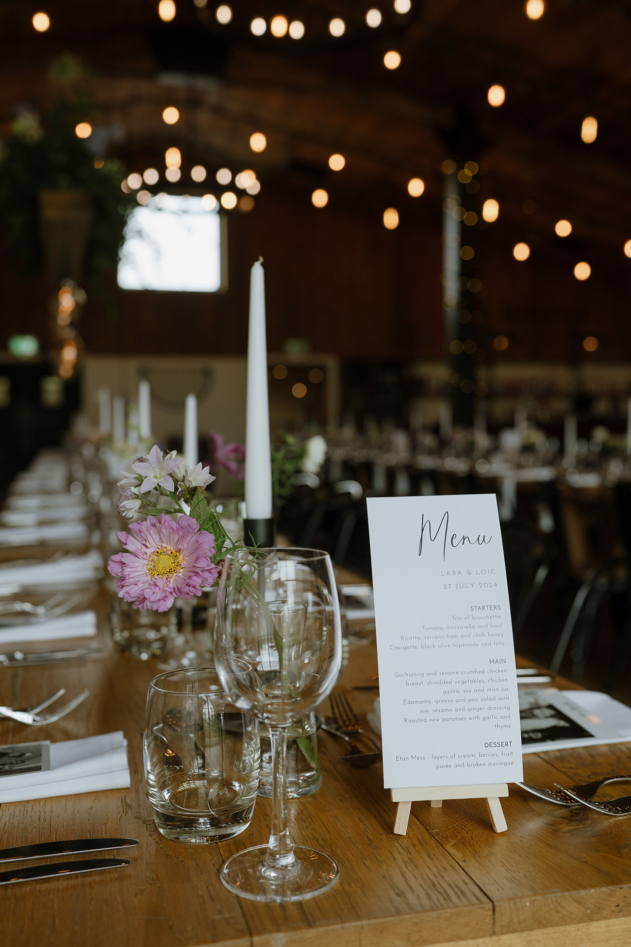 After a sumptuous three-course feast and tear-jerking speeches, the day gave way to an evening of “dancing and laughter” thanks to a perfectly pitched DJ playlist. “One memory that will never leave me is dancing with Lara on my shoulders, and Luke, my brother and best man, on top of a friend’s shoulders raving along with us!” recalls Loic. The night unfolded in a blur of joy, with the newlyweds soaking up time with their nearest and dearest.