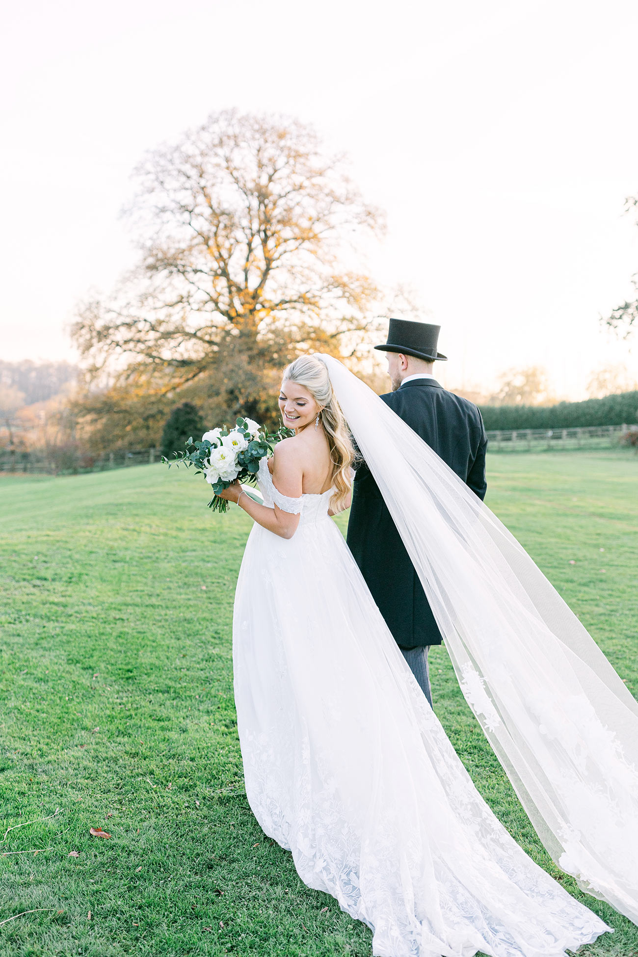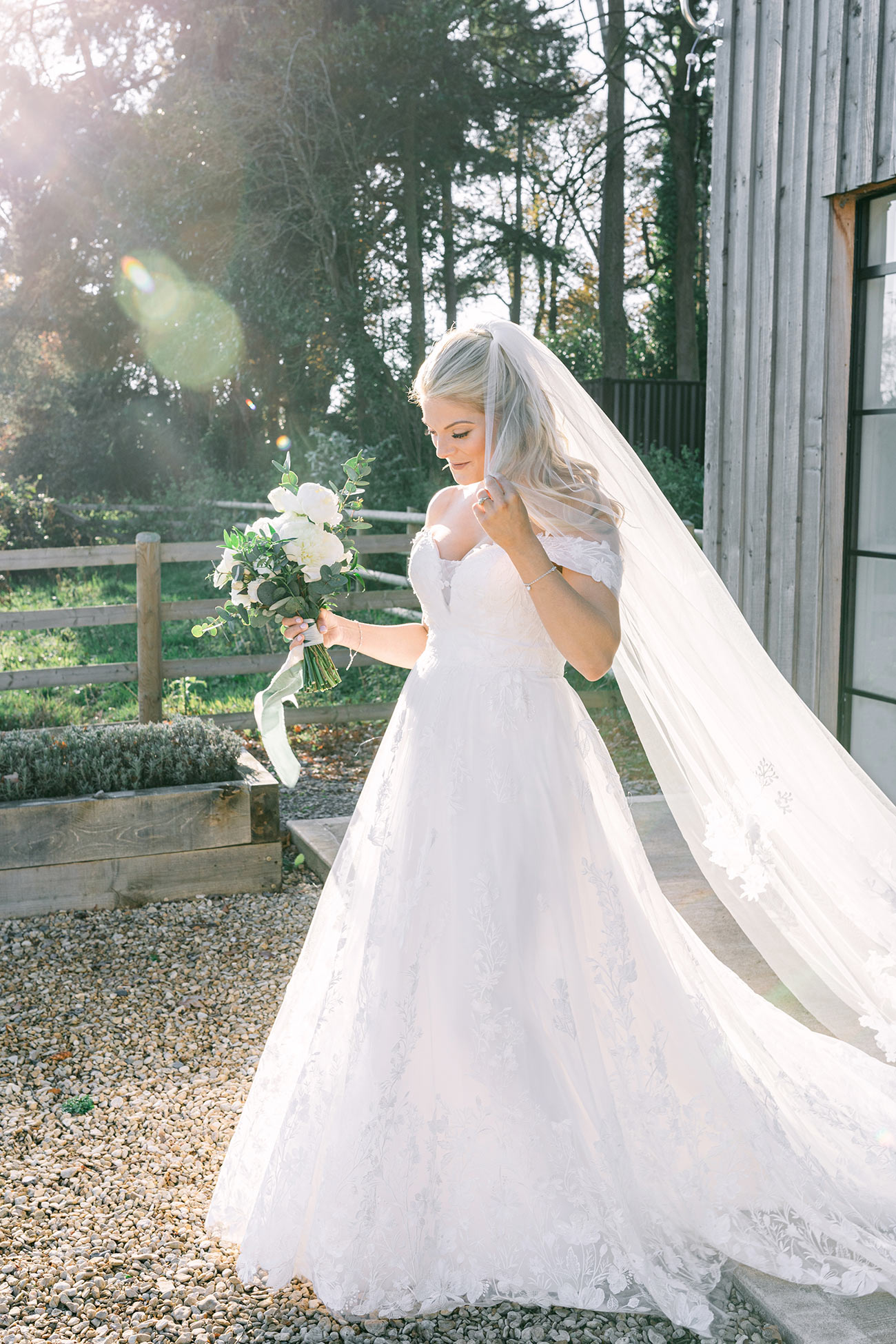 Getting ready on the morning of the wedding with her eight bridesmaids, who she’s known since the age of 11, made the most wonderful start to the day for Lottie. “The Paddock at Upton Barn was amazing – a total must-book if you’re getting married there,” she says. “Plenty of prosecco, a Spotify playlist and getting to witness the most amazing sunrise was one of those ‘pinch me’ moments. Being with my childhood best friends for such a special day will make me forever smile.”