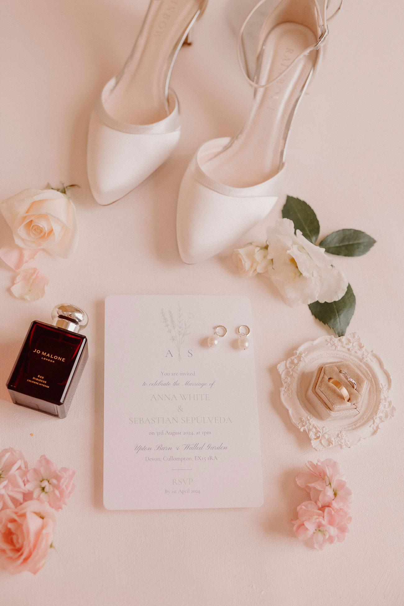Choosing the rustic chic climes of Upton Barn & Walled Garden as the scenic backdrop to their nuptials, the couple chose a soft colour palette, with pastel tones including pale pinks and sage greens.