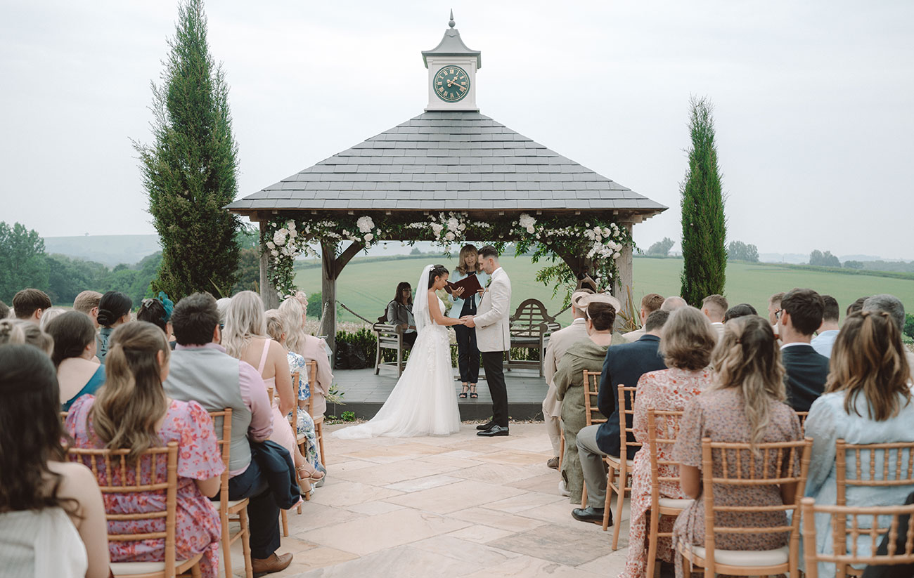 After the ceremony overlooking miles of rolling hills, guests enjoyed canapés and Pimm’s while The Swing Kings and magician Dan Brazier provided the entertainment.