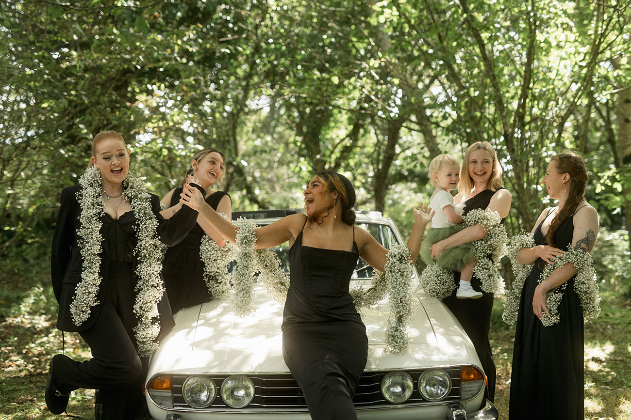 Her sister-in-law was also on hand to help with every little detail – including stitching the names of each guest onto the handmade linen napkins to double up as a beautiful wedding favour – while her auntie Becca was the mastermind behind the flowers. “We kept it simple for the flowers as I only chose gypsophila; however, I showed my aunt a picture of a boa that had been made of gypsophila and after many hours of work, five stunning boas were made!”