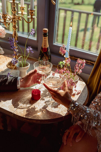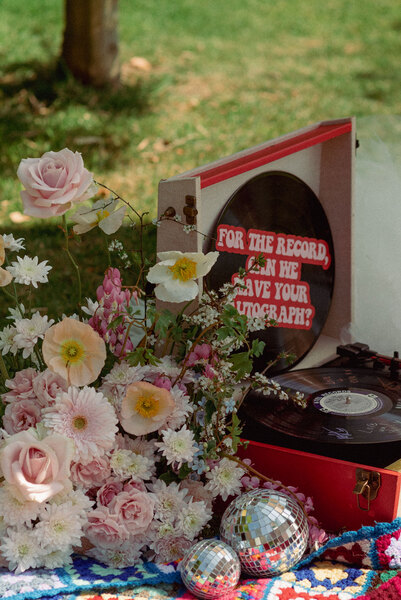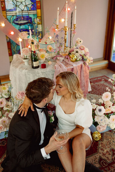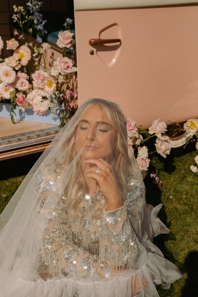 “This shoot is bold, playful and unapologetically fun,” concludes stylist Jess Baber of Tide the Knot Wedding Planning & Styling. “With a heavy dose of Vegas retro charm, we brought in disco balls, punchy florals and glitzy details. From the confetti explosion to the fashion-forward style, this shoot channels that just married in Vegas energy.”