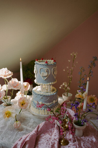 Step into a world where retro nostalgia meets modern flair. From chocolate swan cake toppers to statement-making florals and ever-changing dresses, this shoot is bursting with creativity and charm.