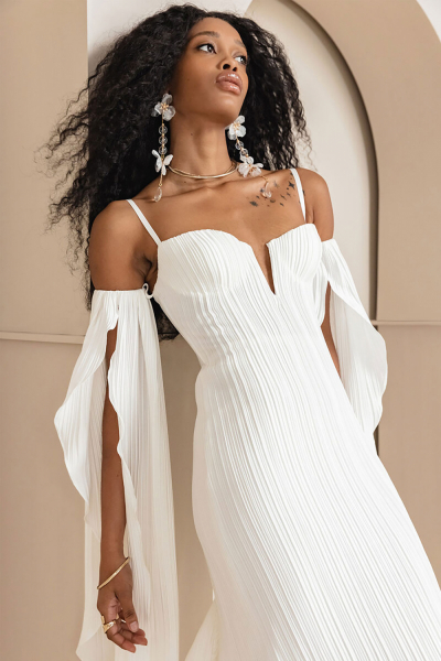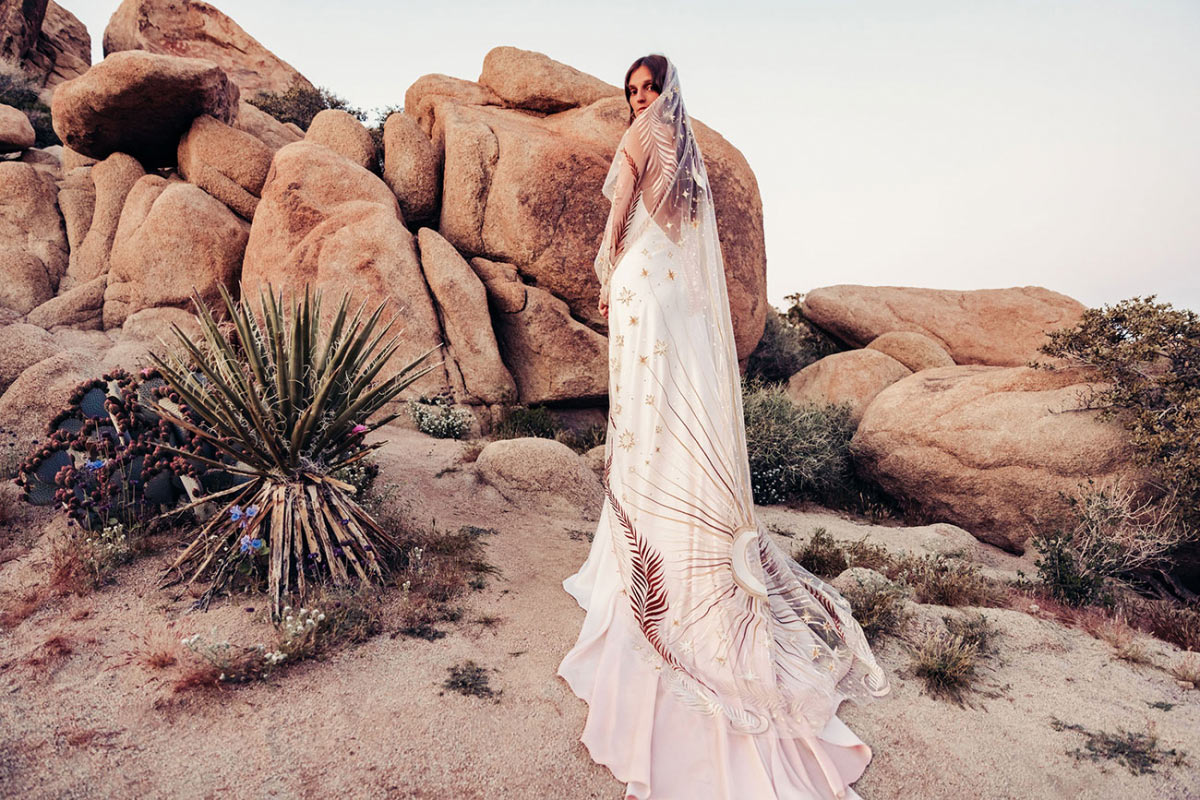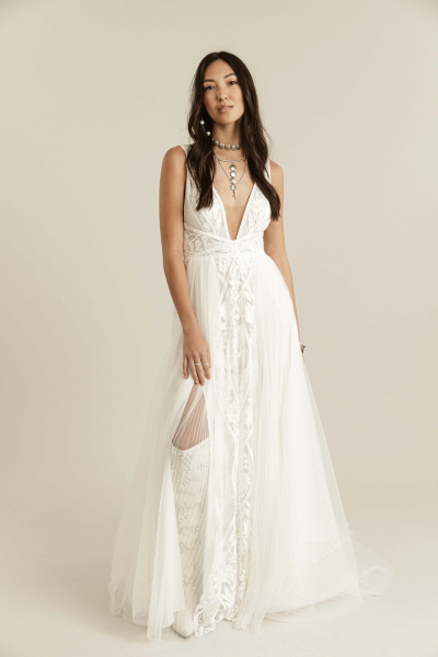 Rue De Seine's dresses are romantic, ethereal and showstoppingly beautiful, blending unique embroideries with flowing silhouettes. Head to St Ives Bridal Boutique to peruse a collection filled with boho cuts, dreamy floral embroidery and irresistible shimmery detailing.